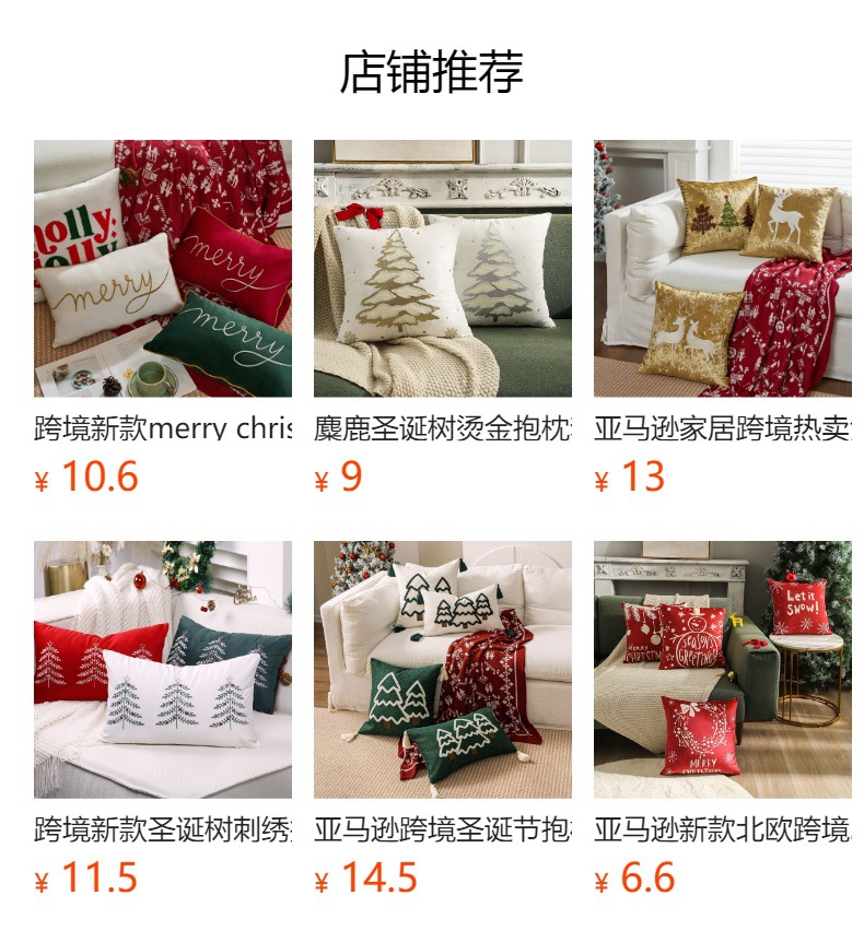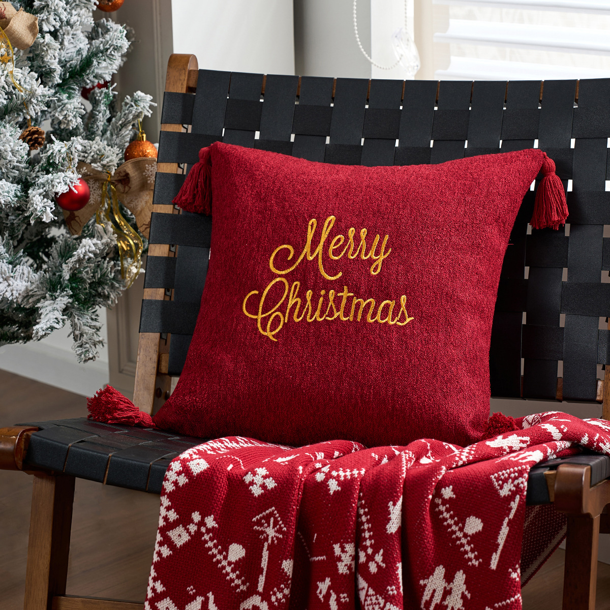 跨境新款圣诞节绣花抱枕靠垫套christmas雪花鹿45x45cm床上家用枕