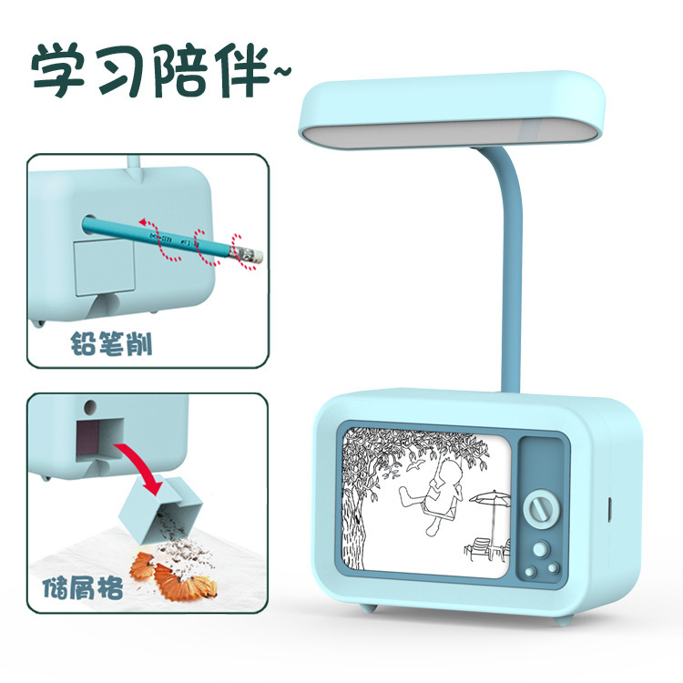 YW2199新款卡通电视机LED台灯USB充电三档桌面铅笔削夜灯儿童礼品