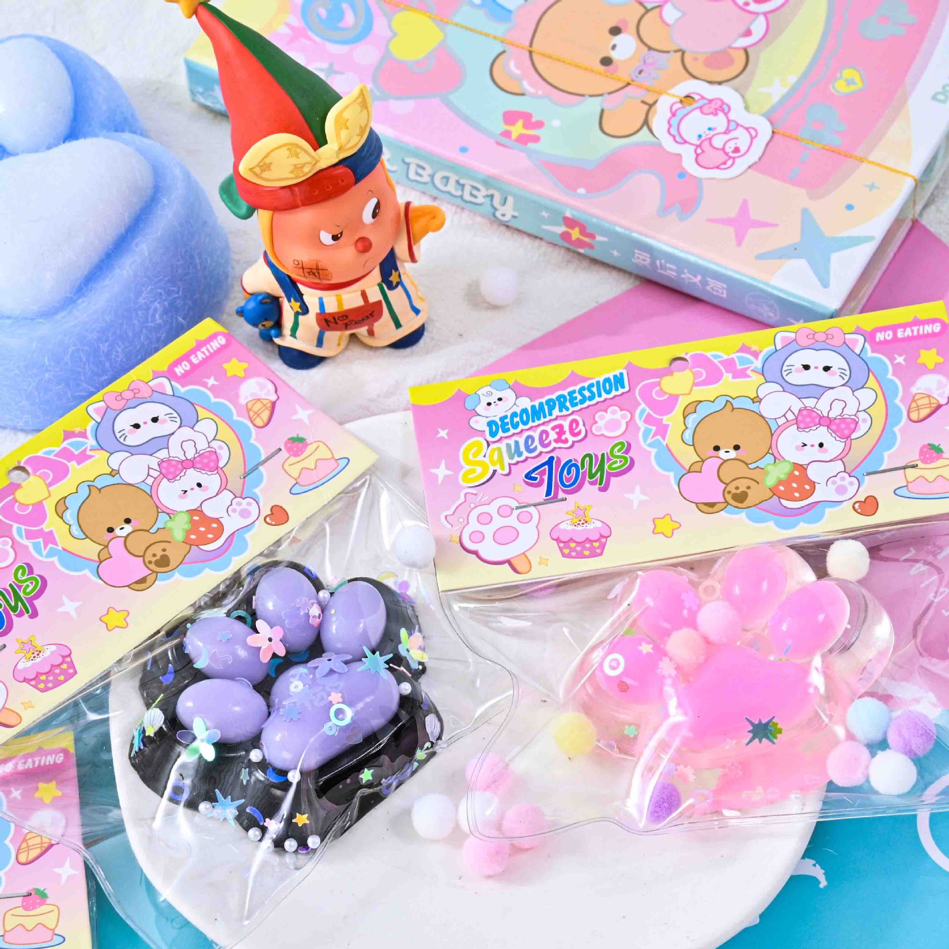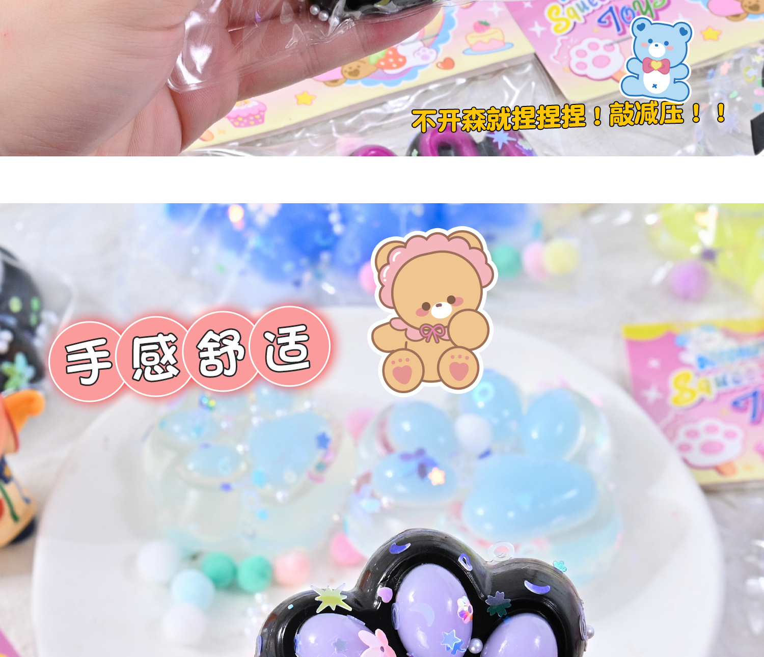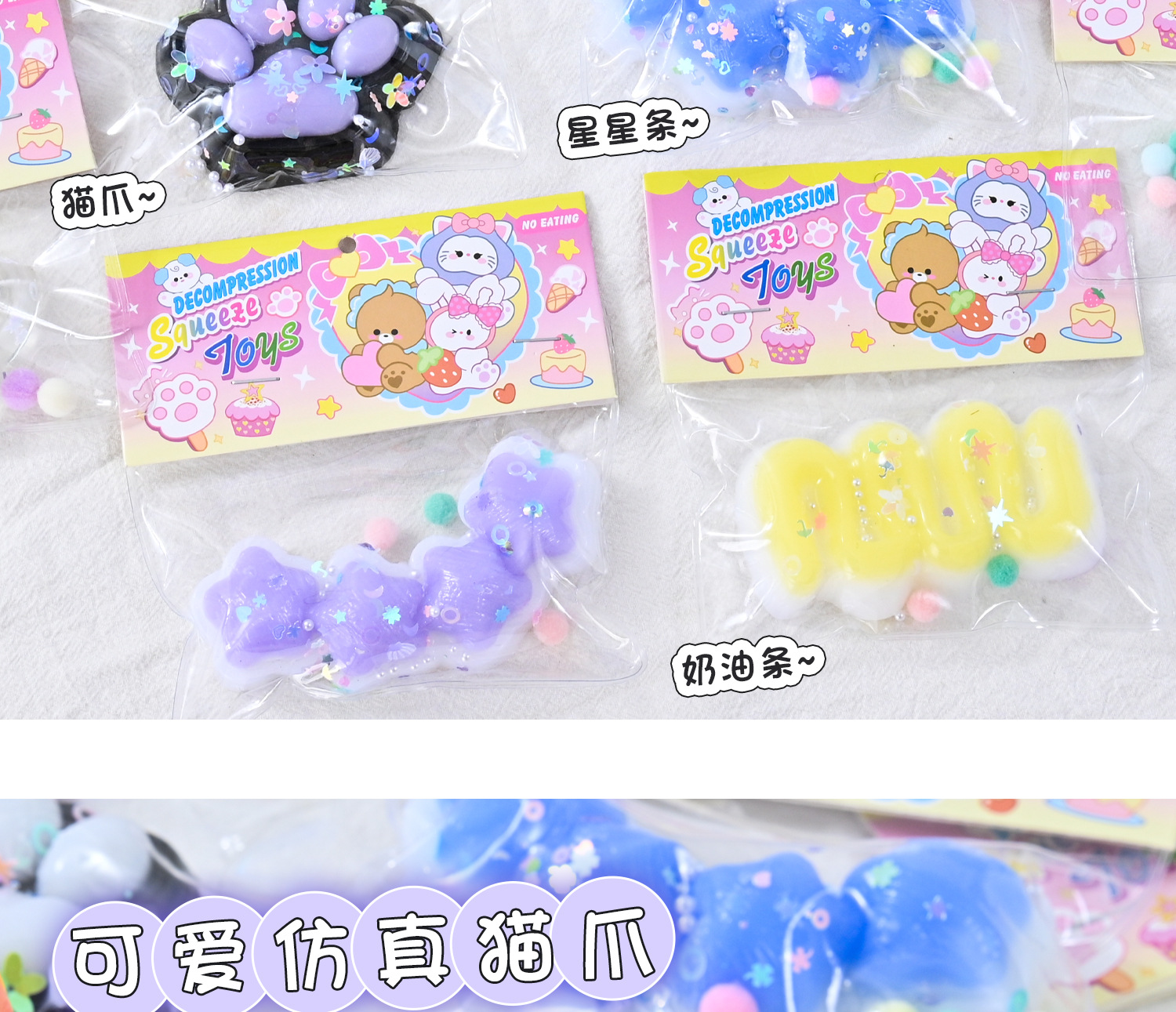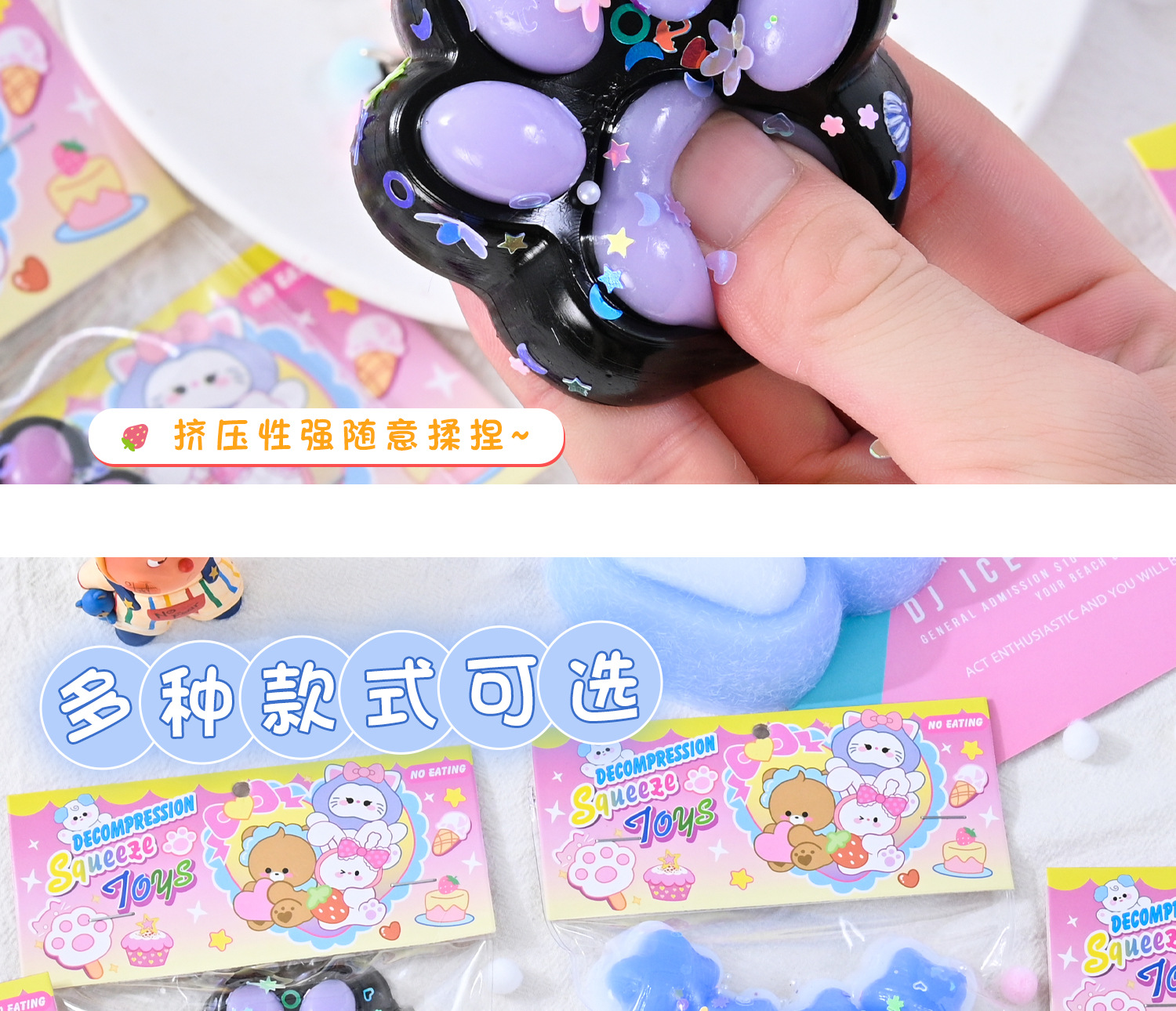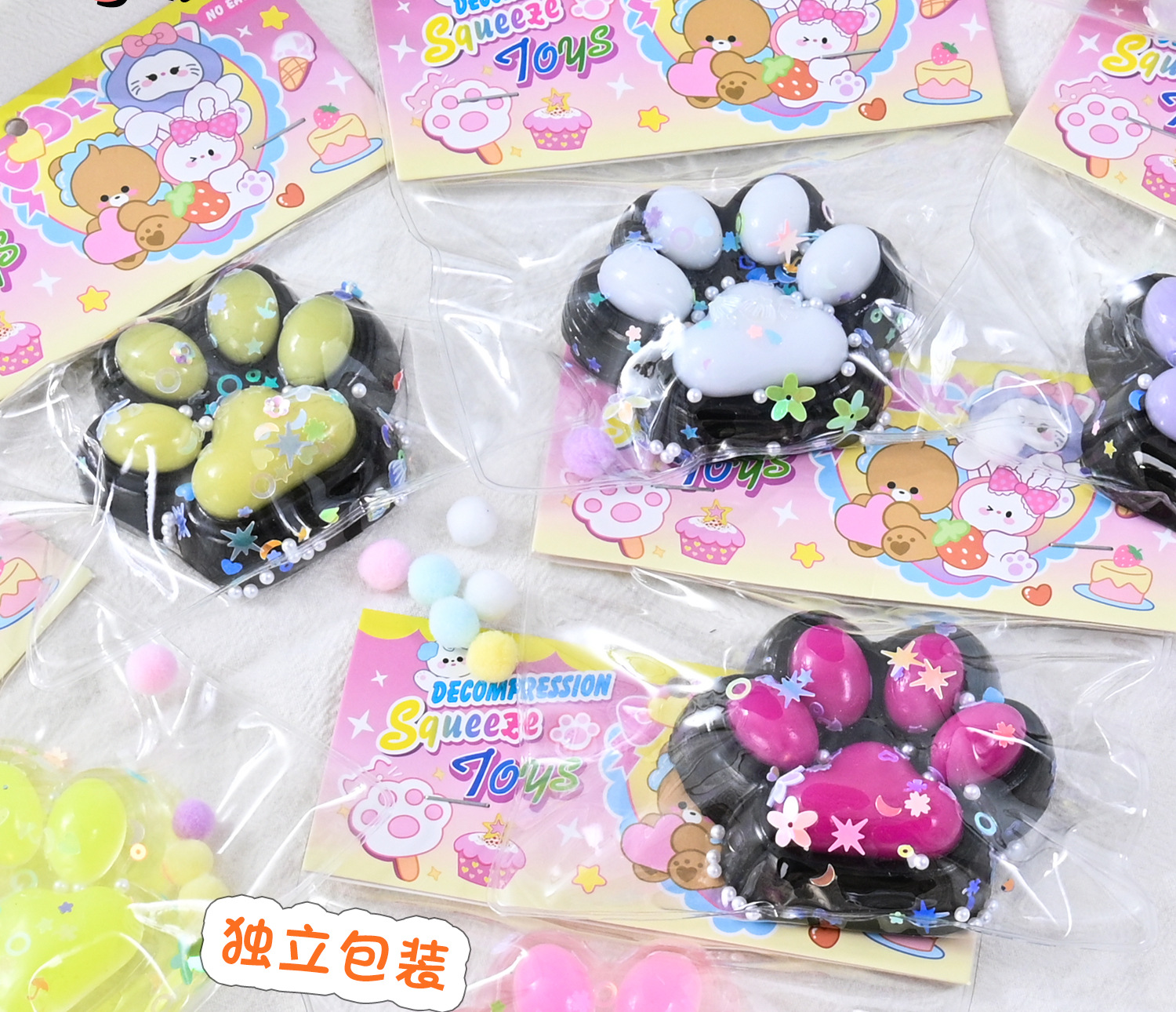 可爱减压食玩捏捏乐解压玩具水晶透明小红书同款TPR挤压猫爪玩具