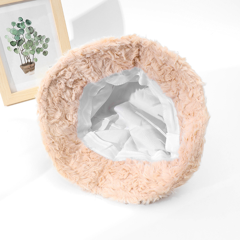 冬季新款兔毛小标渔夫帽秋冬韩版百搭保暖水桶帽毛绒绒显脸小帽子
