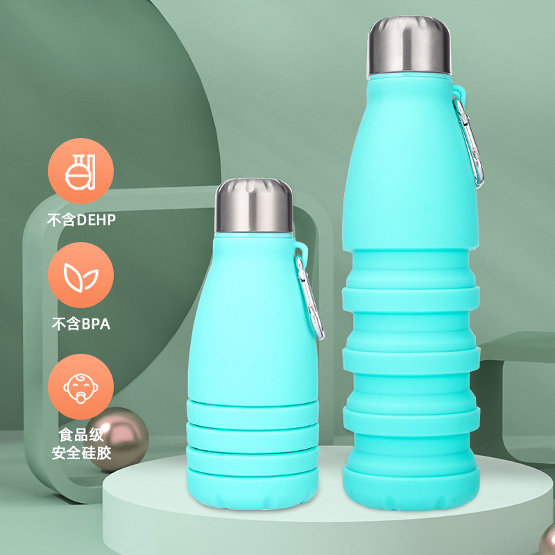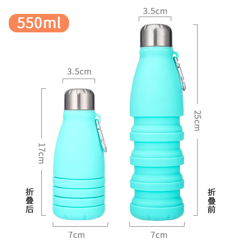 新款铂金级硅胶伸缩可乐瓶 跨境专供户外运动折叠水壶550ml水杯子