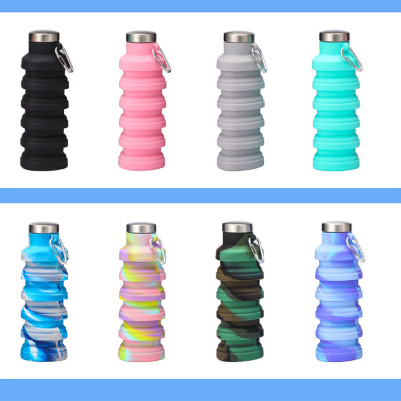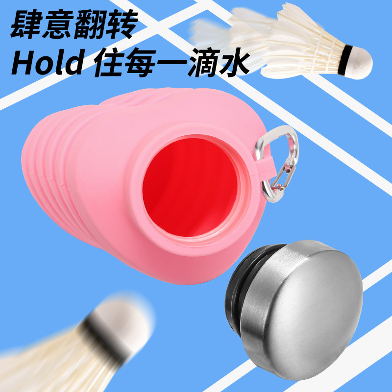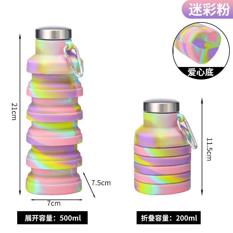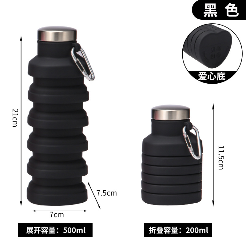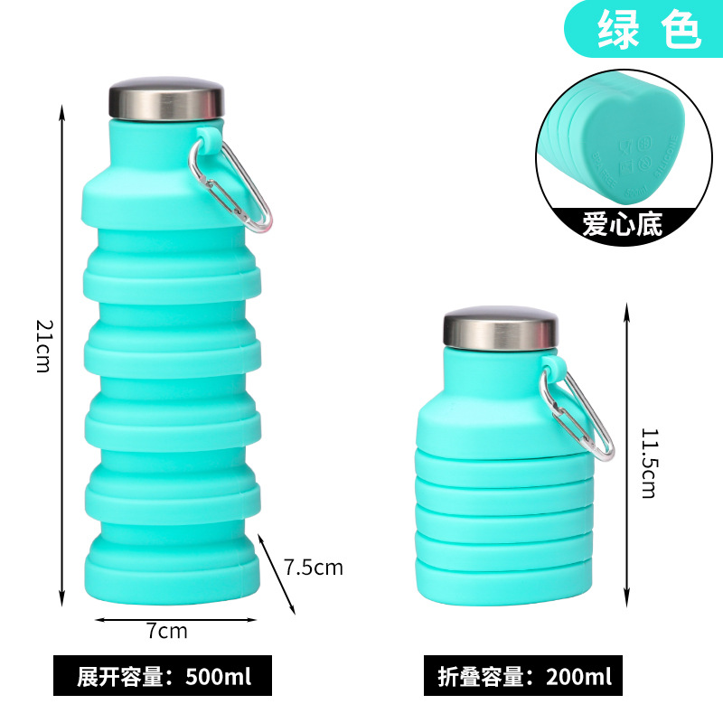 厂家现货铂金硅胶折叠杯 跨境户外伸缩运动水壶心形water bottle