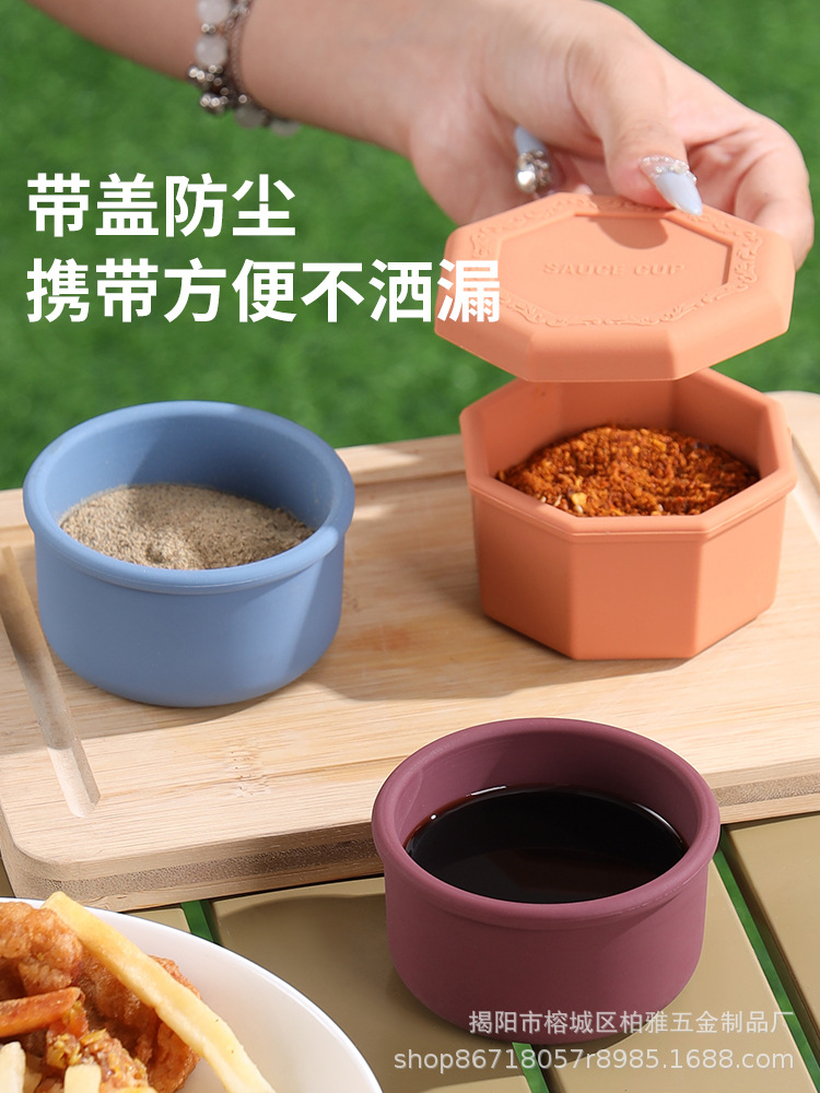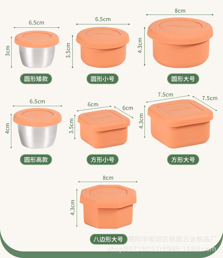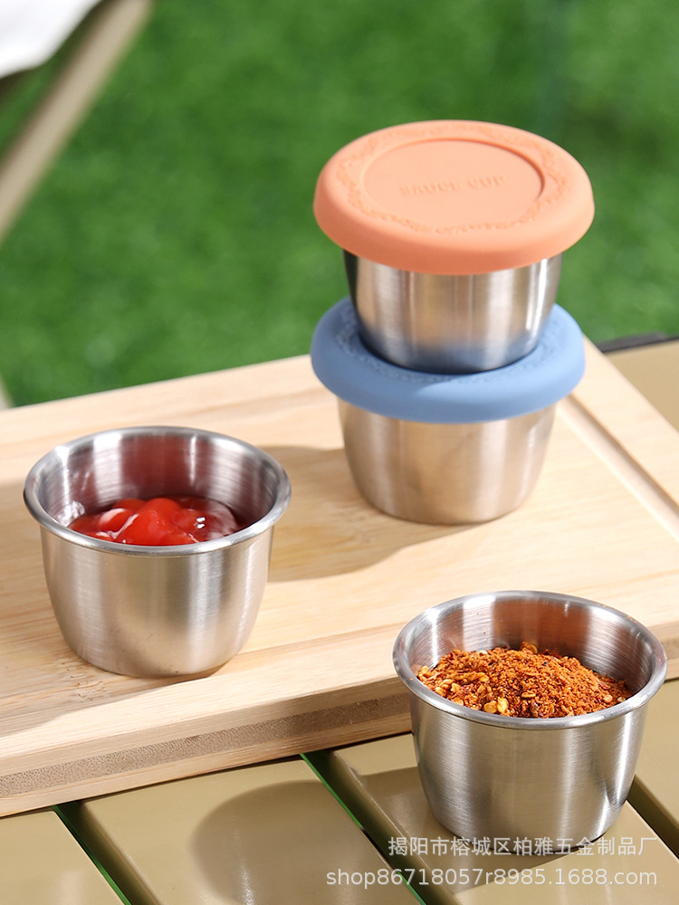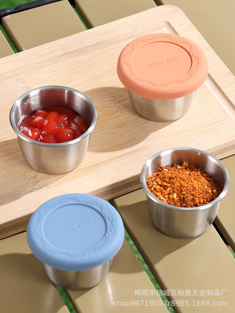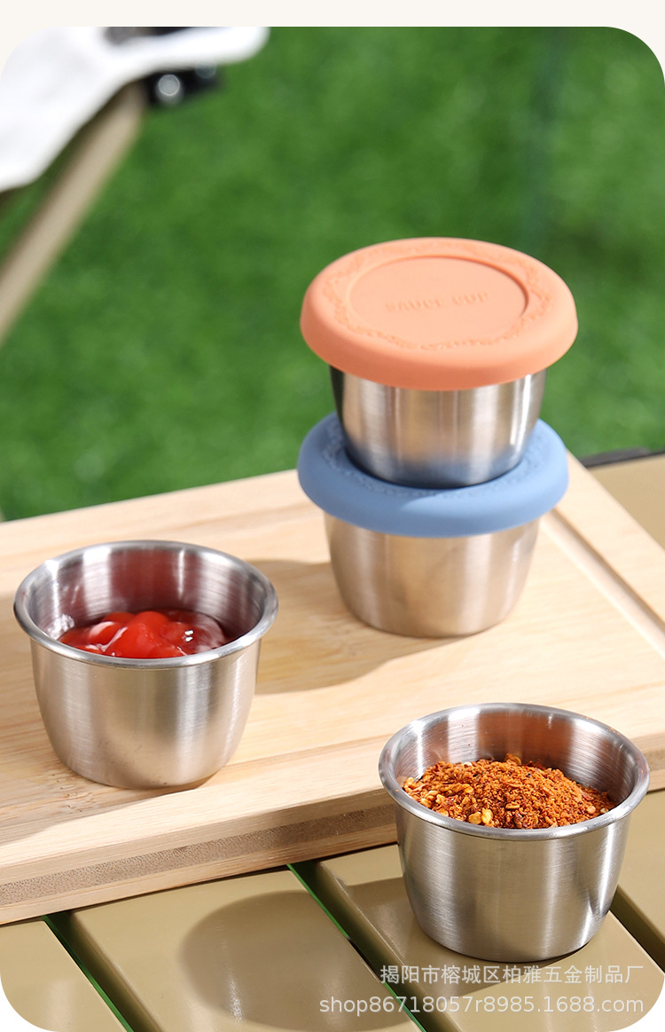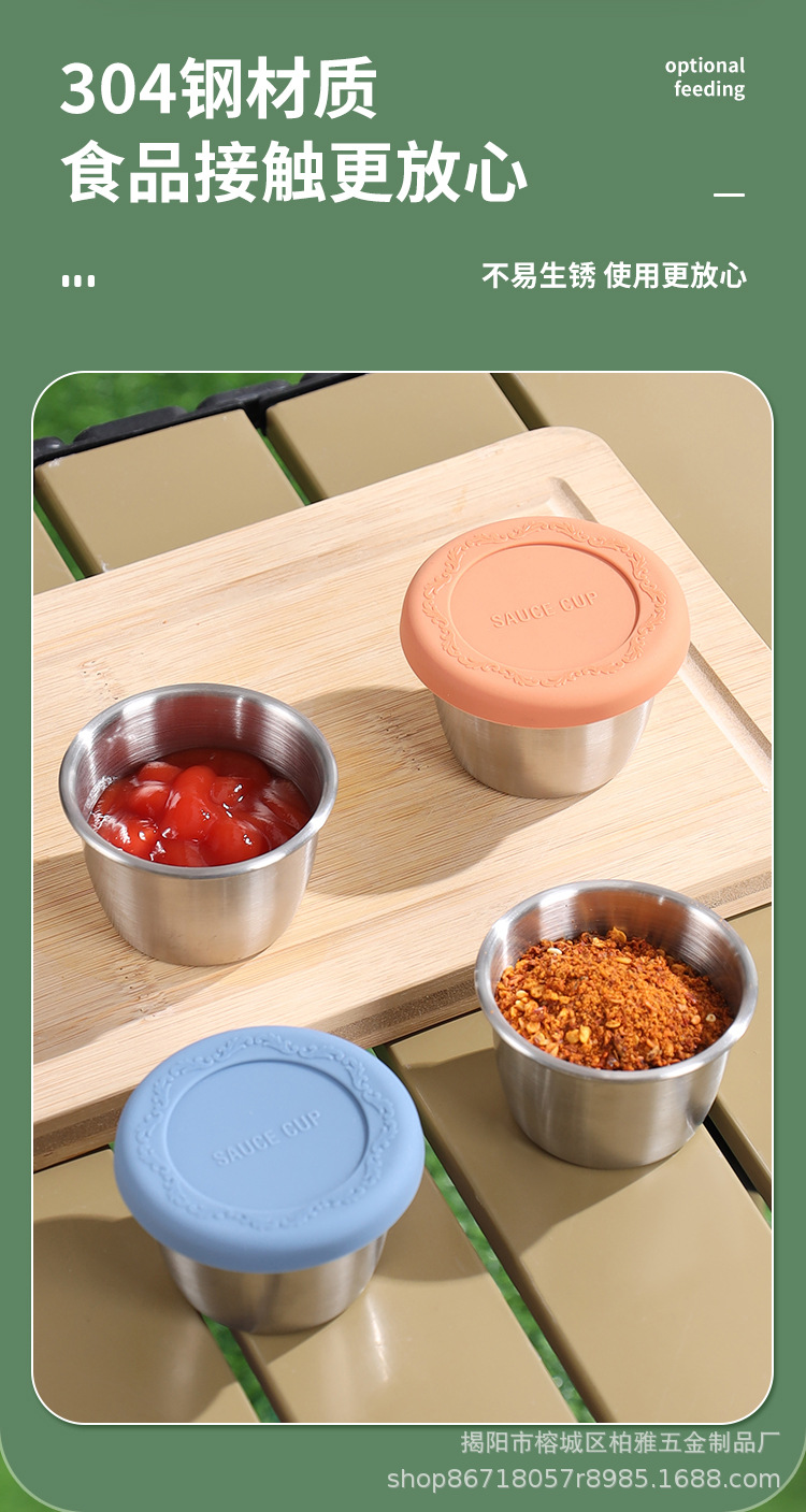 304不锈钢酱料杯40ML可搭配硅胶盖 食品硅胶盖蘸料碟保鲜盖酱汁杯