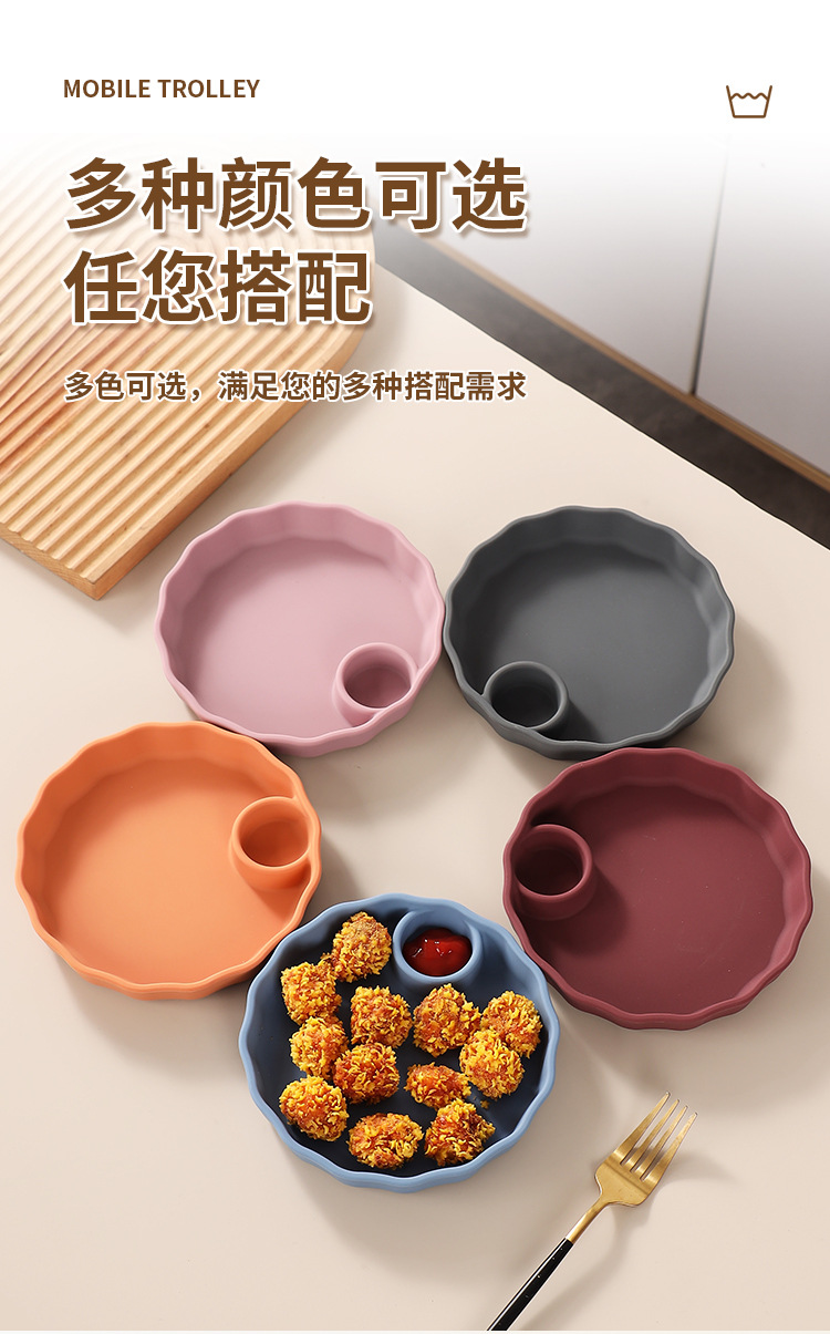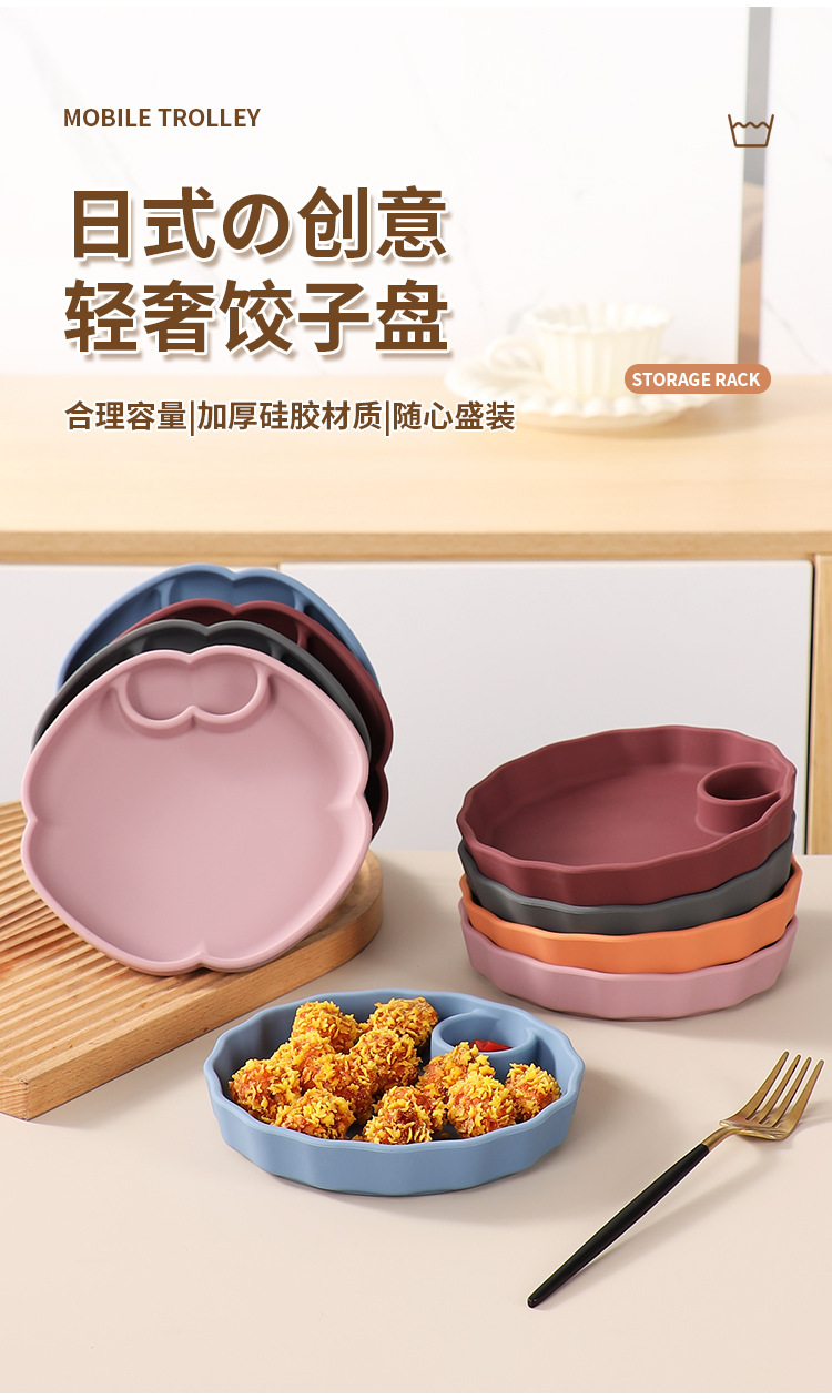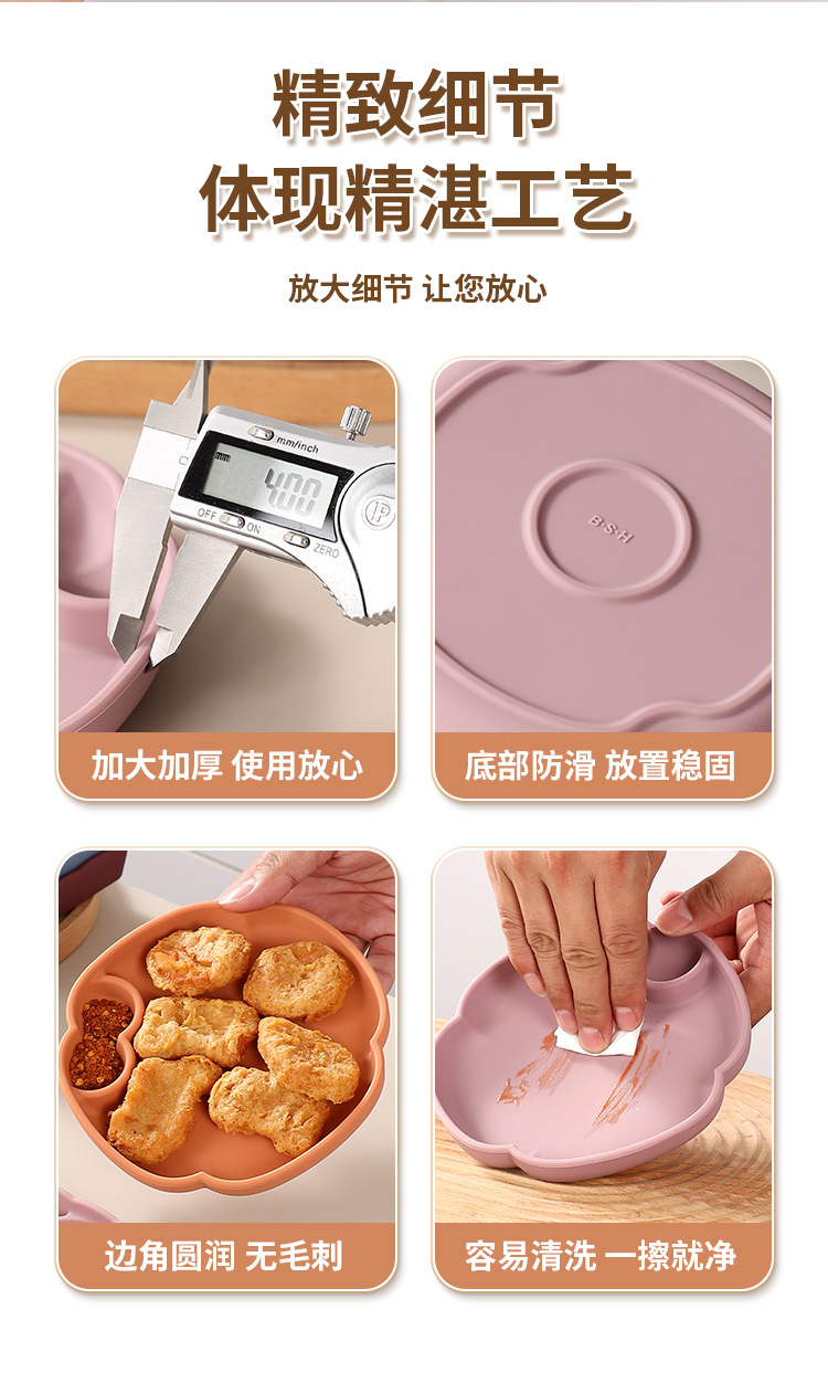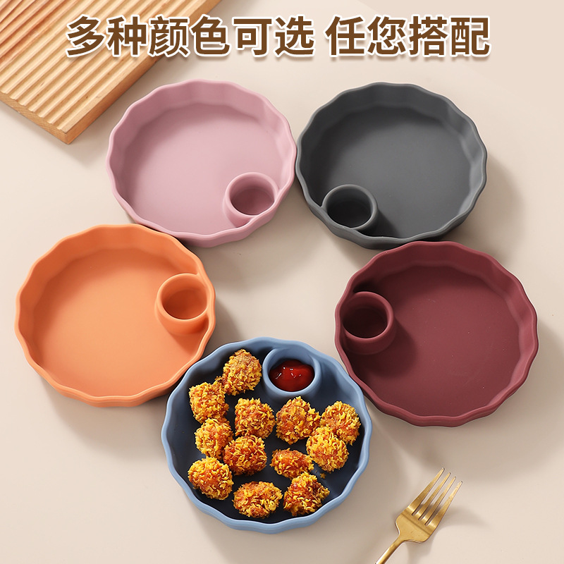 铂金食品级硅胶餐盘 可爱小吃盘子 家用餐具儿童圆形防摔碗一体式