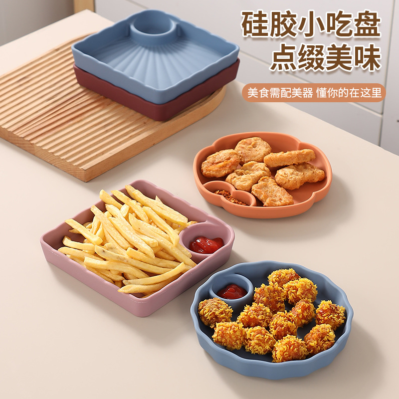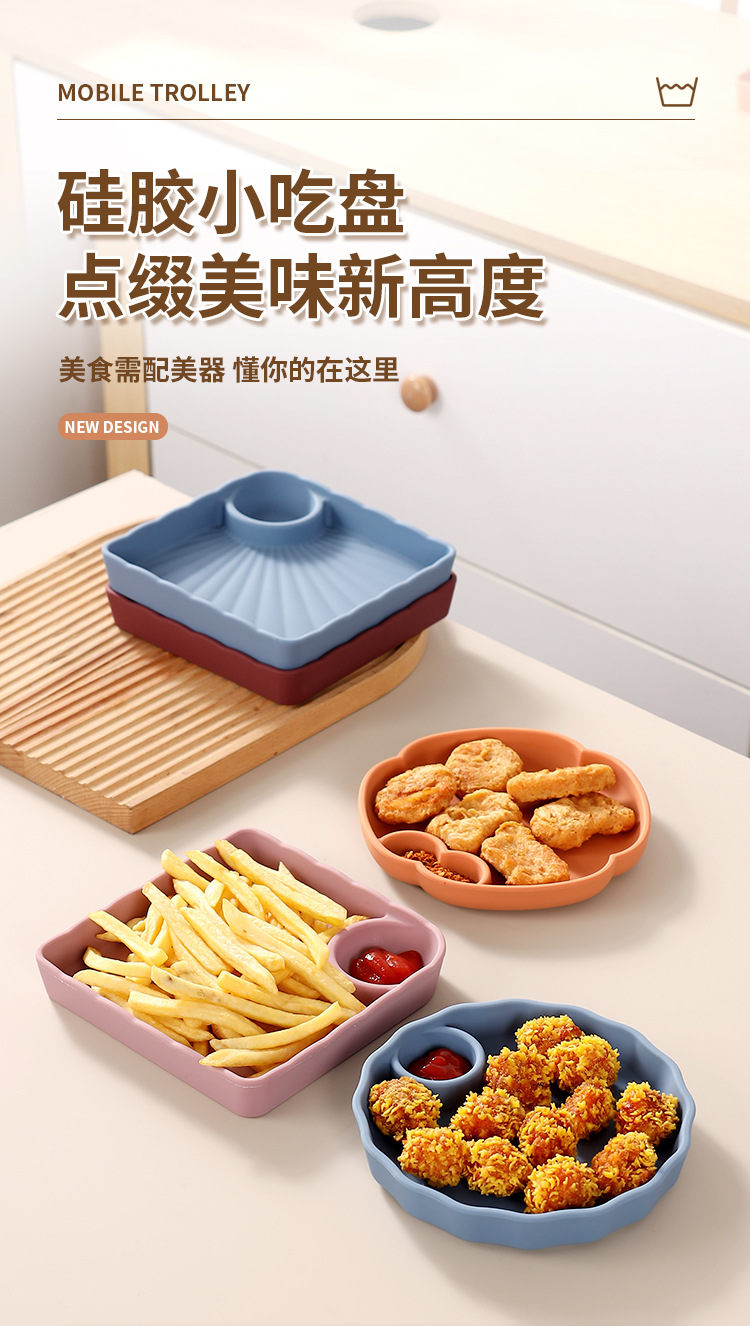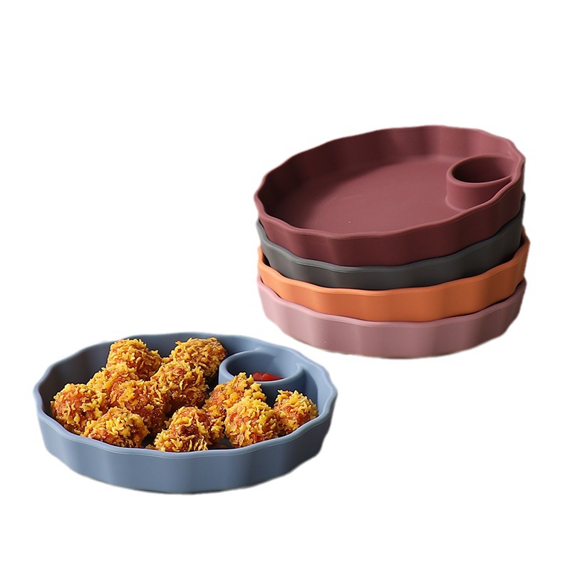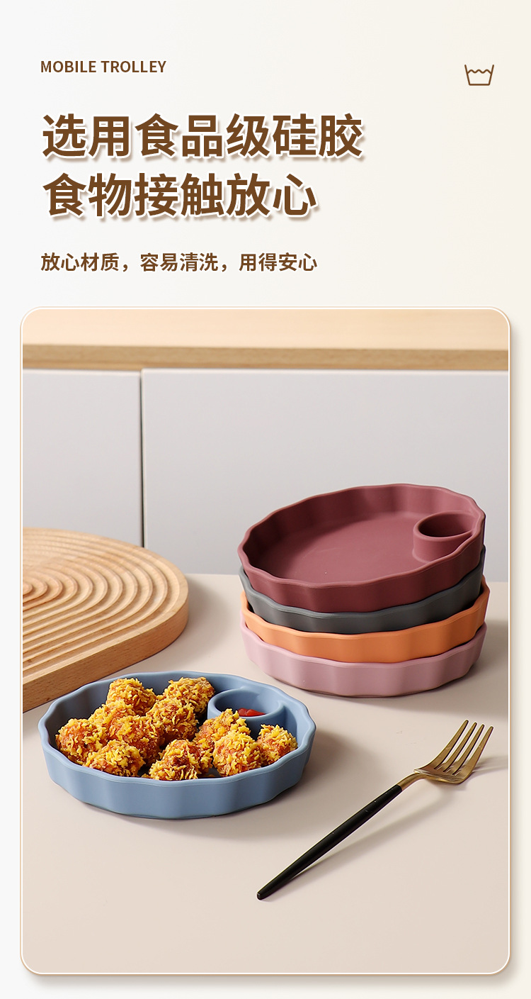 铂金食品级硅胶餐盘 可爱小吃盘子 家用餐具儿童圆形防摔碗一体式