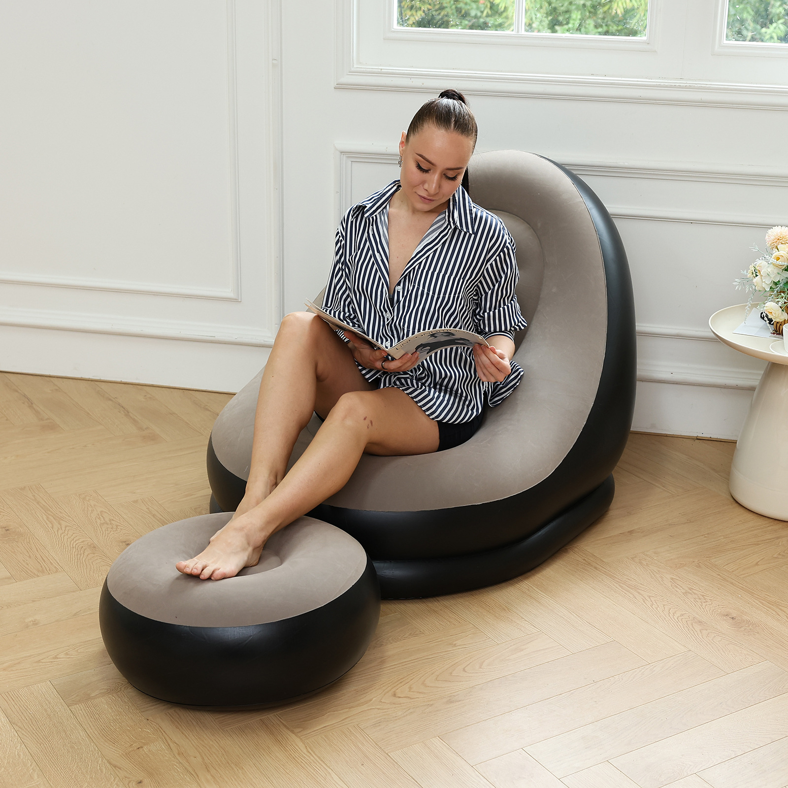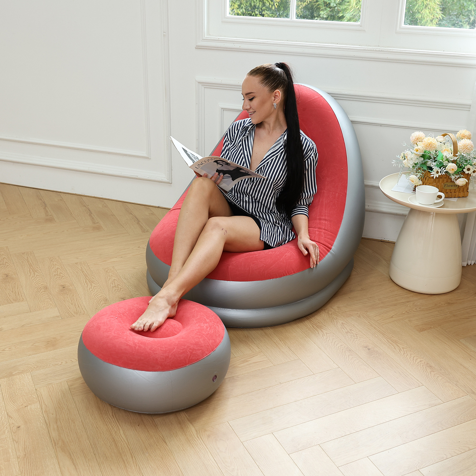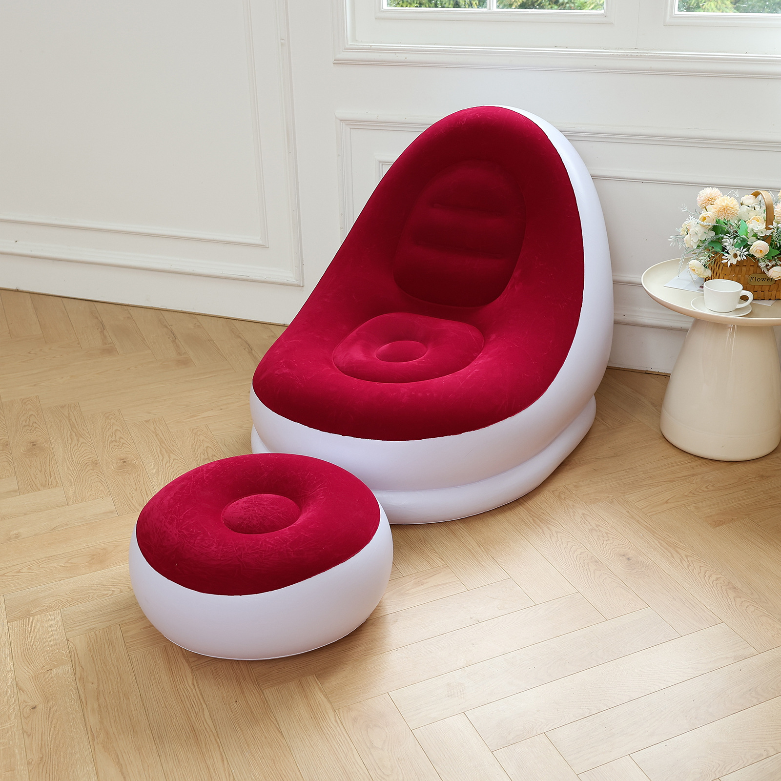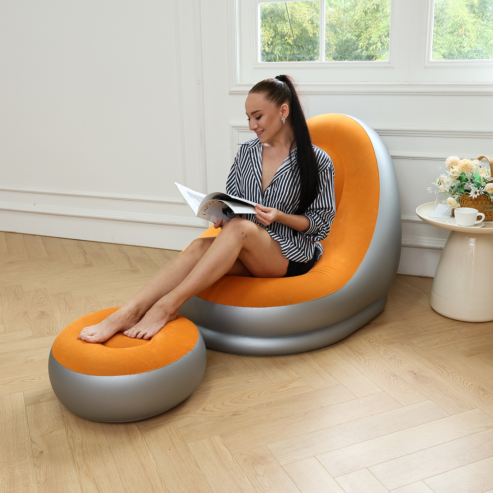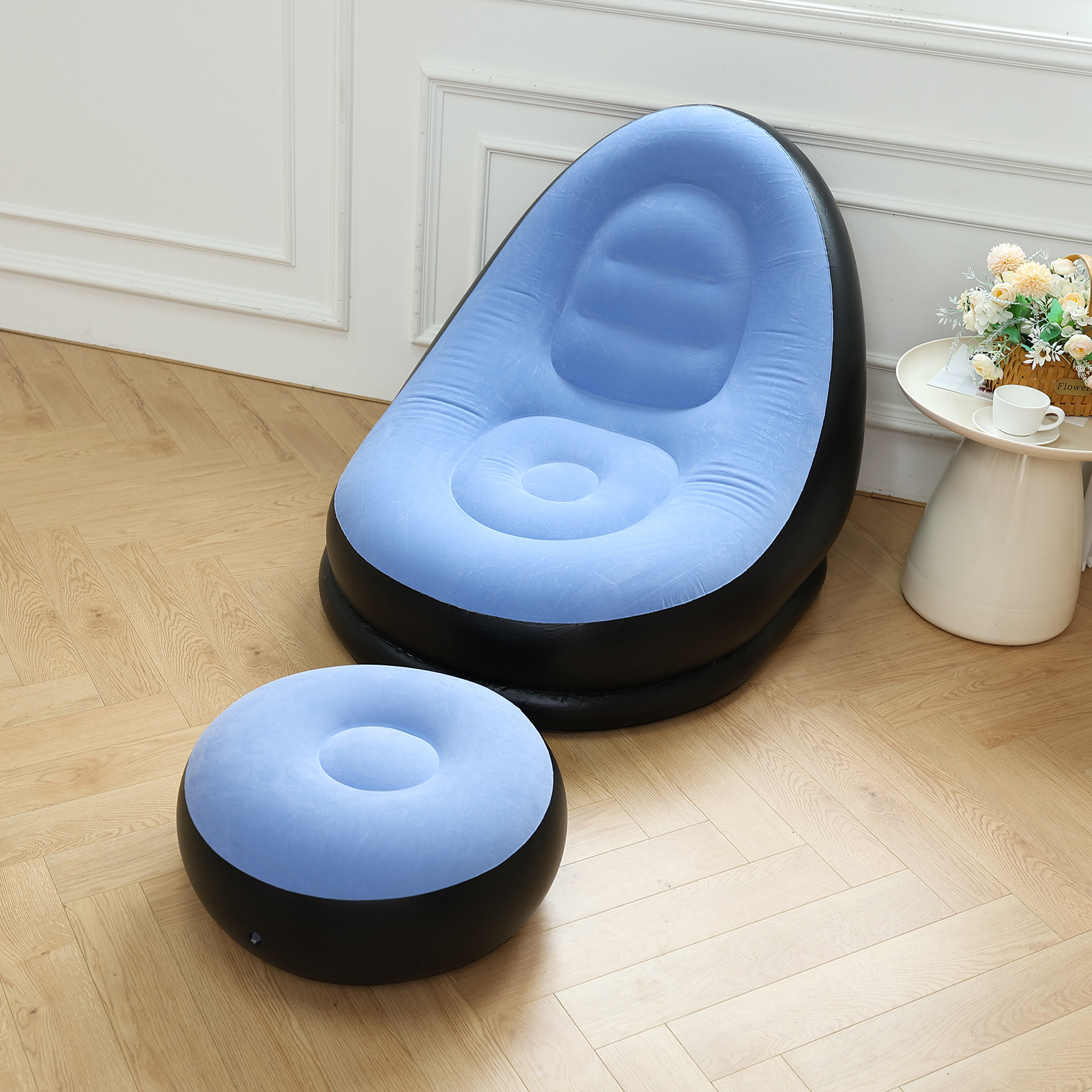 成人充气懒人沙发两件套带脚蹬马卡龙植绒沙发躺椅休闲充气沙发