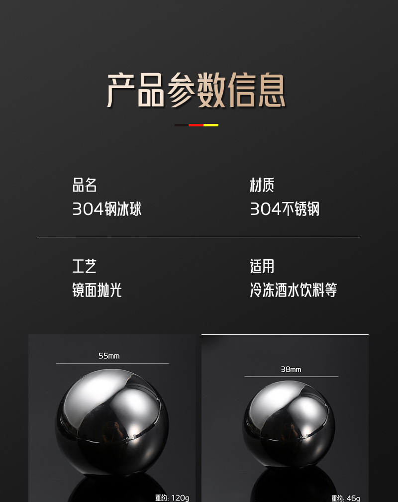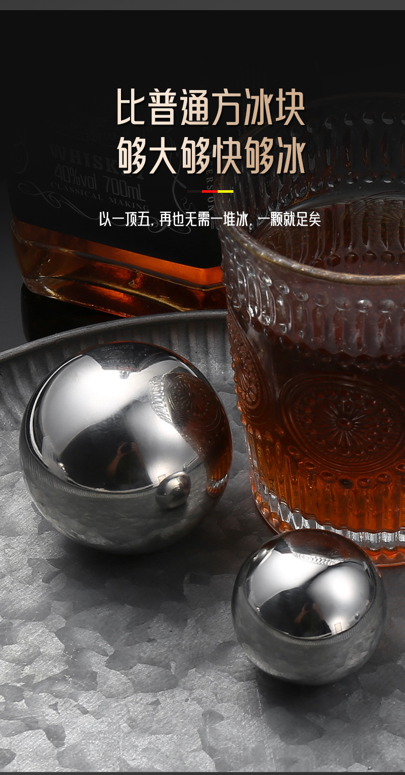 304不锈钢冰球酒吧威士忌可乐啤酒冰酒石不锈钢冰块圆形不锈钢球