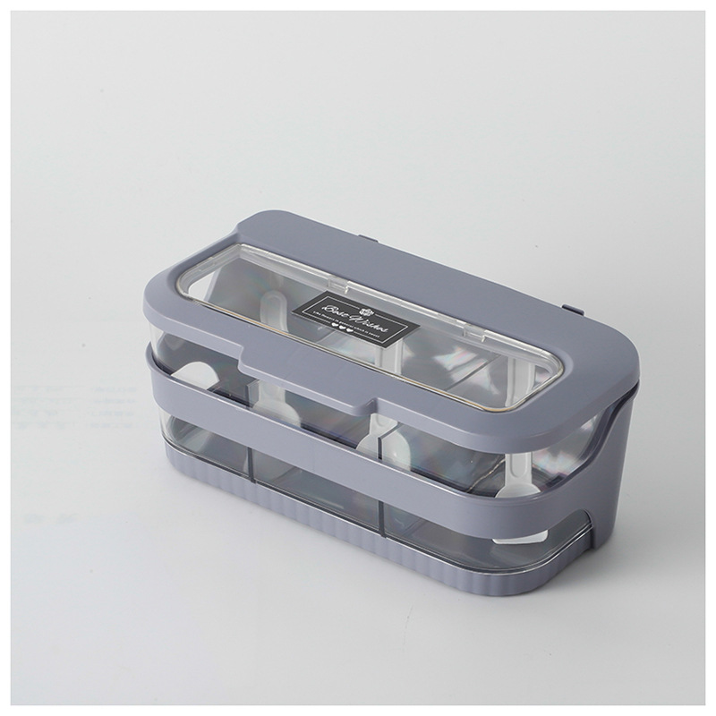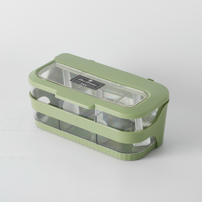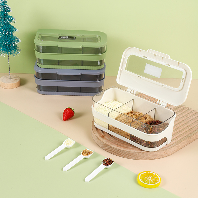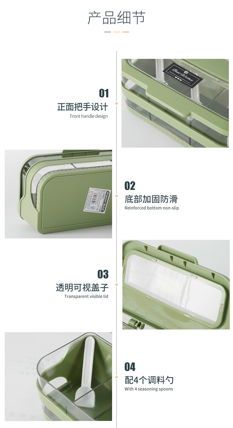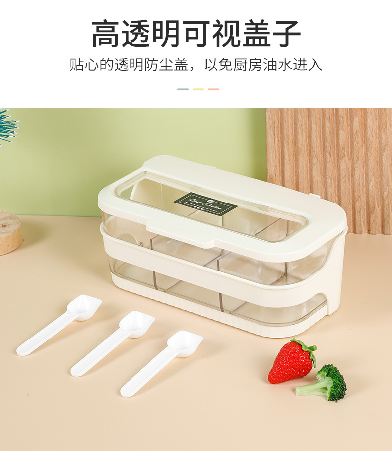 新款分格厨房调味盒收纳盐味精防潮调料盒家用三格调料罐批发