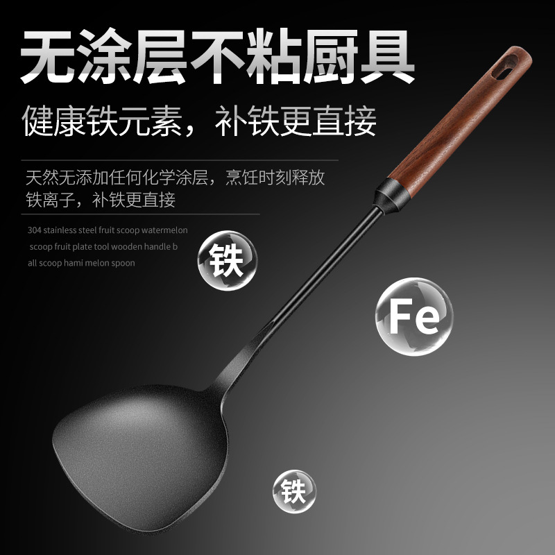 极铁锅铲汤勺家用炒菜铲子为粘锅专用勺子厨具套装食品级长柄铁铲