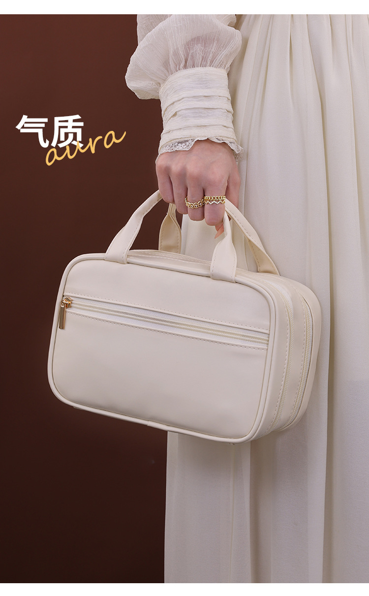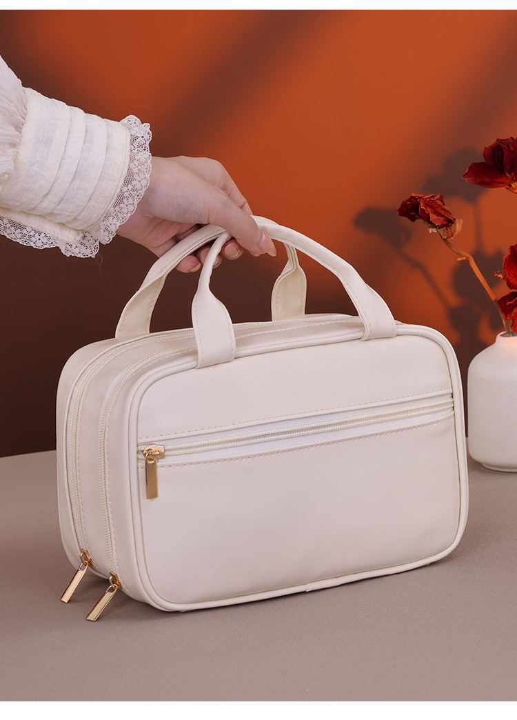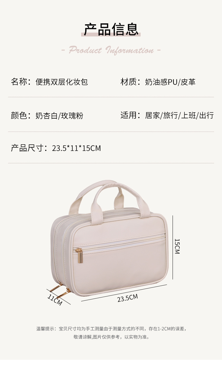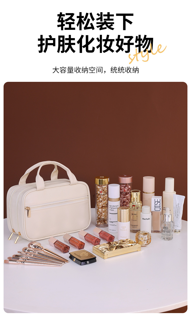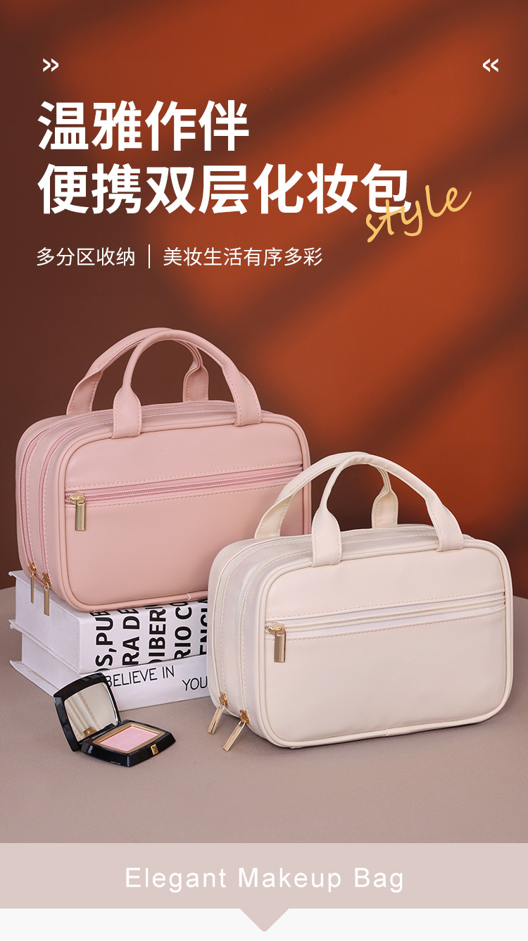 法式双层手提化妆包大容量高级感化妆刷收纳包旅行便携分区洗漱包