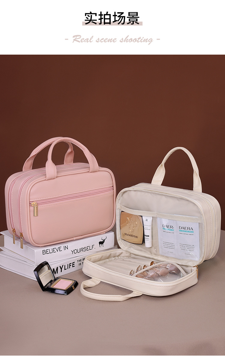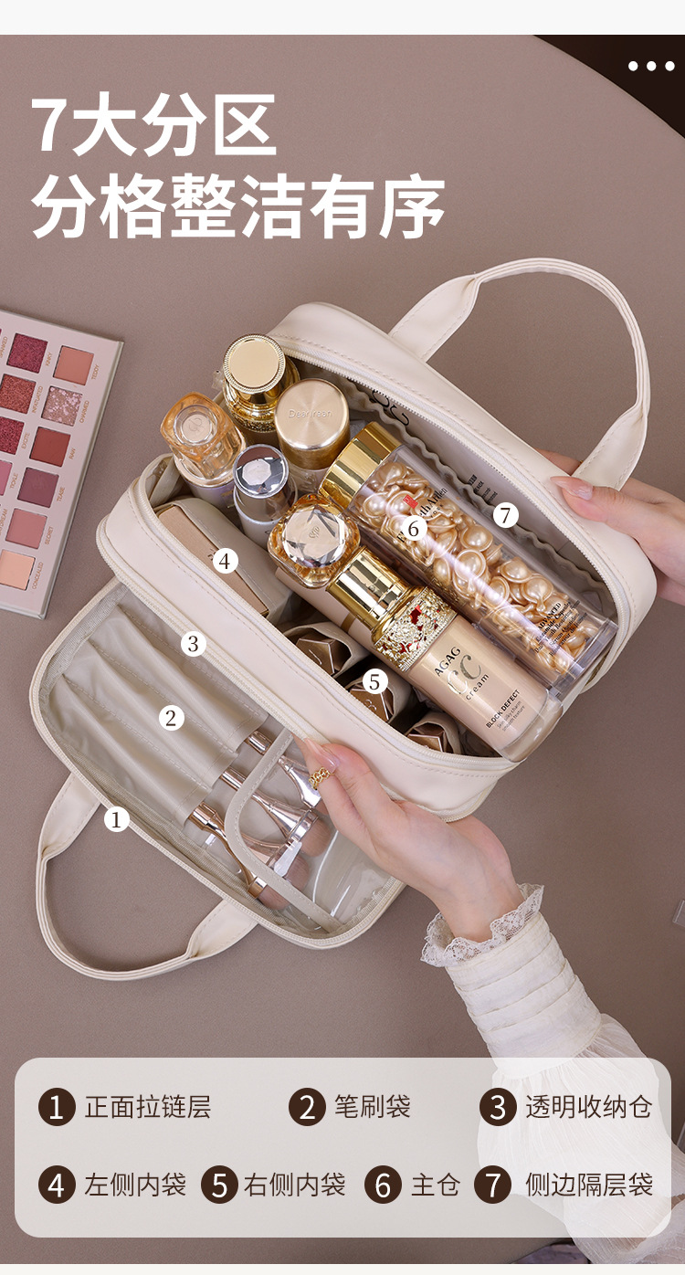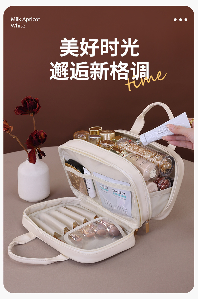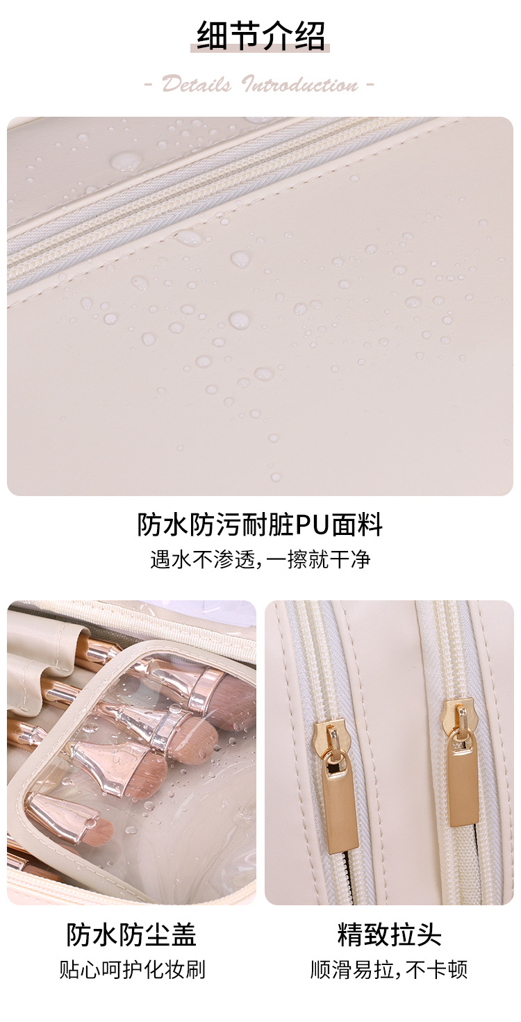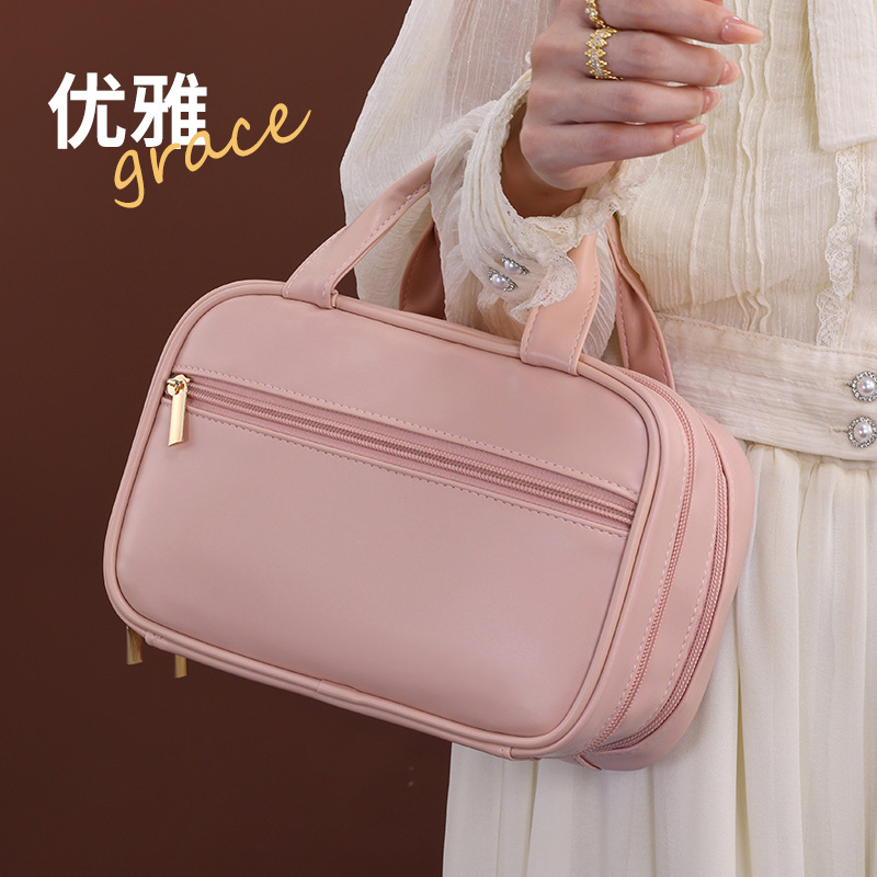 法式双层手提化妆包大容量高级感化妆刷收纳包旅行便携分区洗漱包