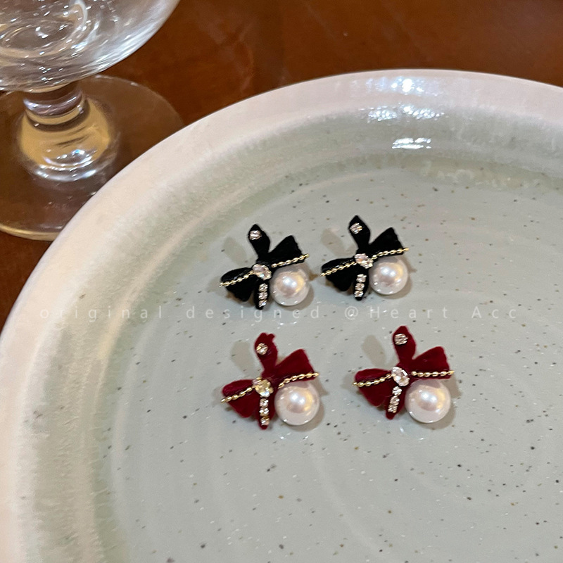 耳环百搭气质珍珠耳钉超闪锆石耳饰秋冬款植绒蝴蝶结耳环女批发