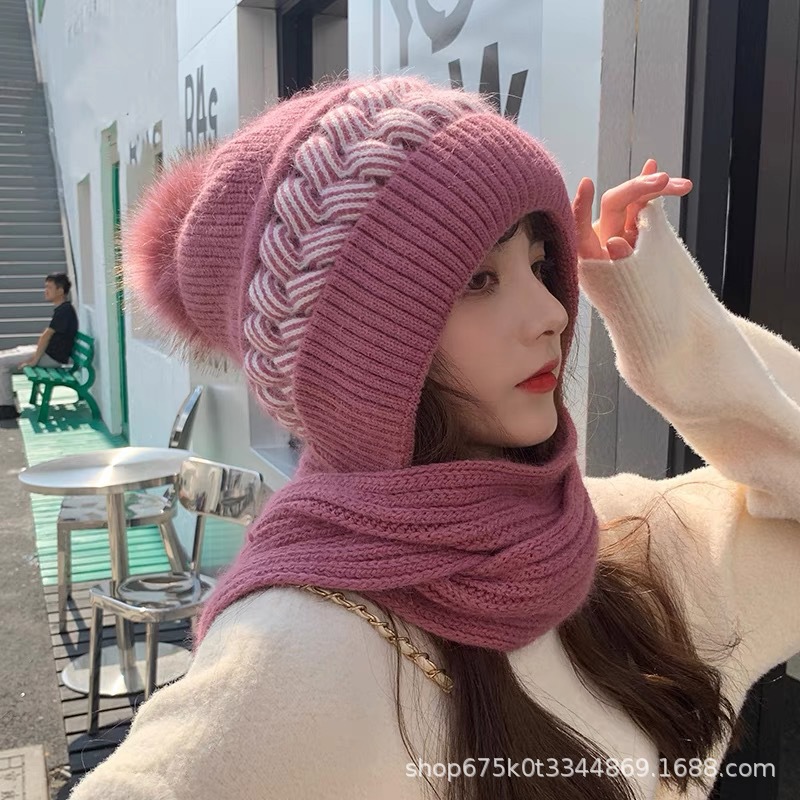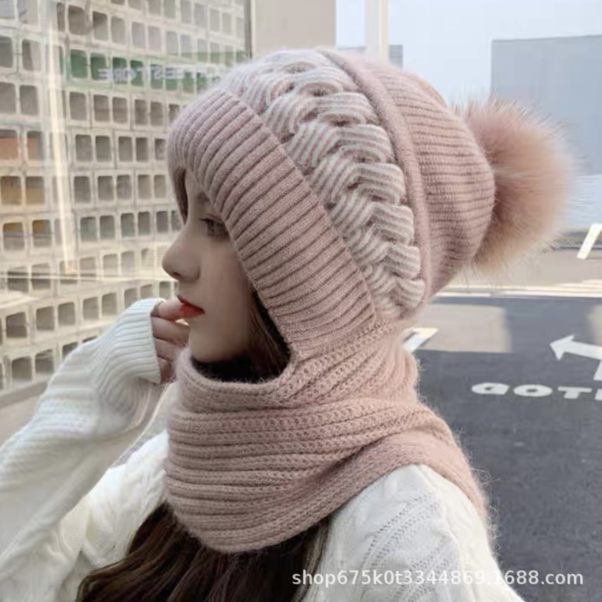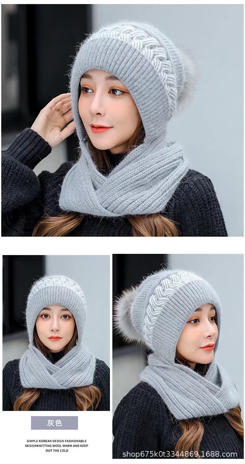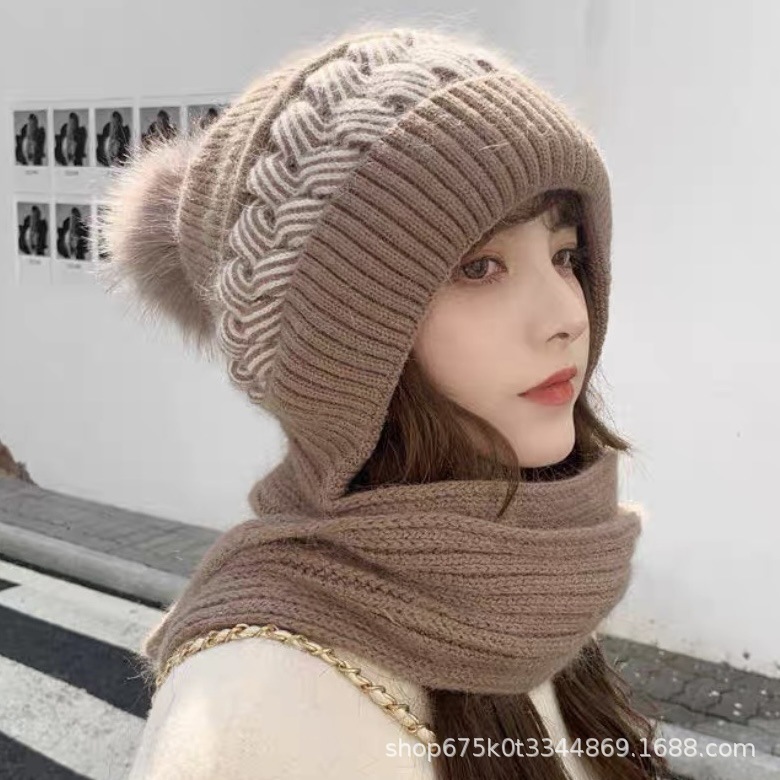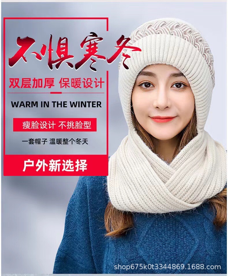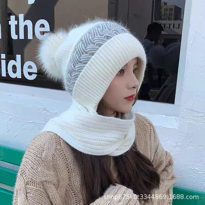 帽子女秋冬百搭韩版可爱针织帽防寒护耳护脖加厚毛线帽围巾一体帽