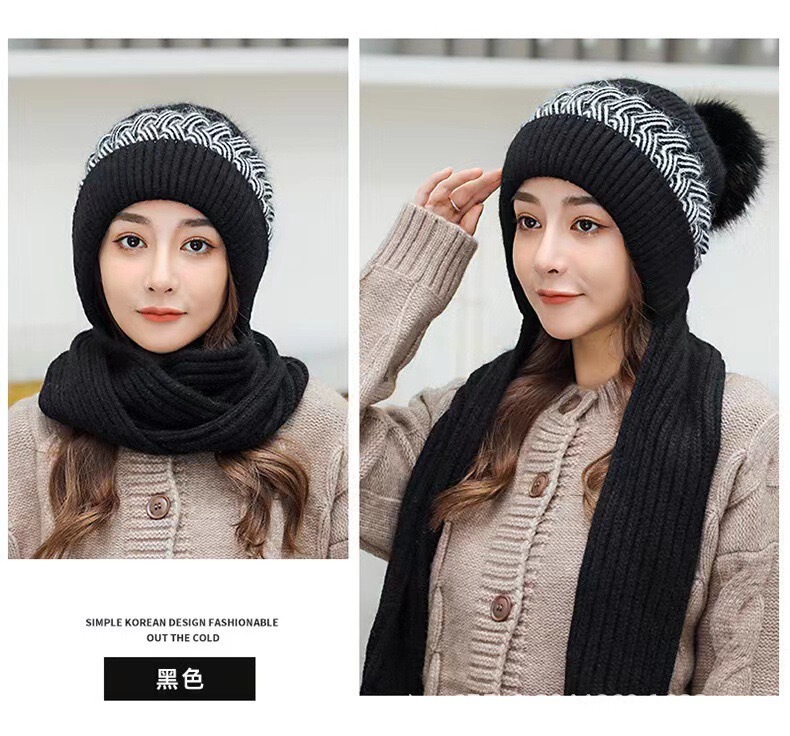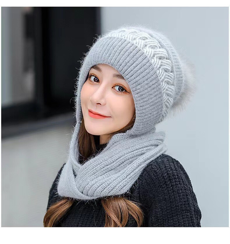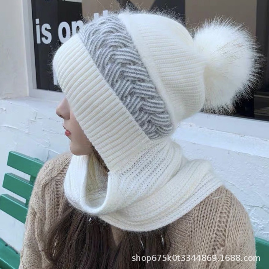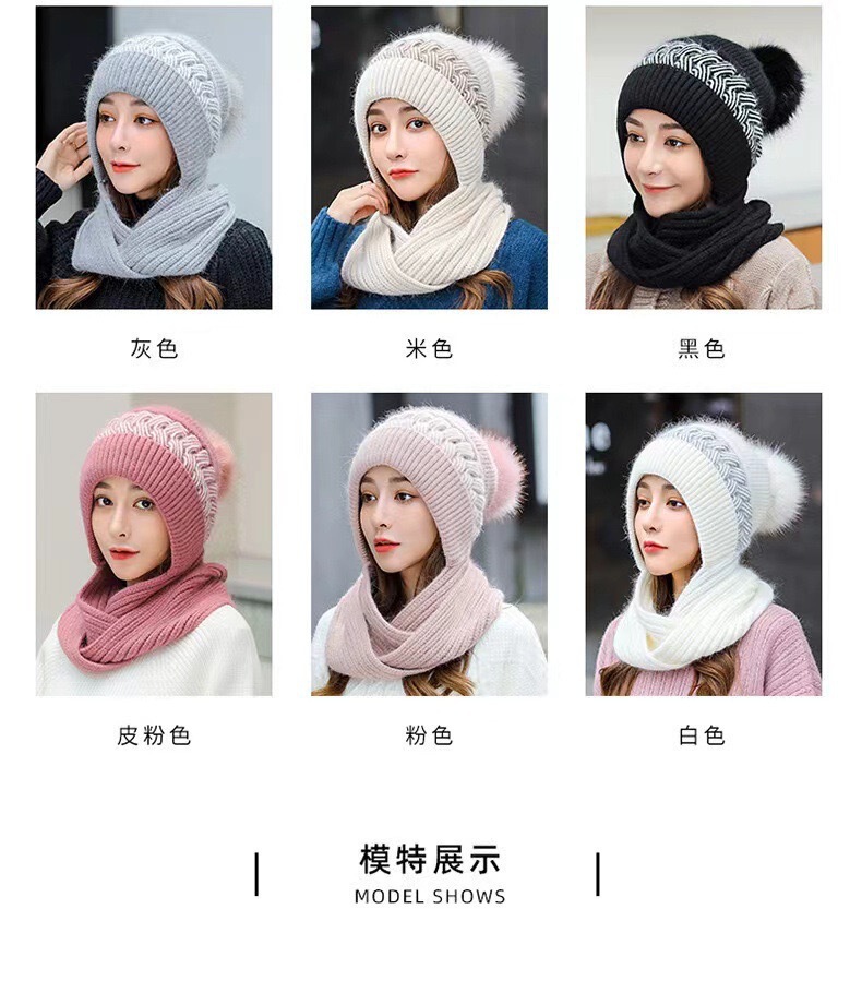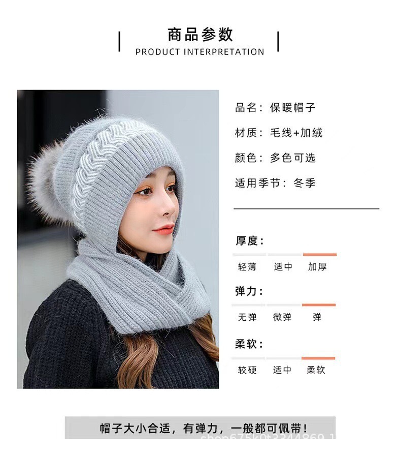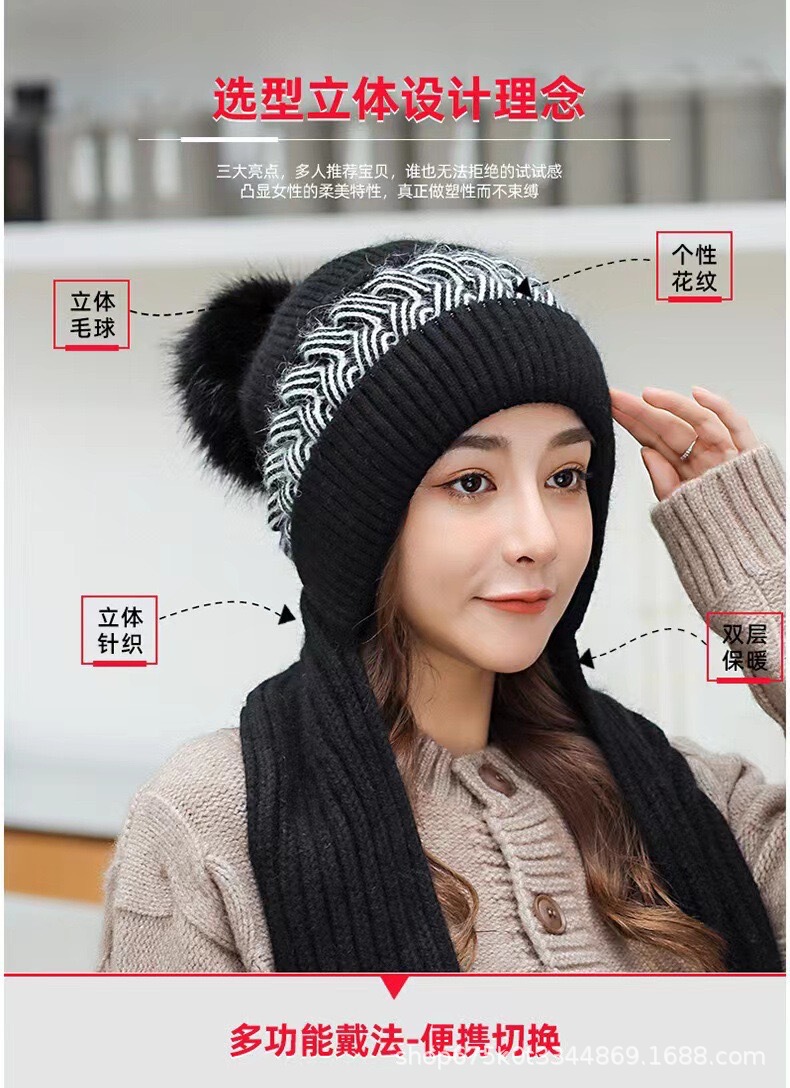 帽子女秋冬百搭韩版可爱针织帽防寒护耳护脖加厚毛线帽围巾一体帽