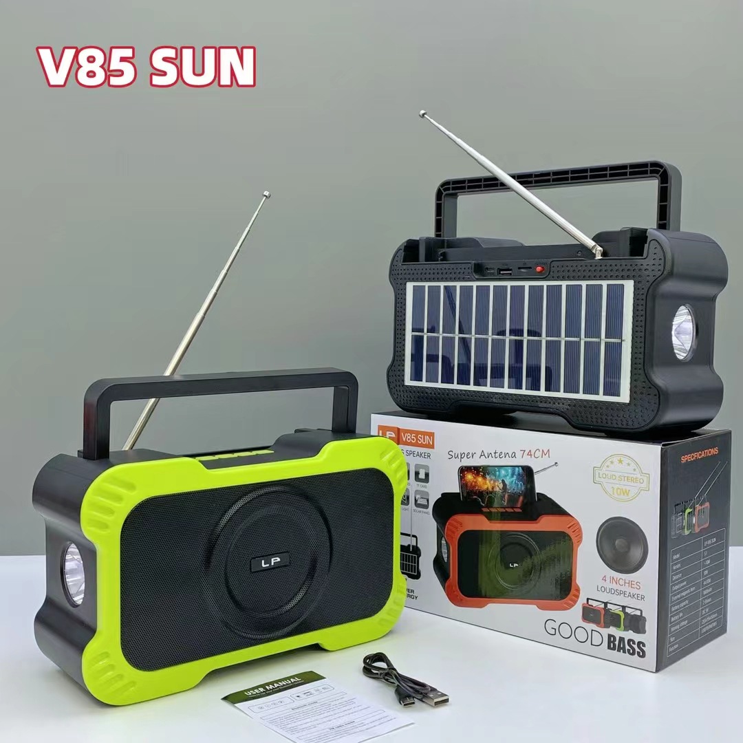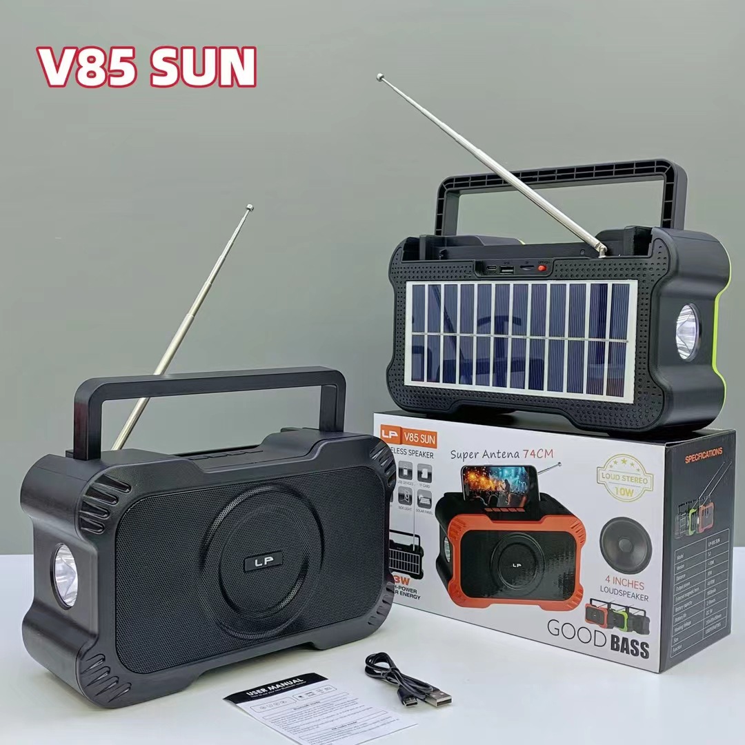 LP-V85 SUN手提太阳能无线蓝牙音响天线FM收音机手电筒小音响批发