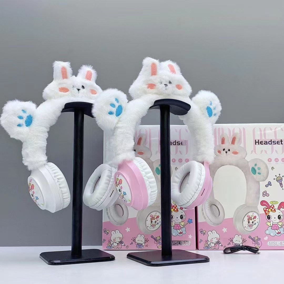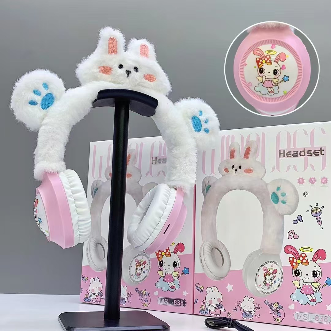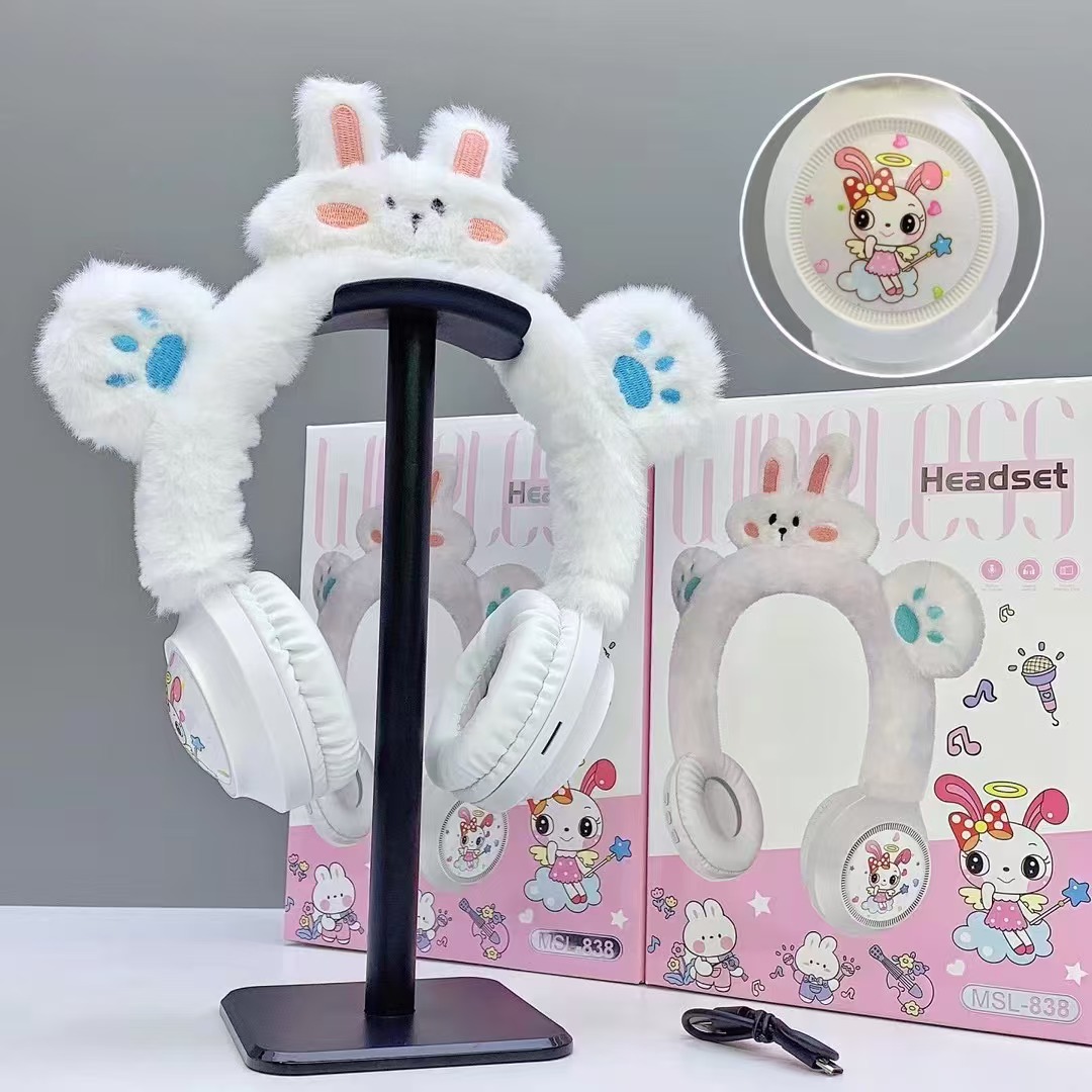 外贸MSL-838创意卡通小兔子毛绒头戴式蓝牙耳机礼品无线儿童跨境