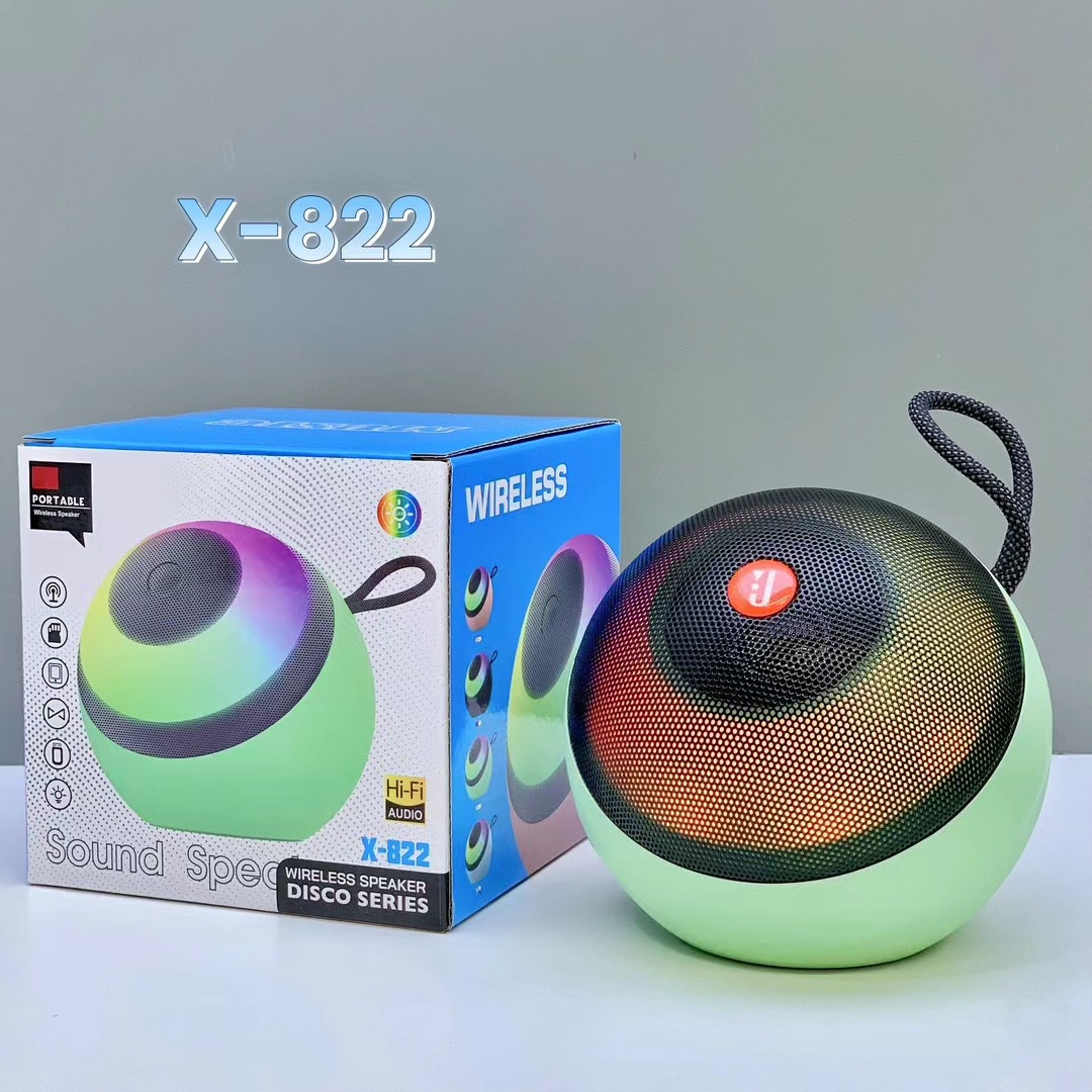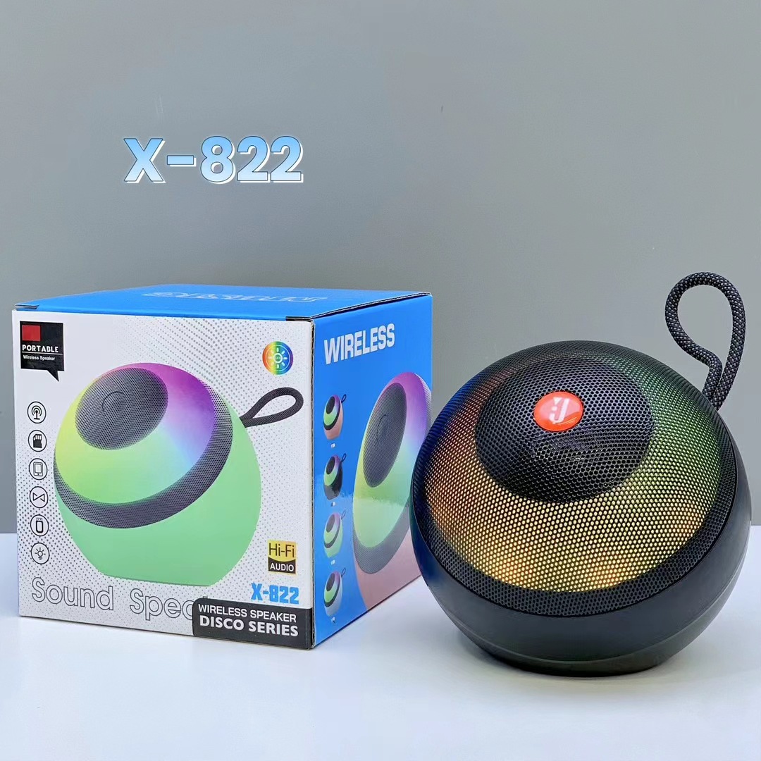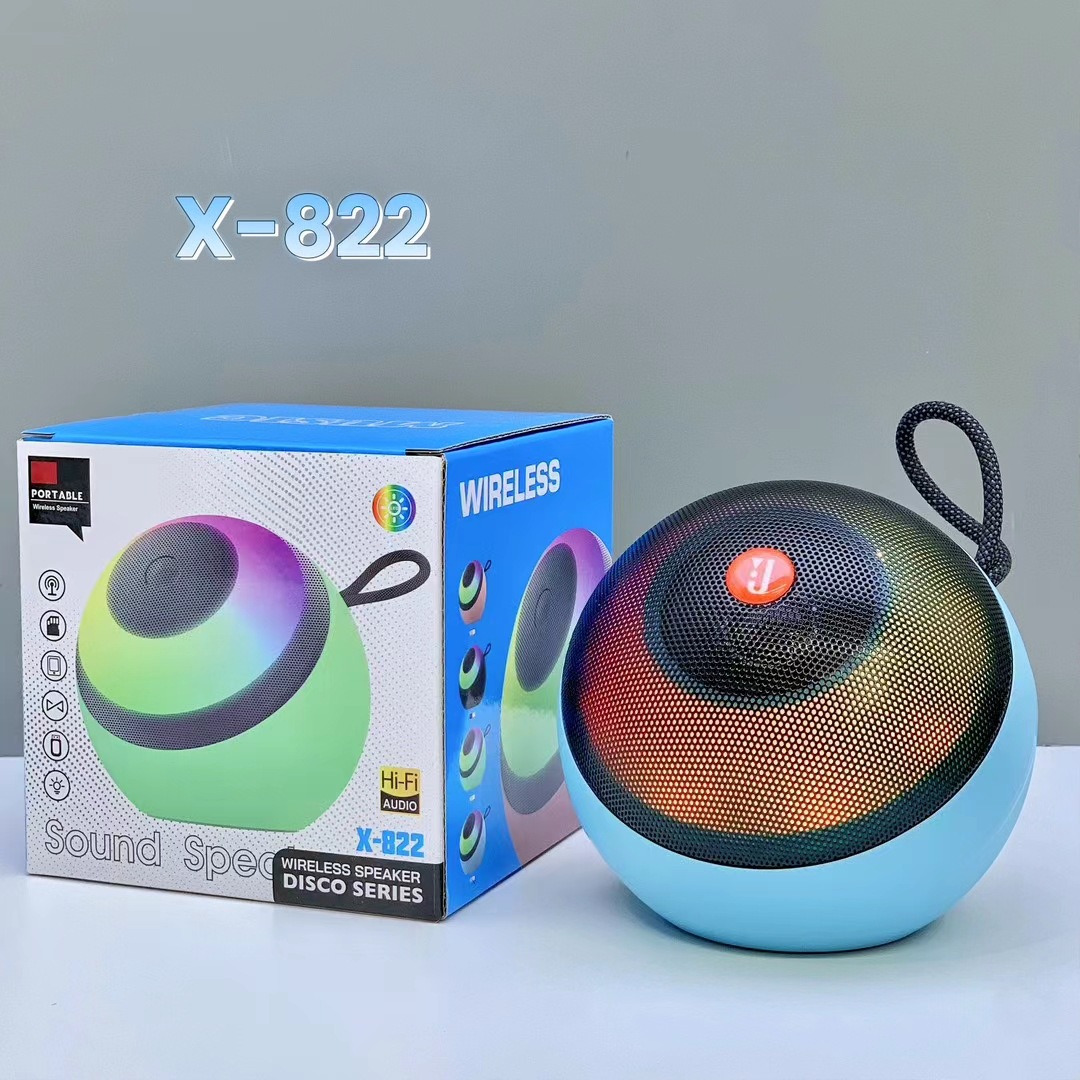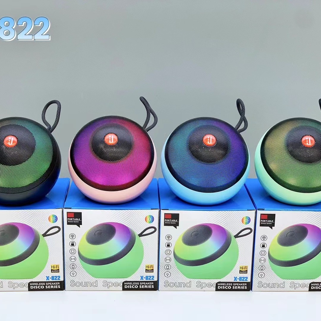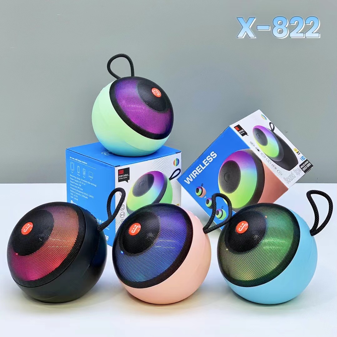 外贸X-822蓝牙音响户外低音炮手提炫彩灯便携式桌面迷你插卡音箱