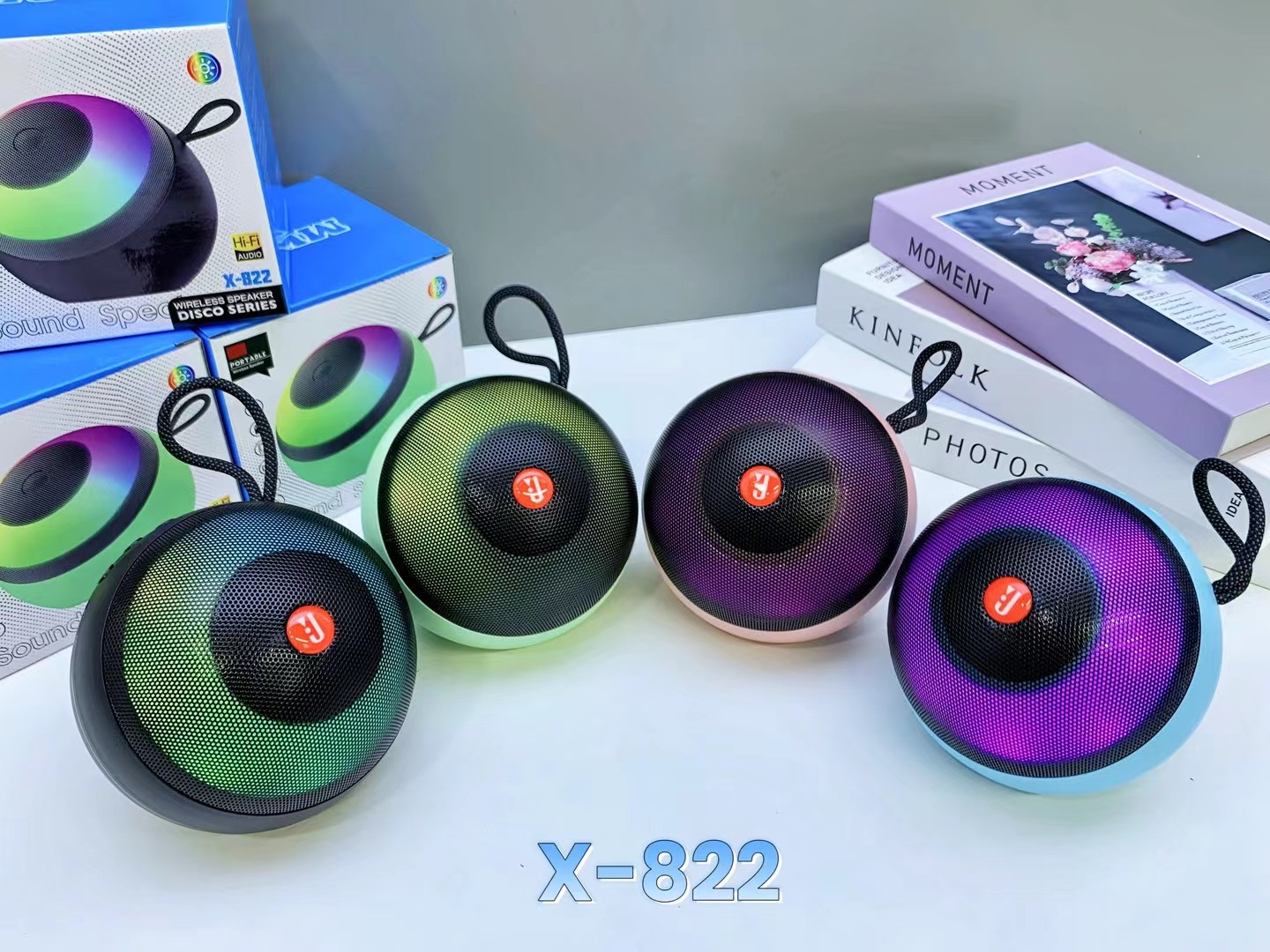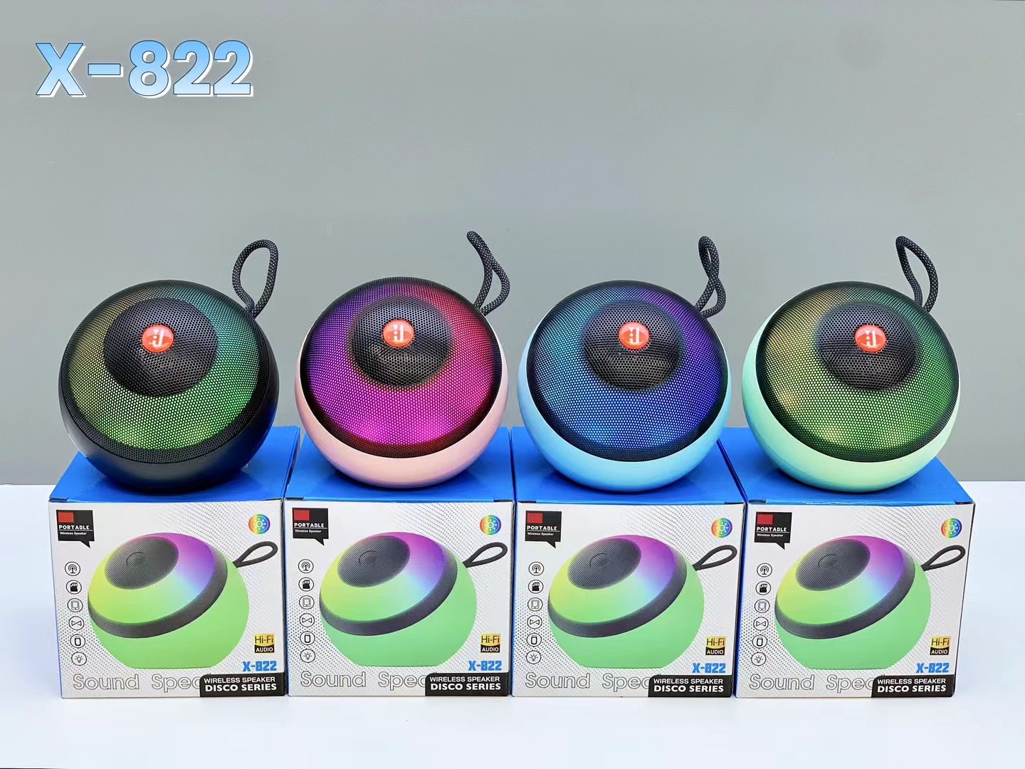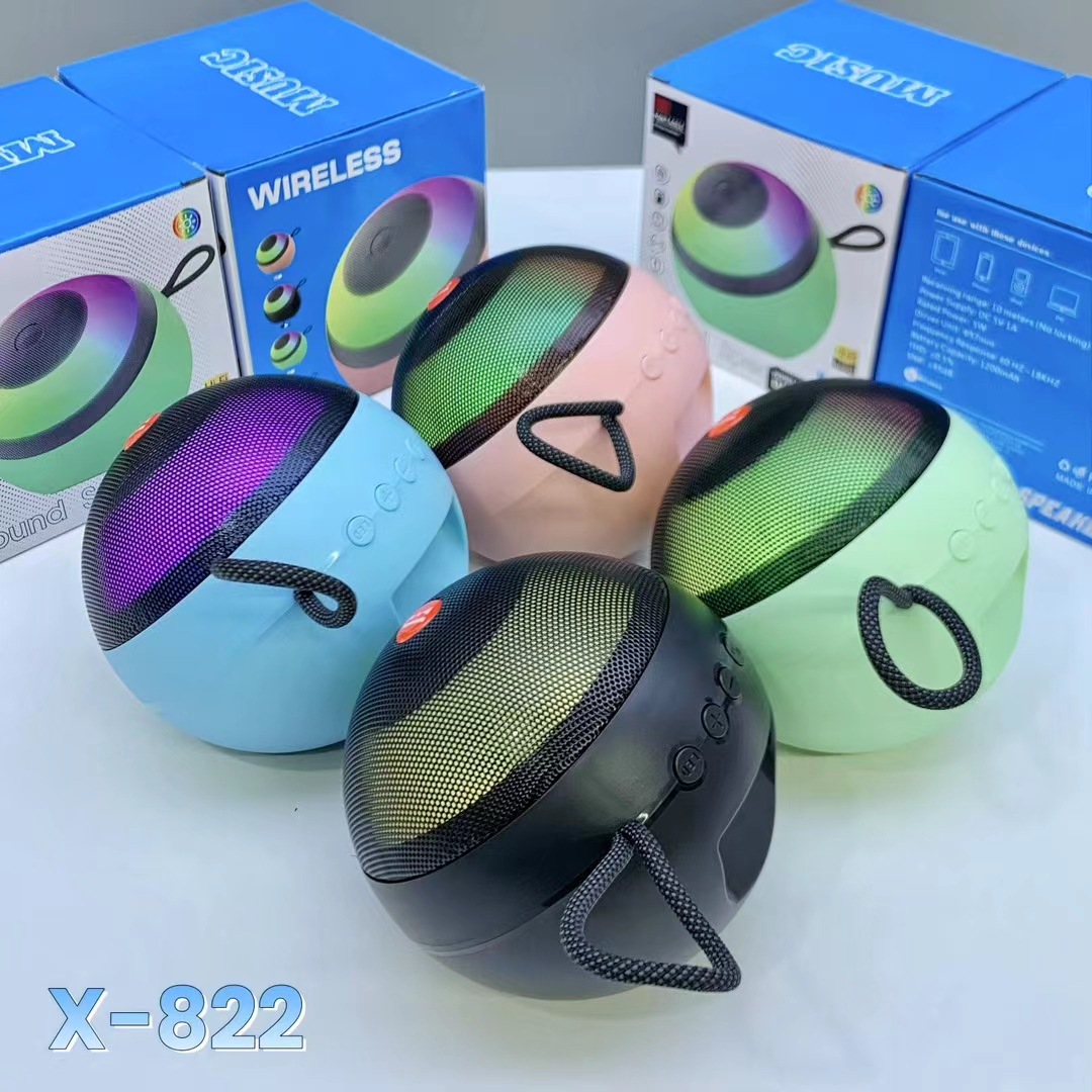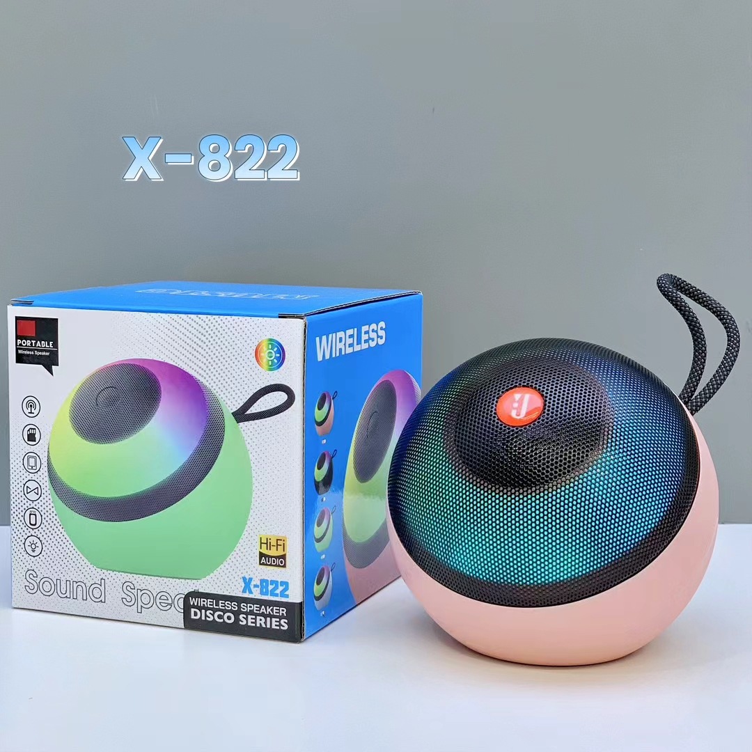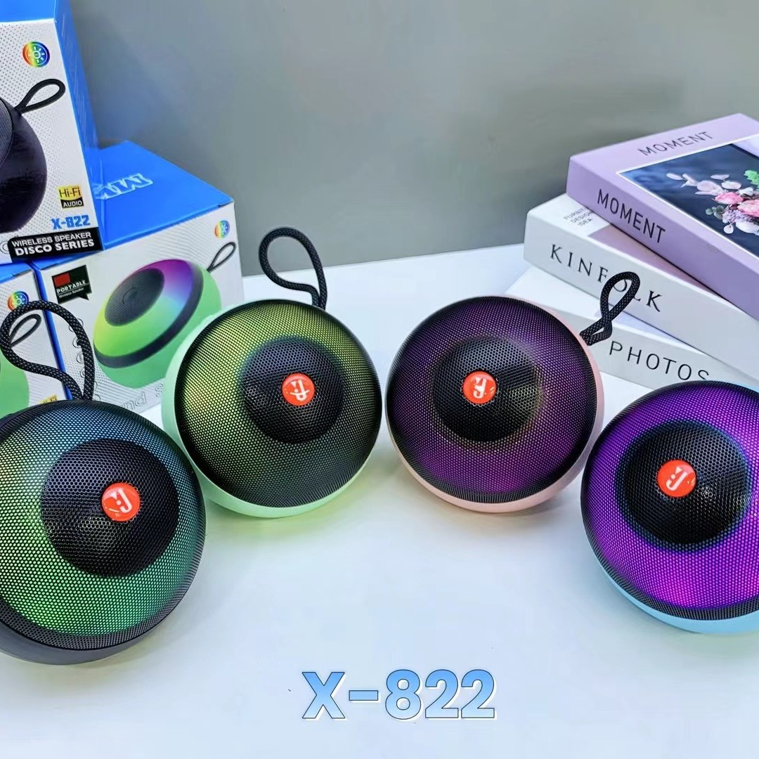 外贸X-822蓝牙音响户外低音炮手提炫彩灯便携式桌面迷你插卡音箱