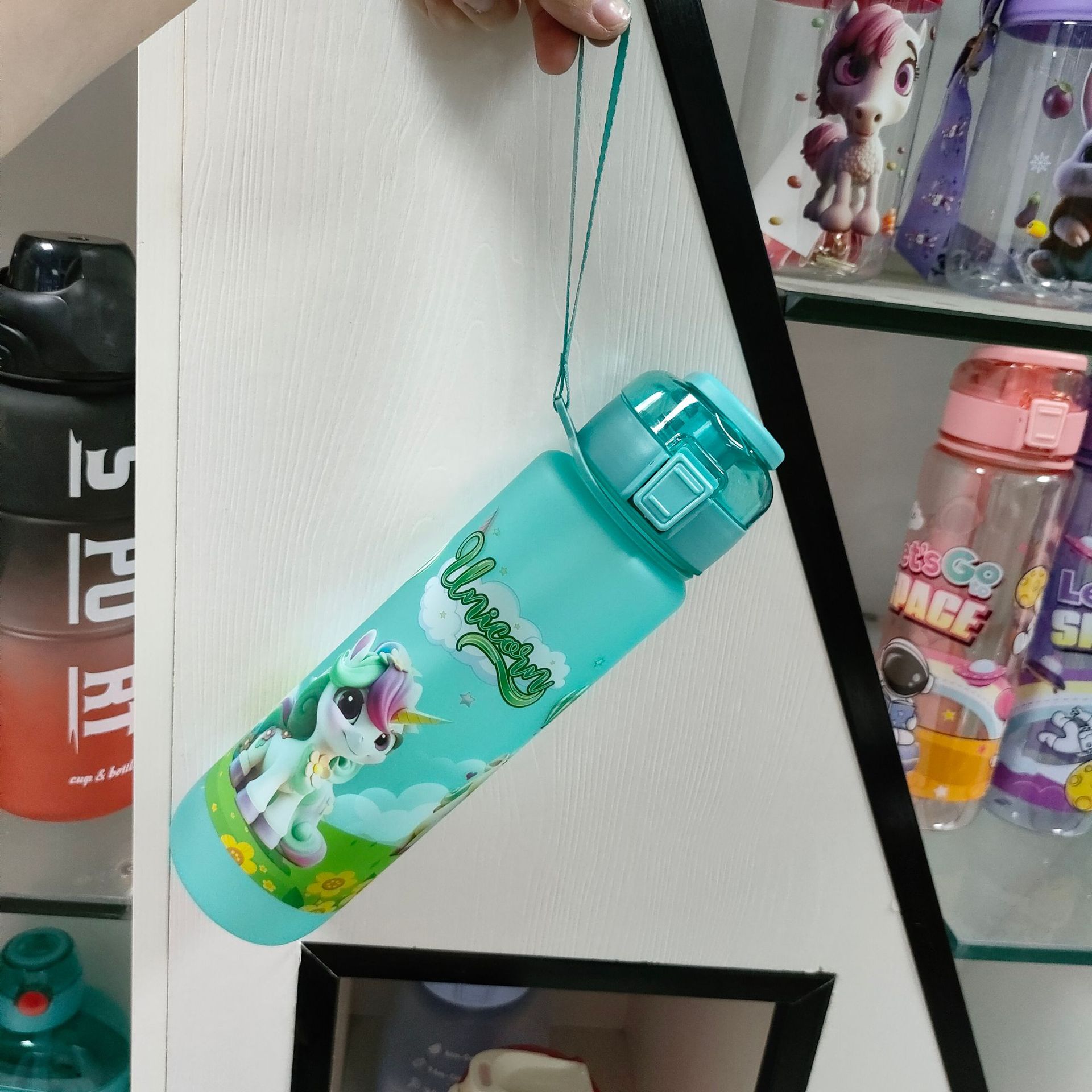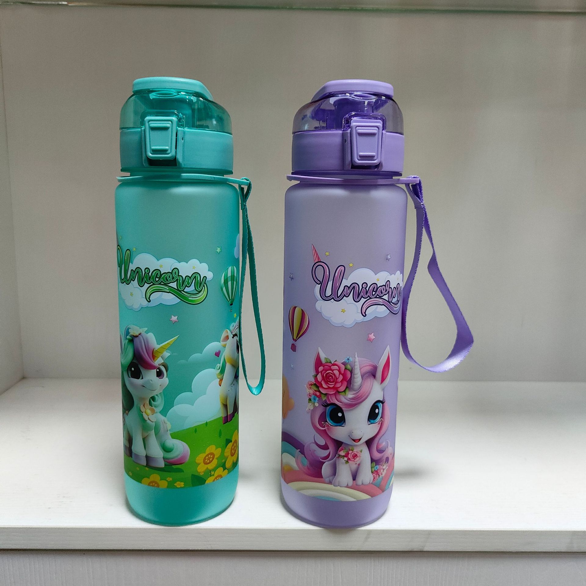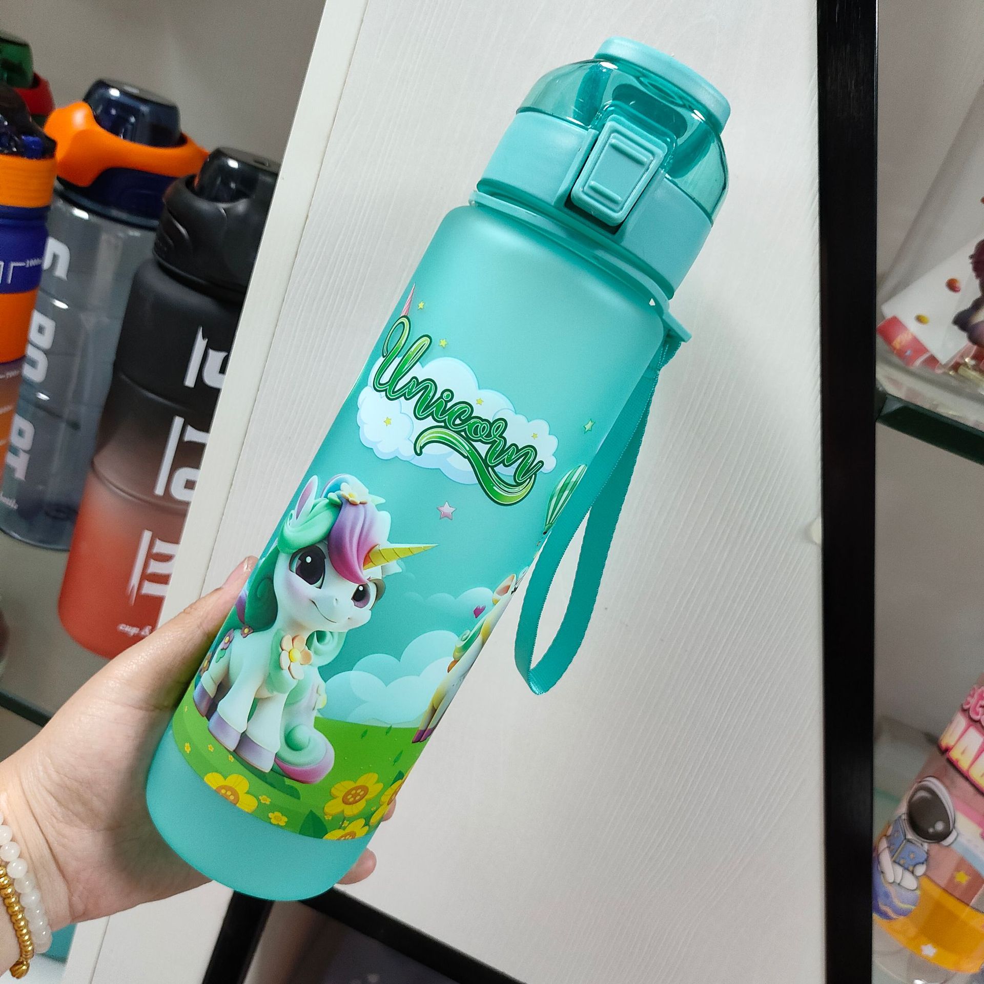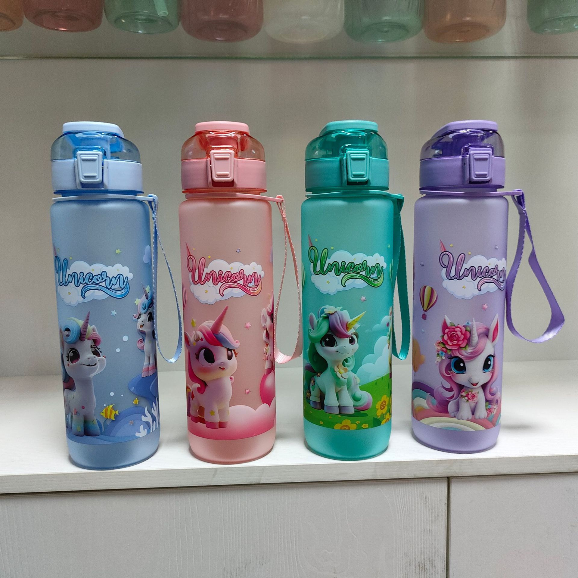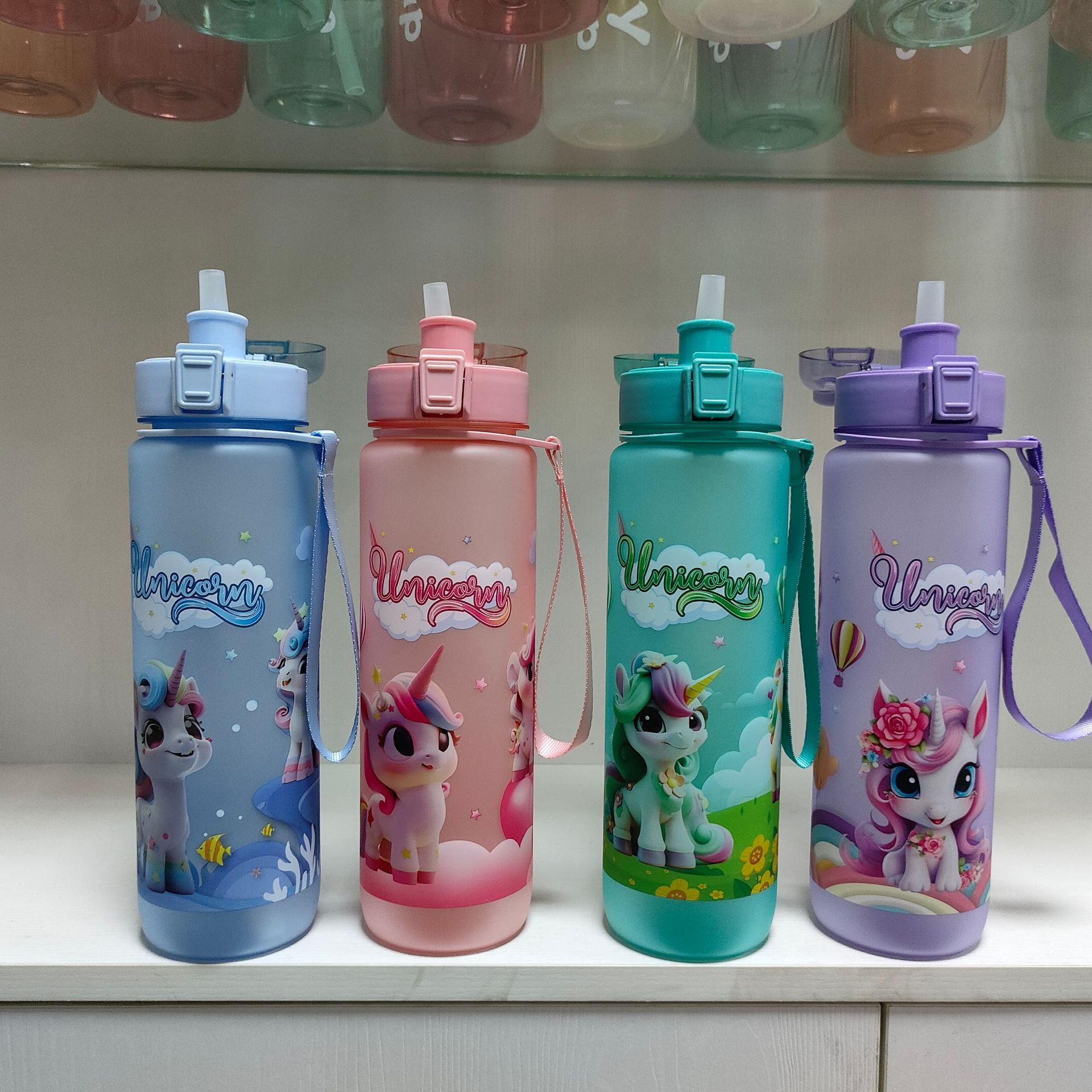 water bottle夏季新款塑料水杯磨砂独角兽学生可提绳户外水杯