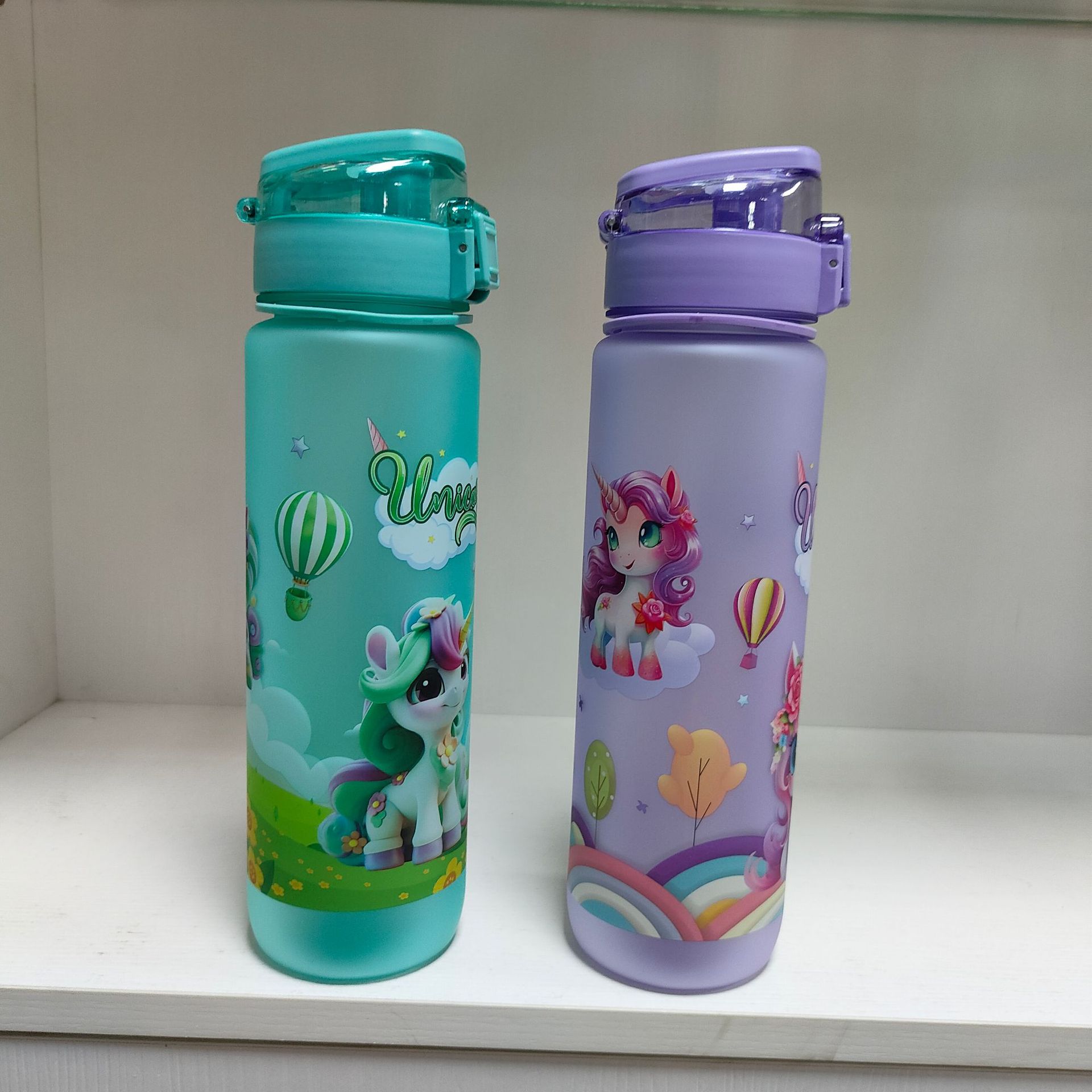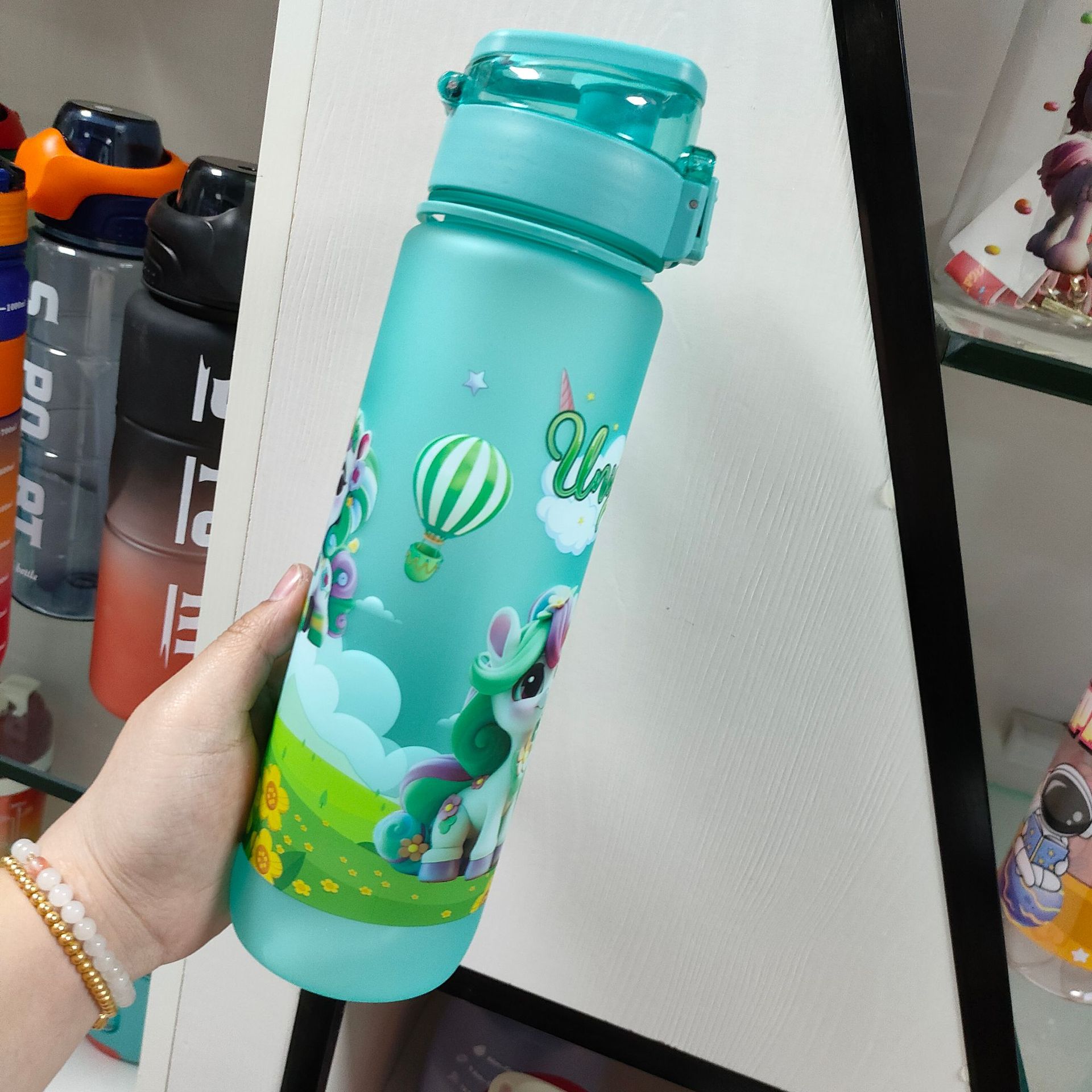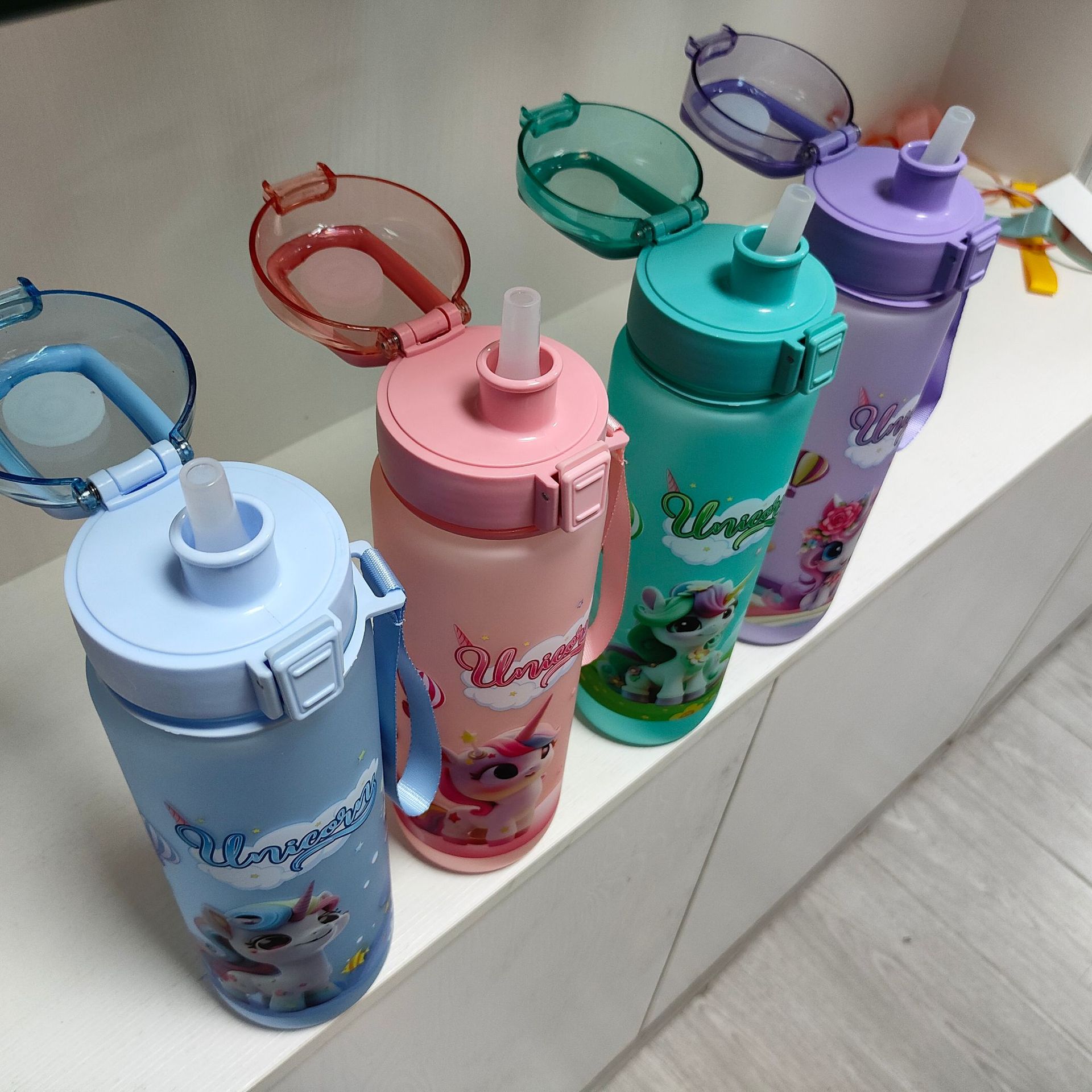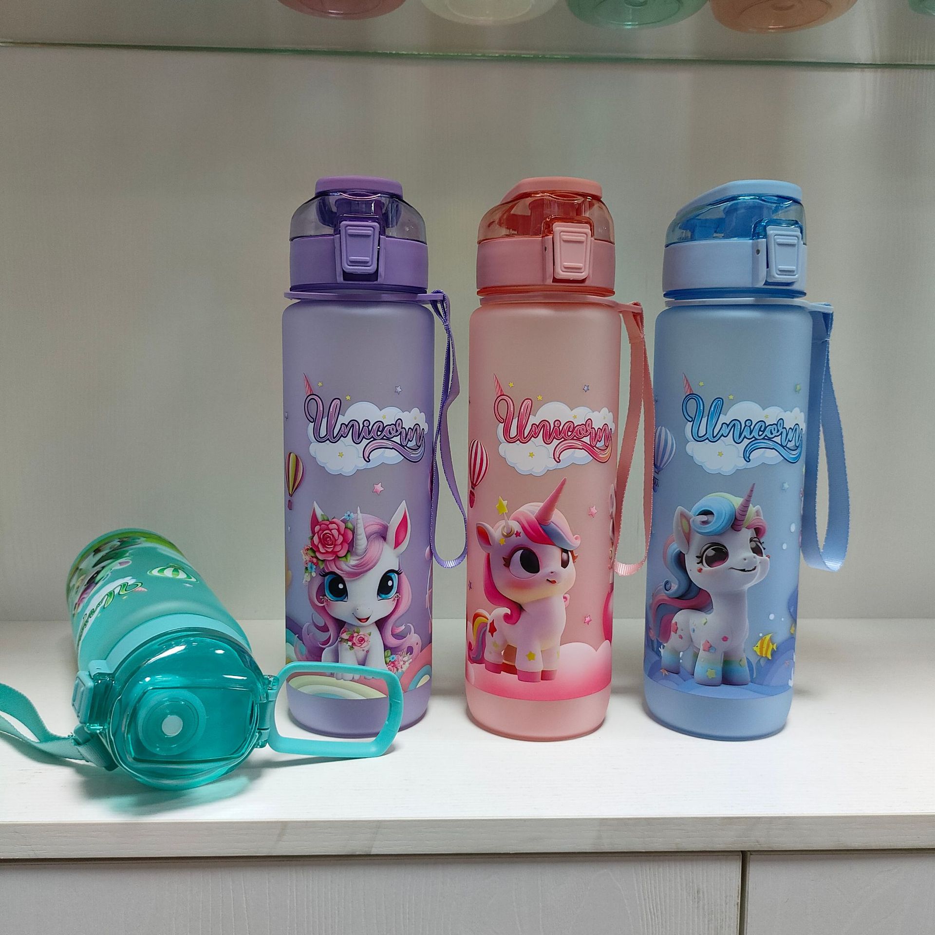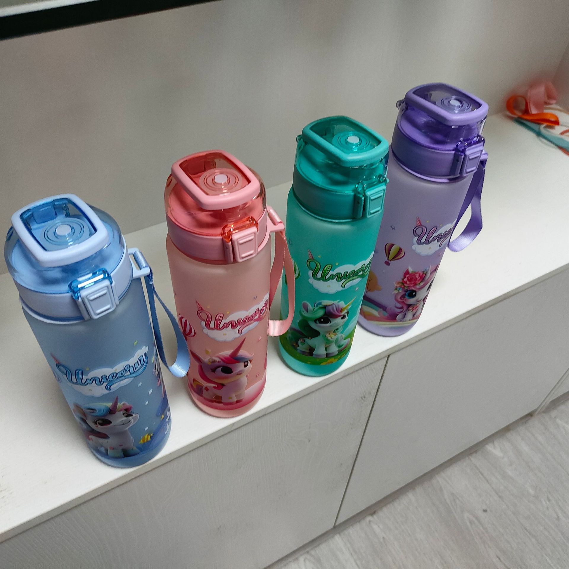 water bottle夏季新款塑料水杯磨砂独角兽学生可提绳户外水杯
