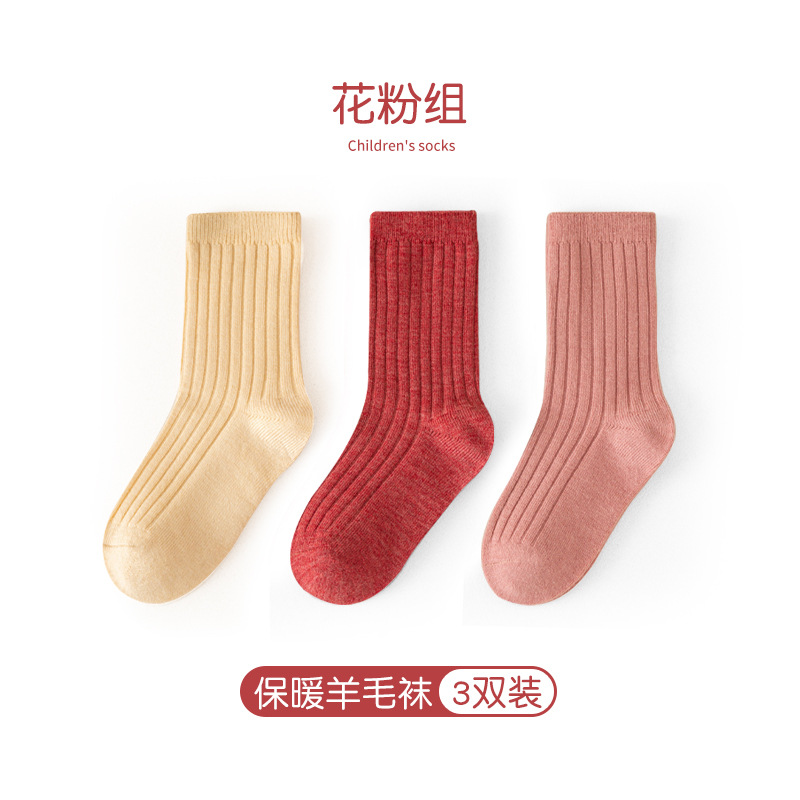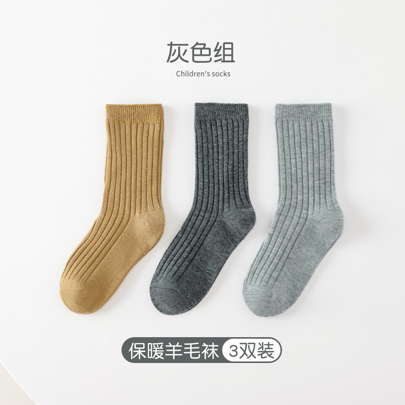 代发包邮双针儿童羊毛袜2024秋冬新款纯色儿童袜子男女宝宝羊毛袜