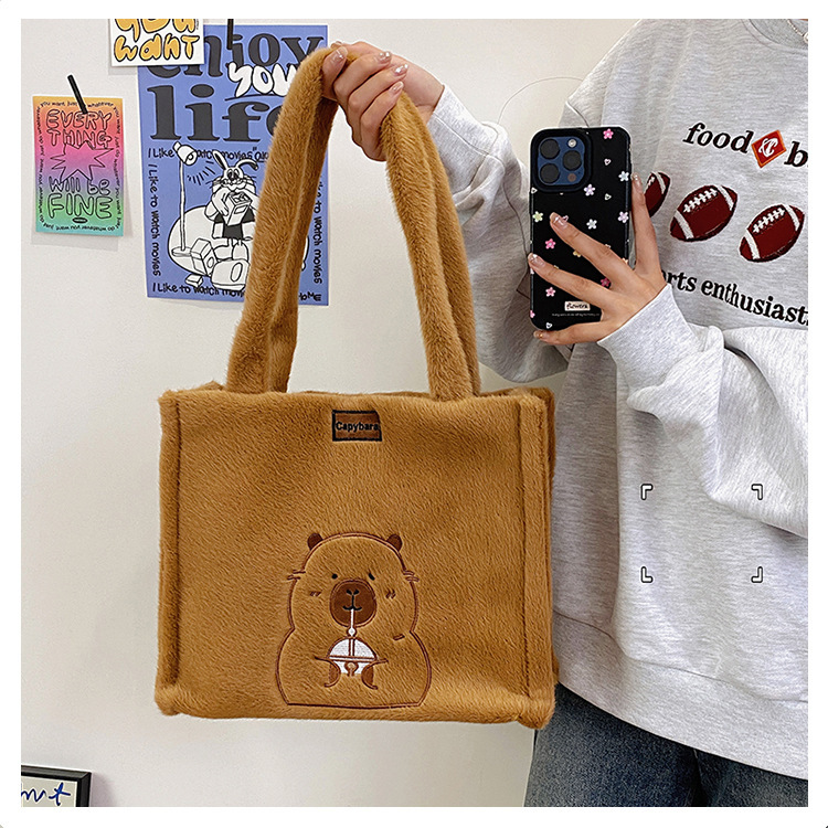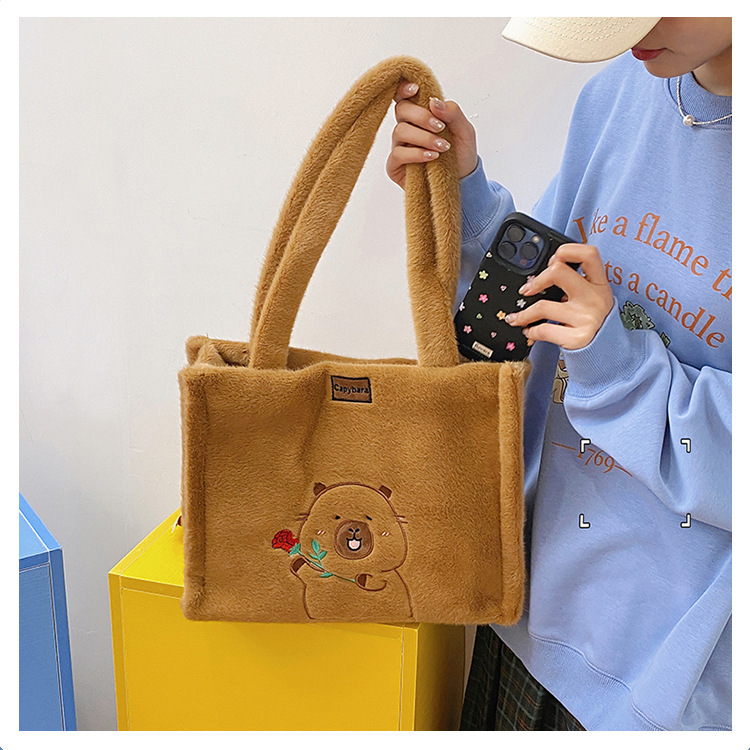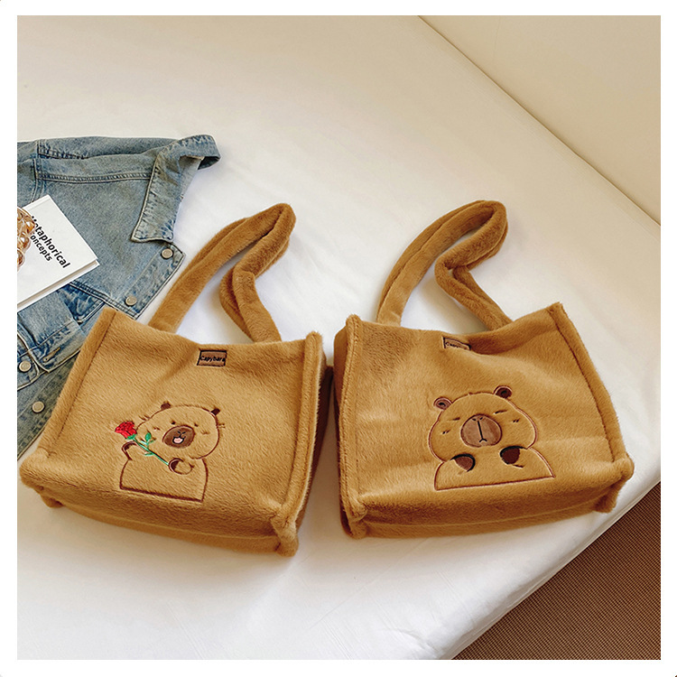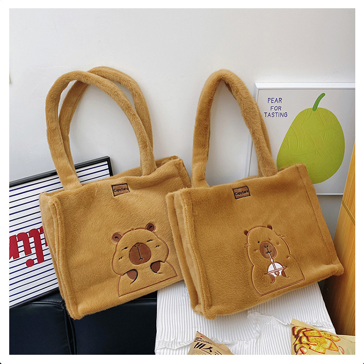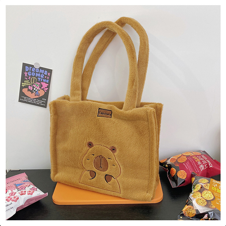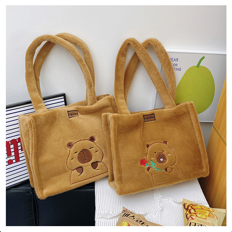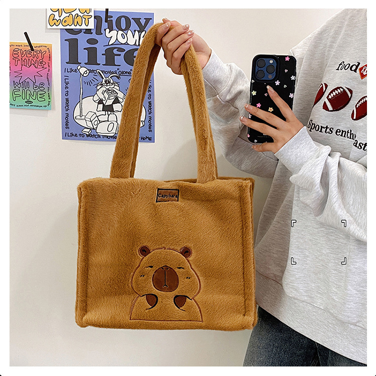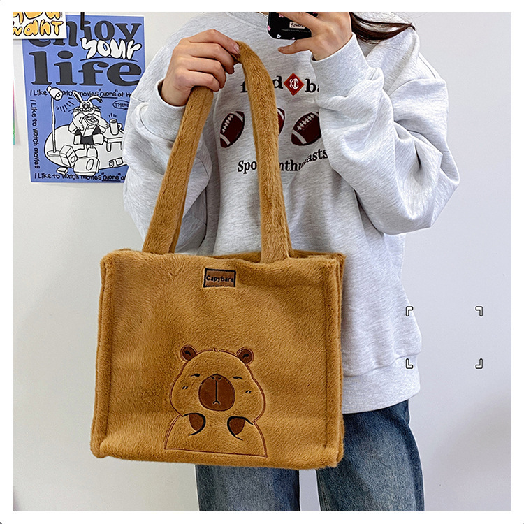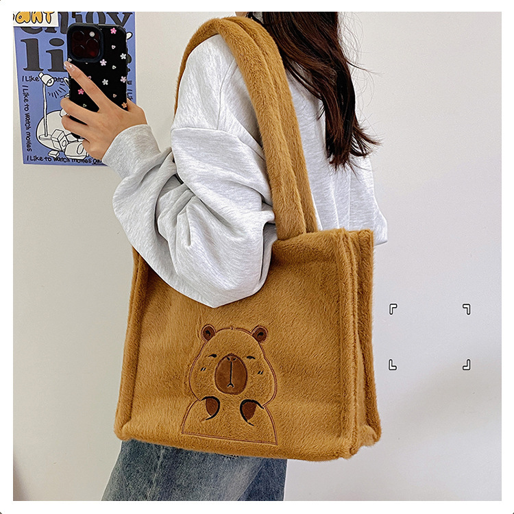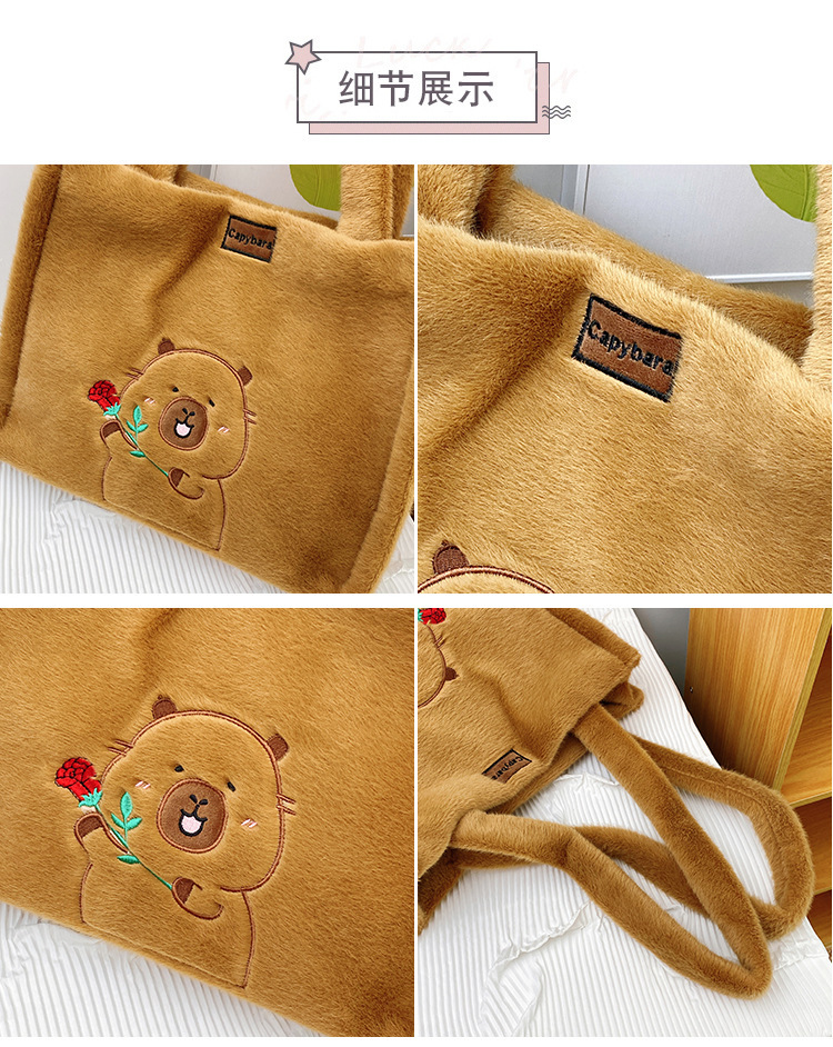 新款卡皮巴拉毛绒包呆萌水豚毛绒单肩包卡通公仔包毛绒托特包