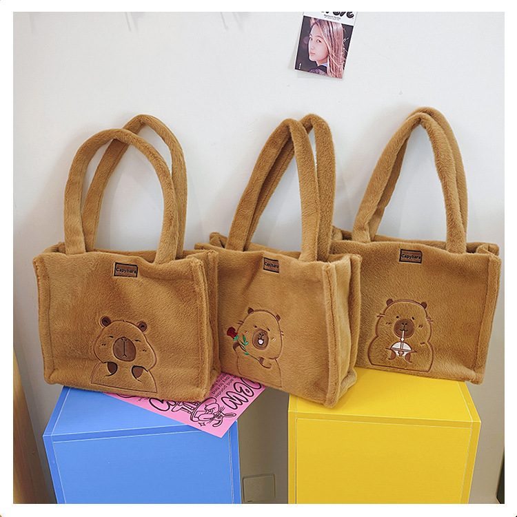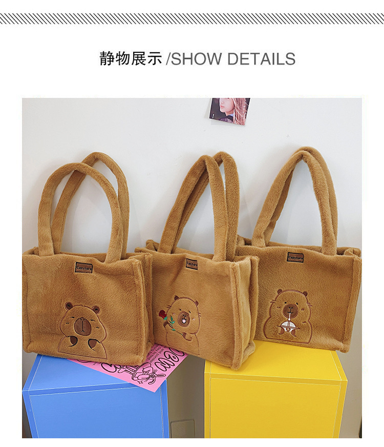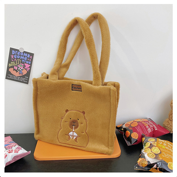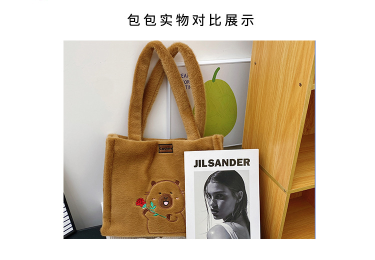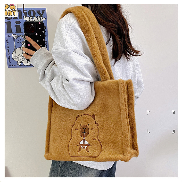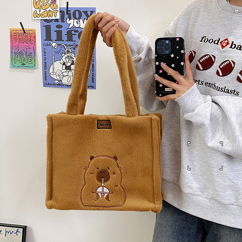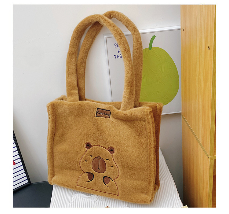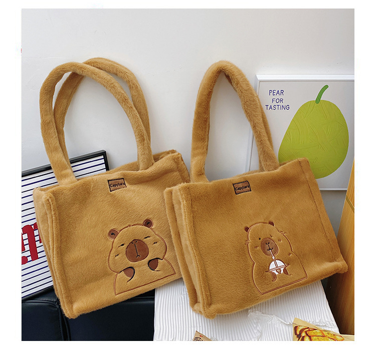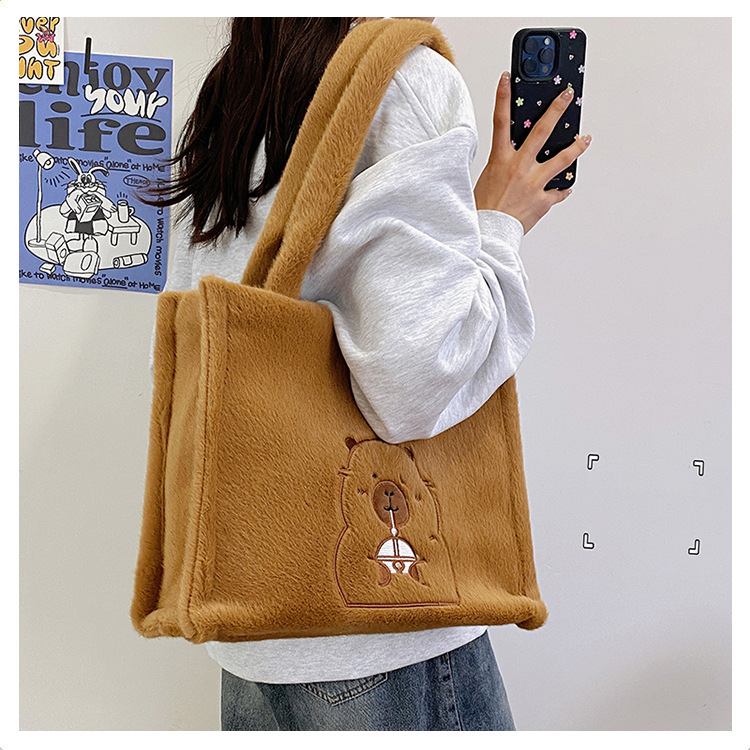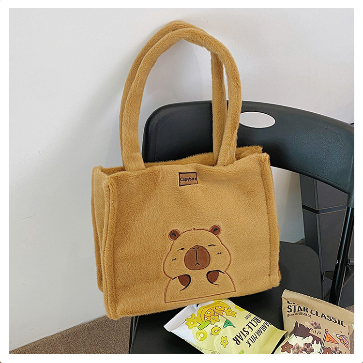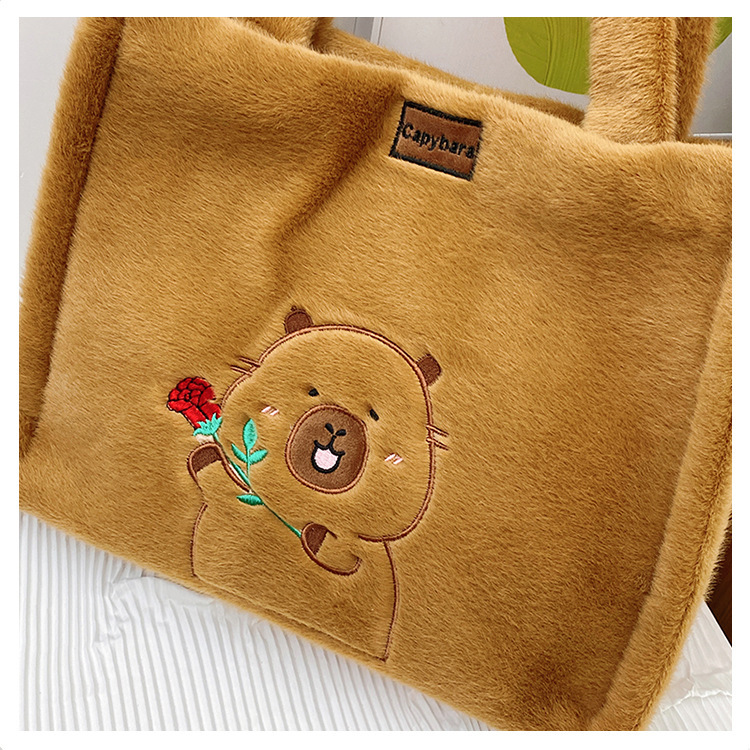新款卡皮巴拉毛绒包呆萌水豚毛绒单肩包卡通公仔包毛绒托特包