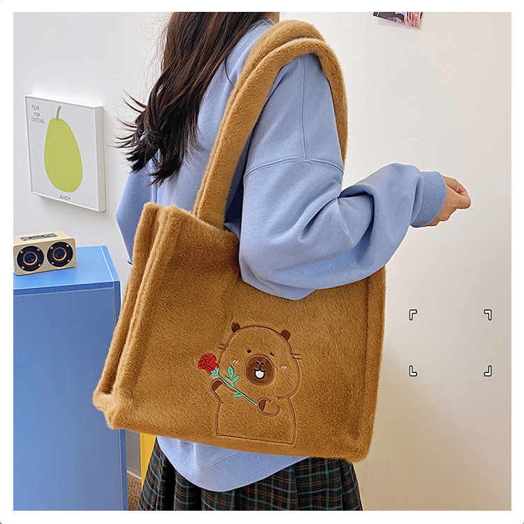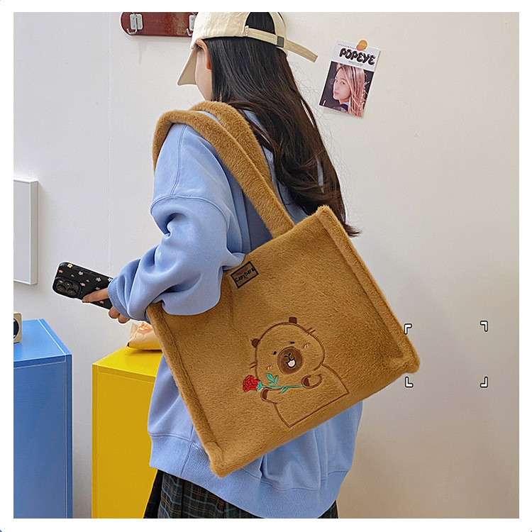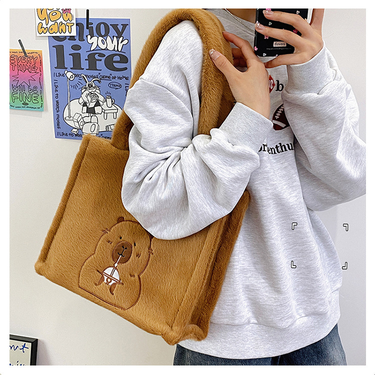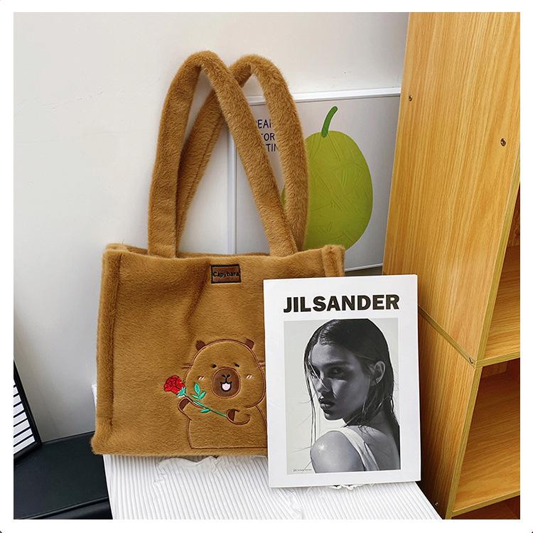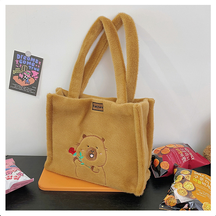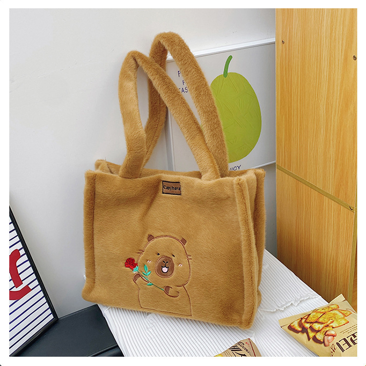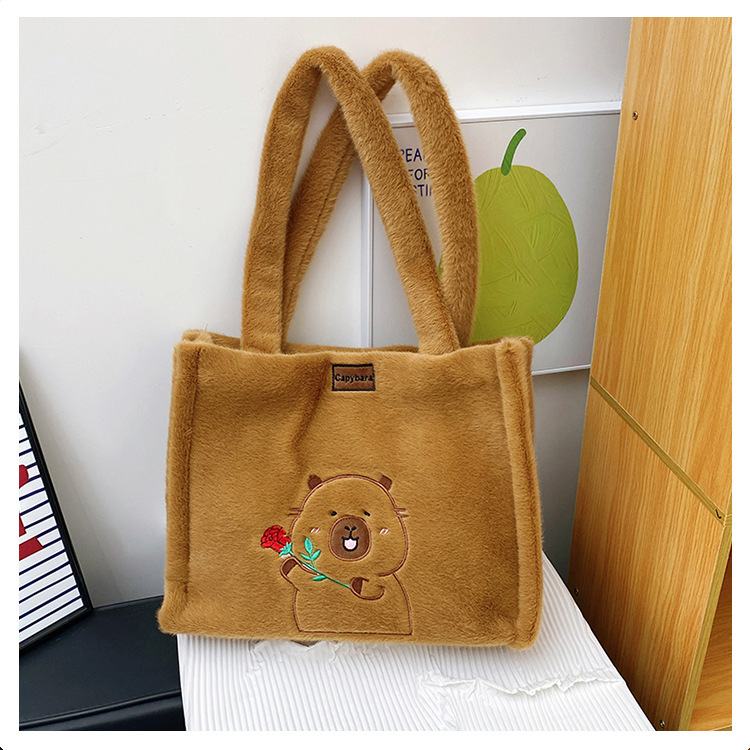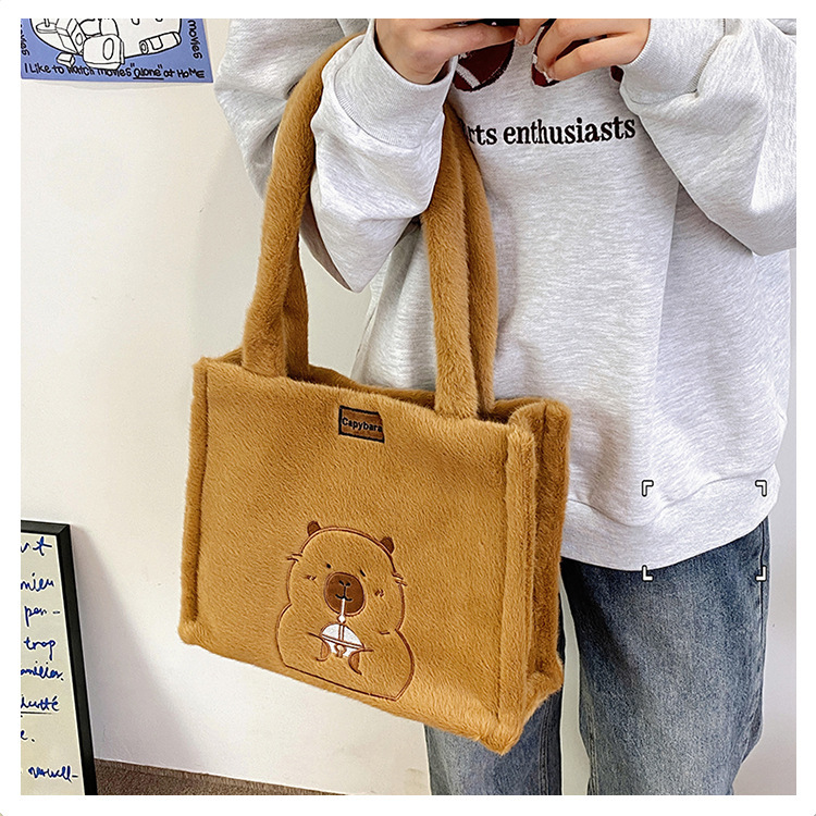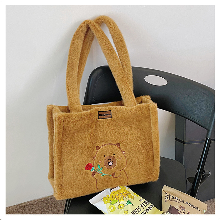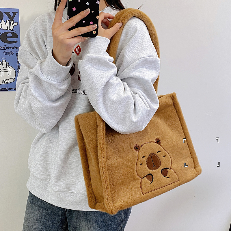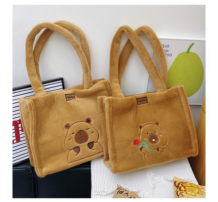 新款卡皮巴拉毛绒包呆萌水豚毛绒单肩包卡通公仔包毛绒托特包
