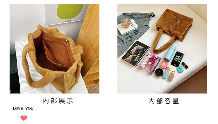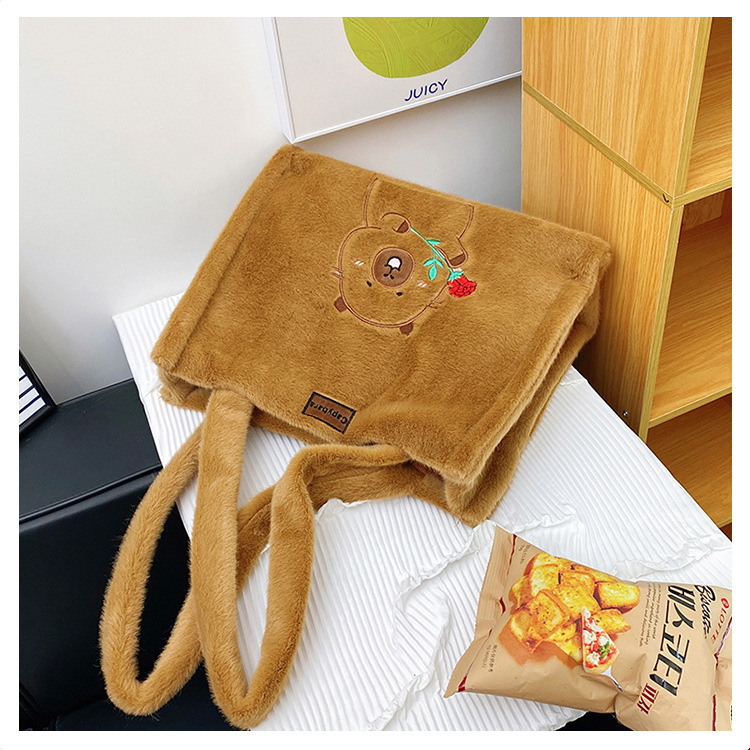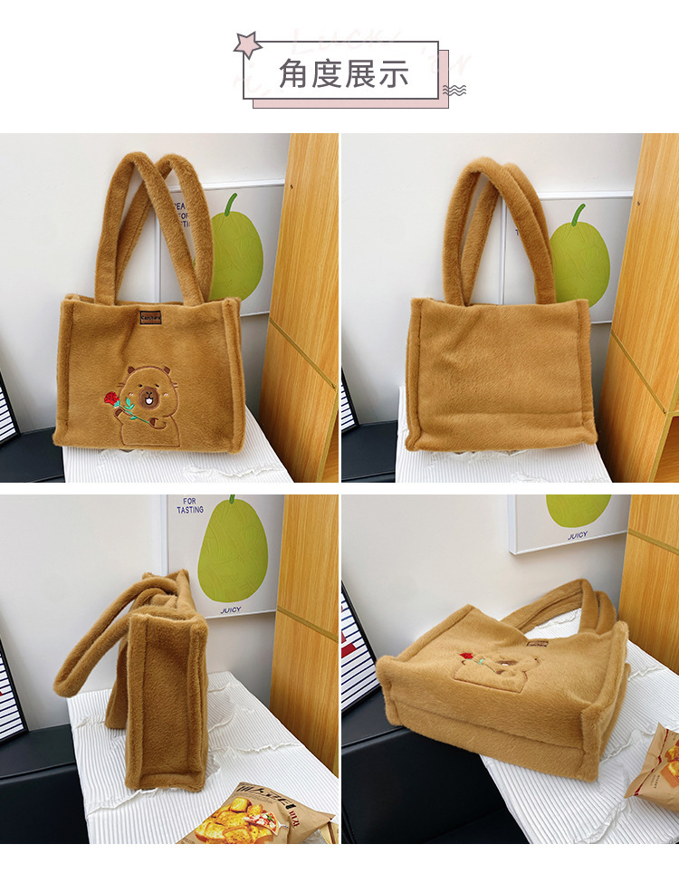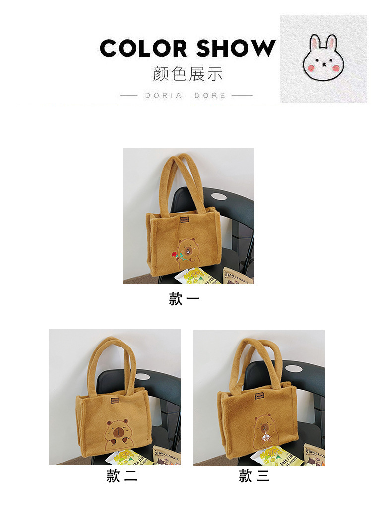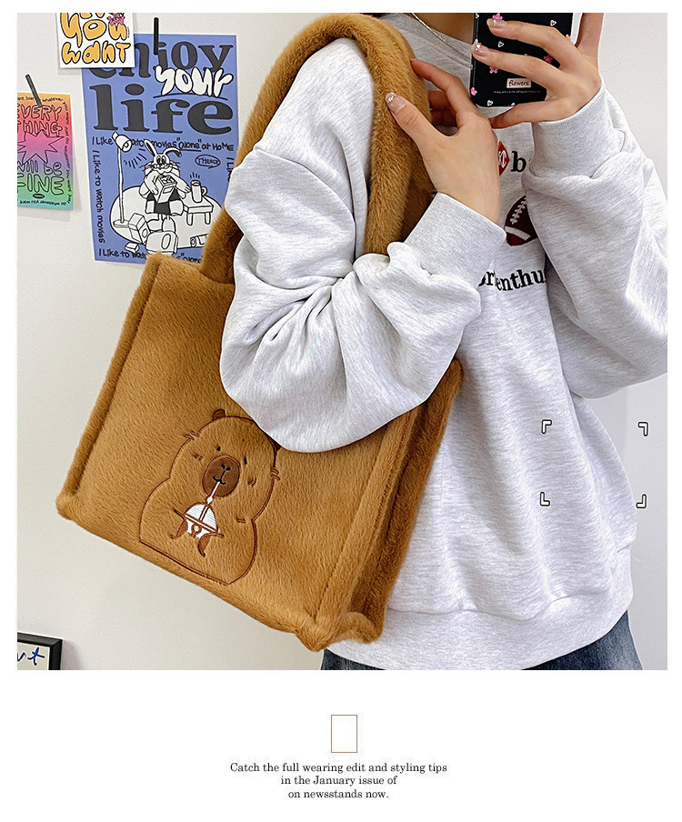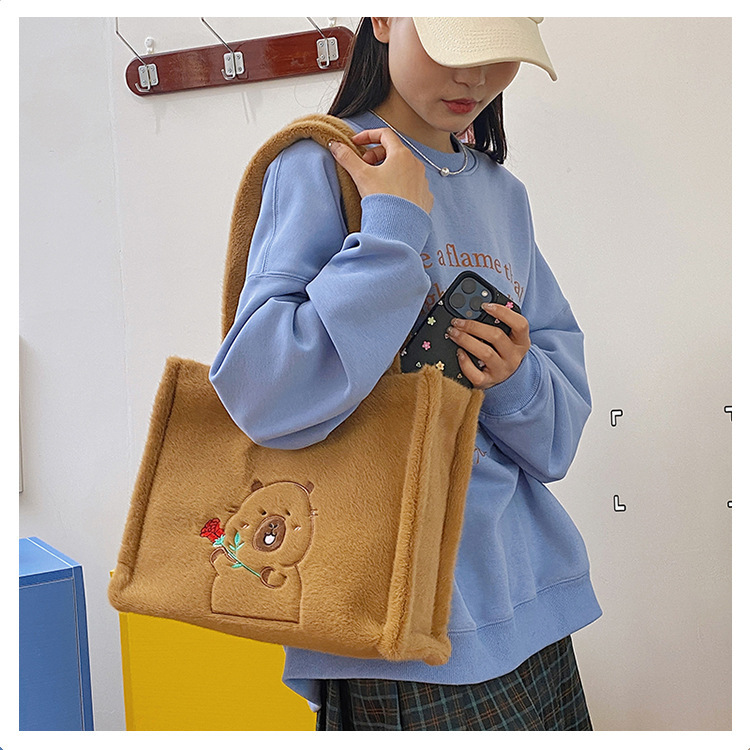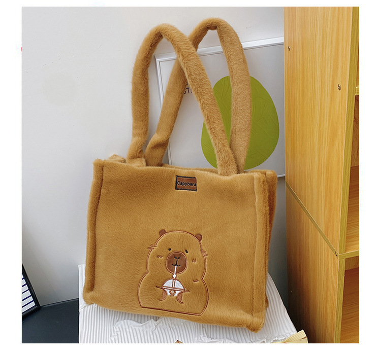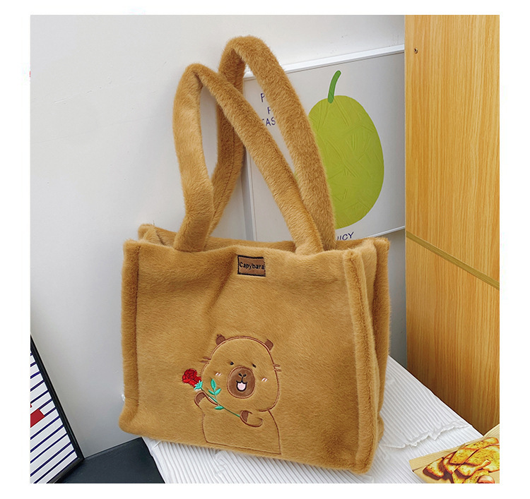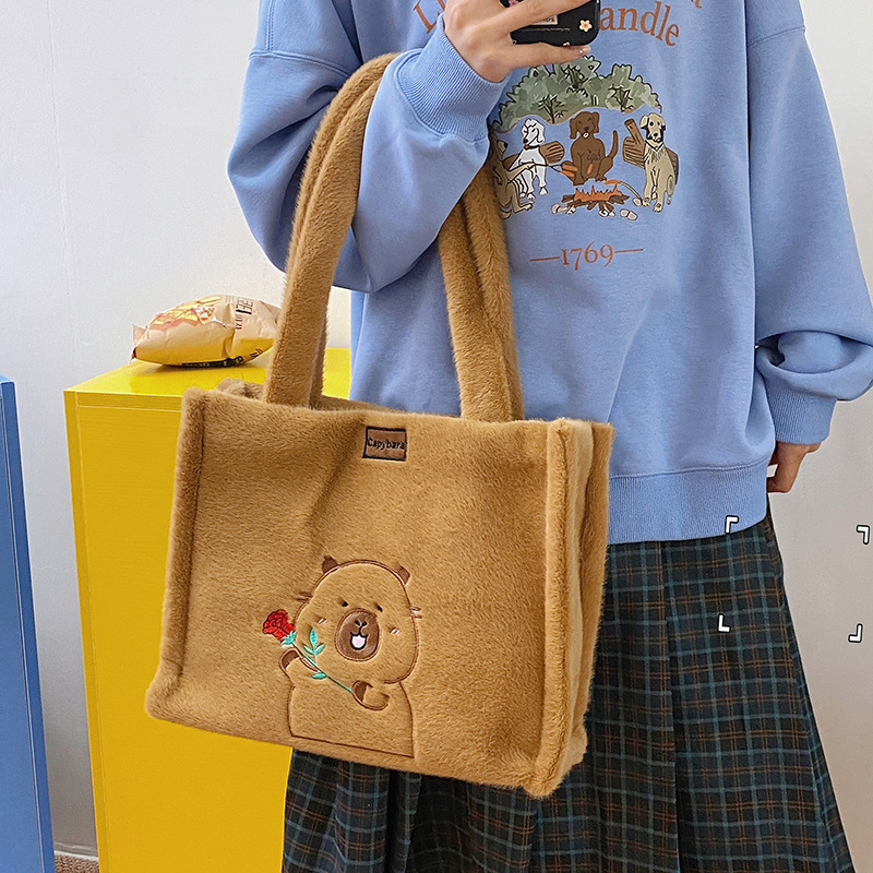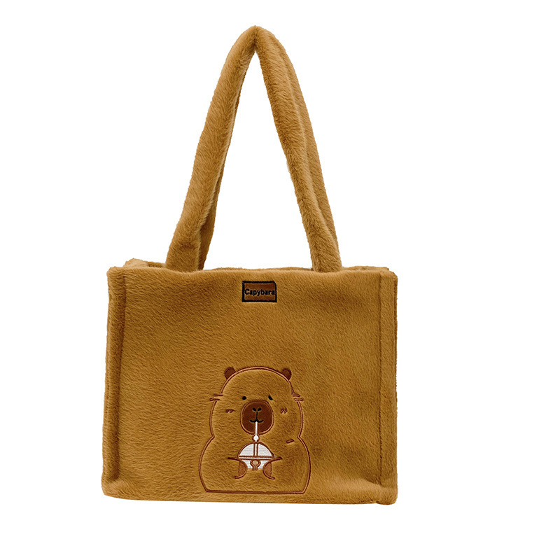 新款卡皮巴拉毛绒包呆萌水豚毛绒单肩包卡通公仔包毛绒托特包