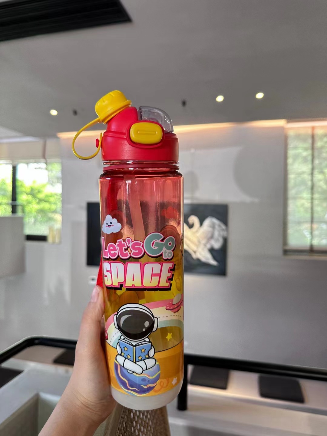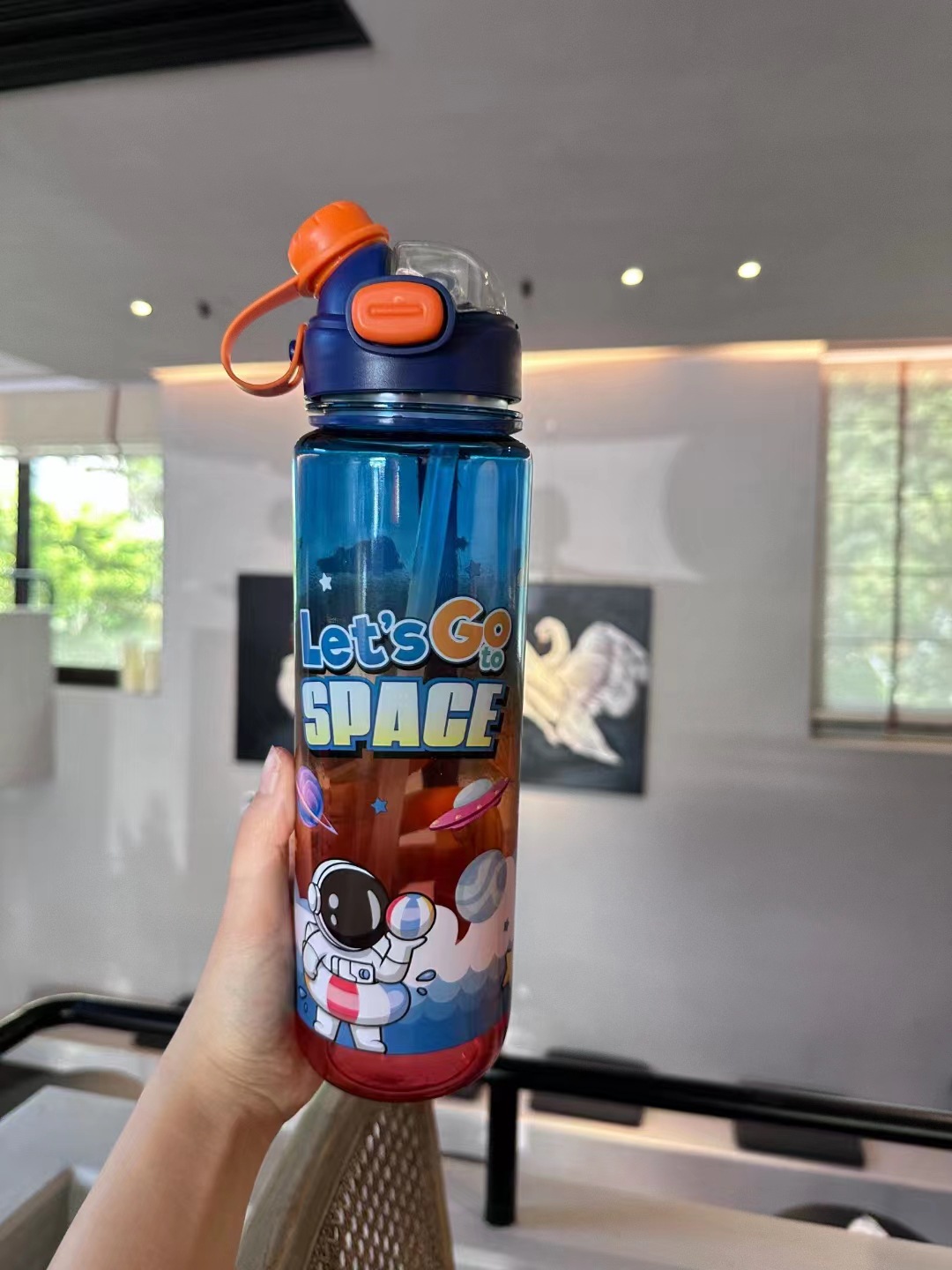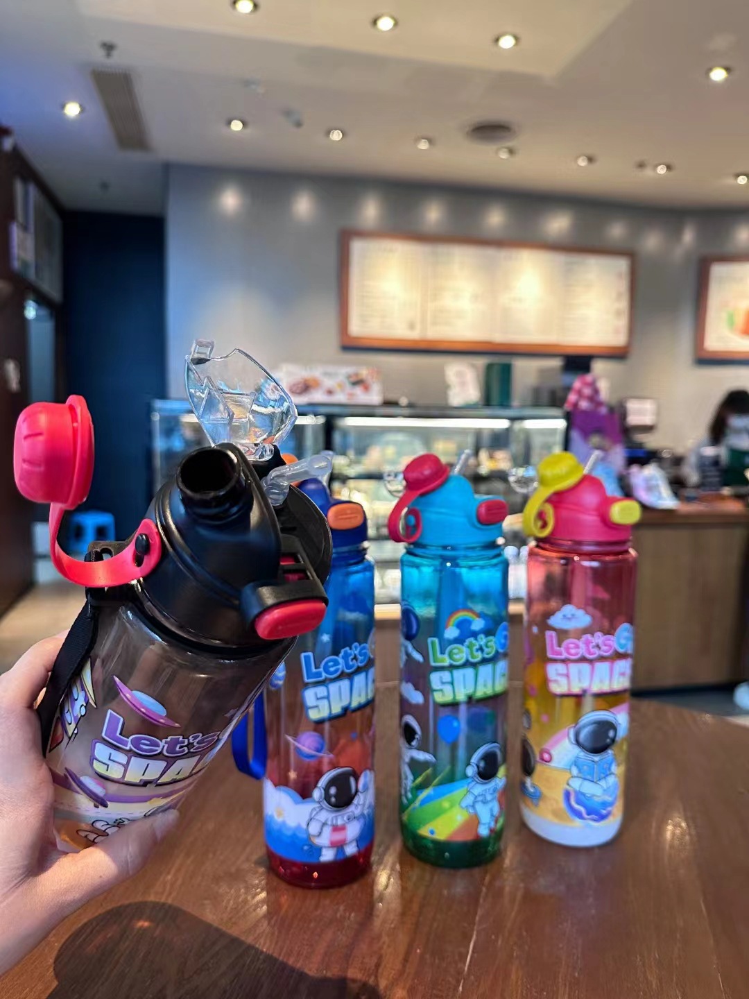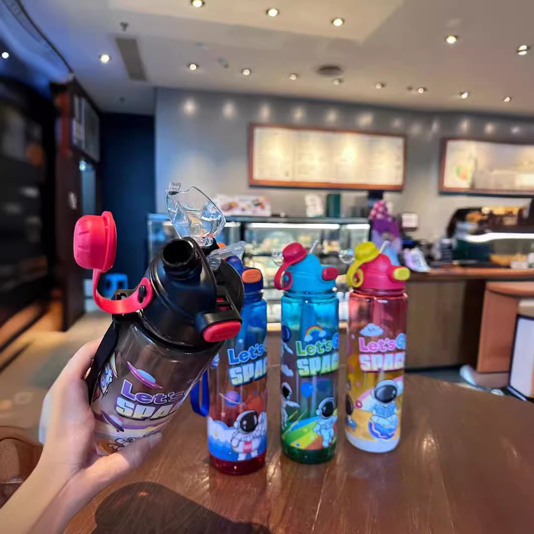 简约炫彩旋转盖双饮吸管塑料杯运动健身学生水杯太空杯户外便携