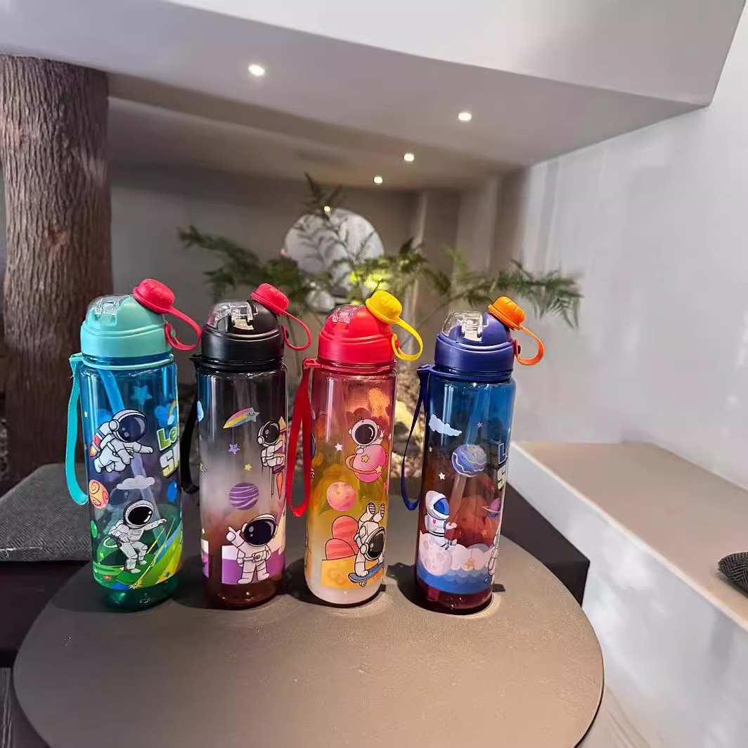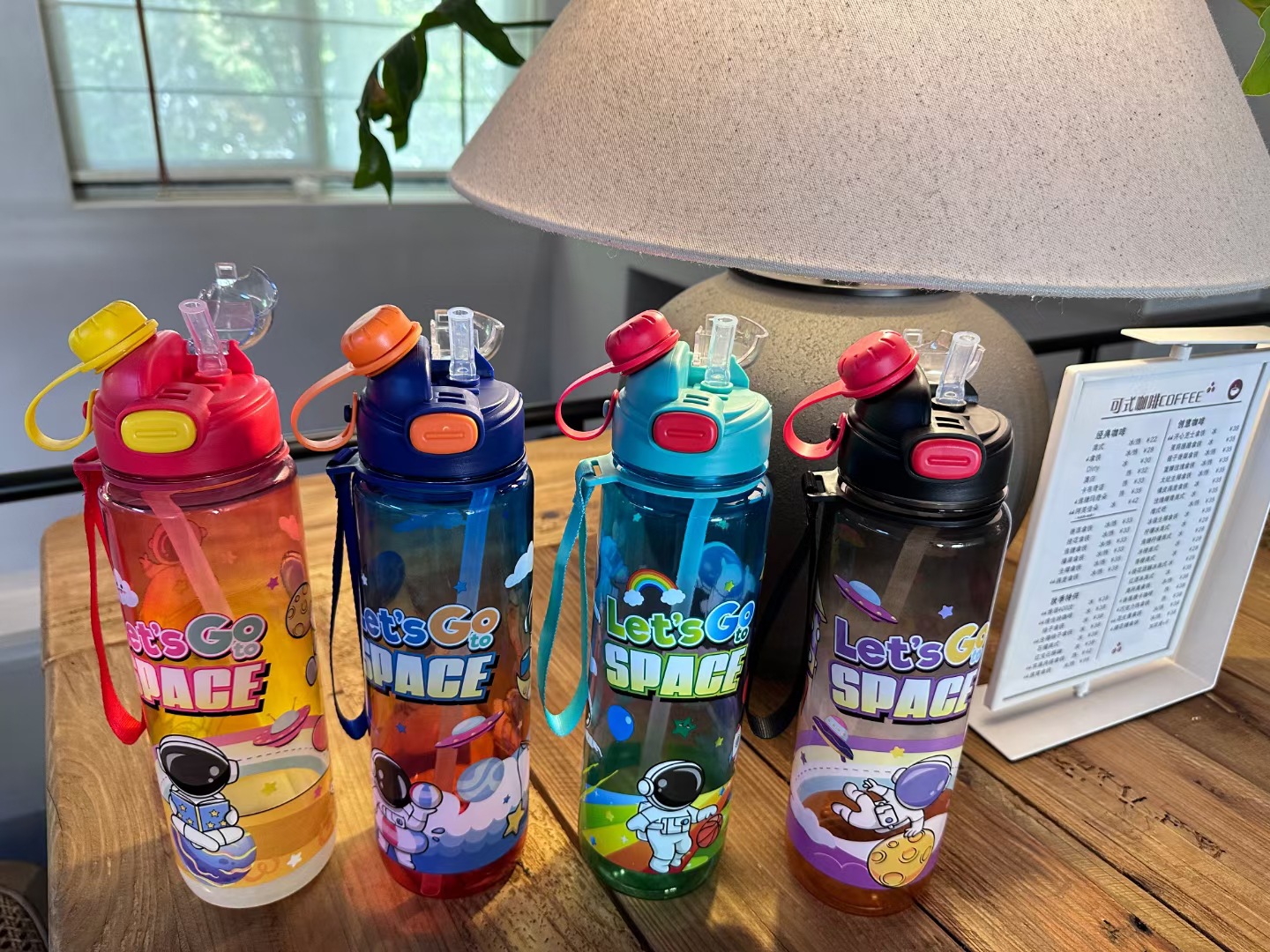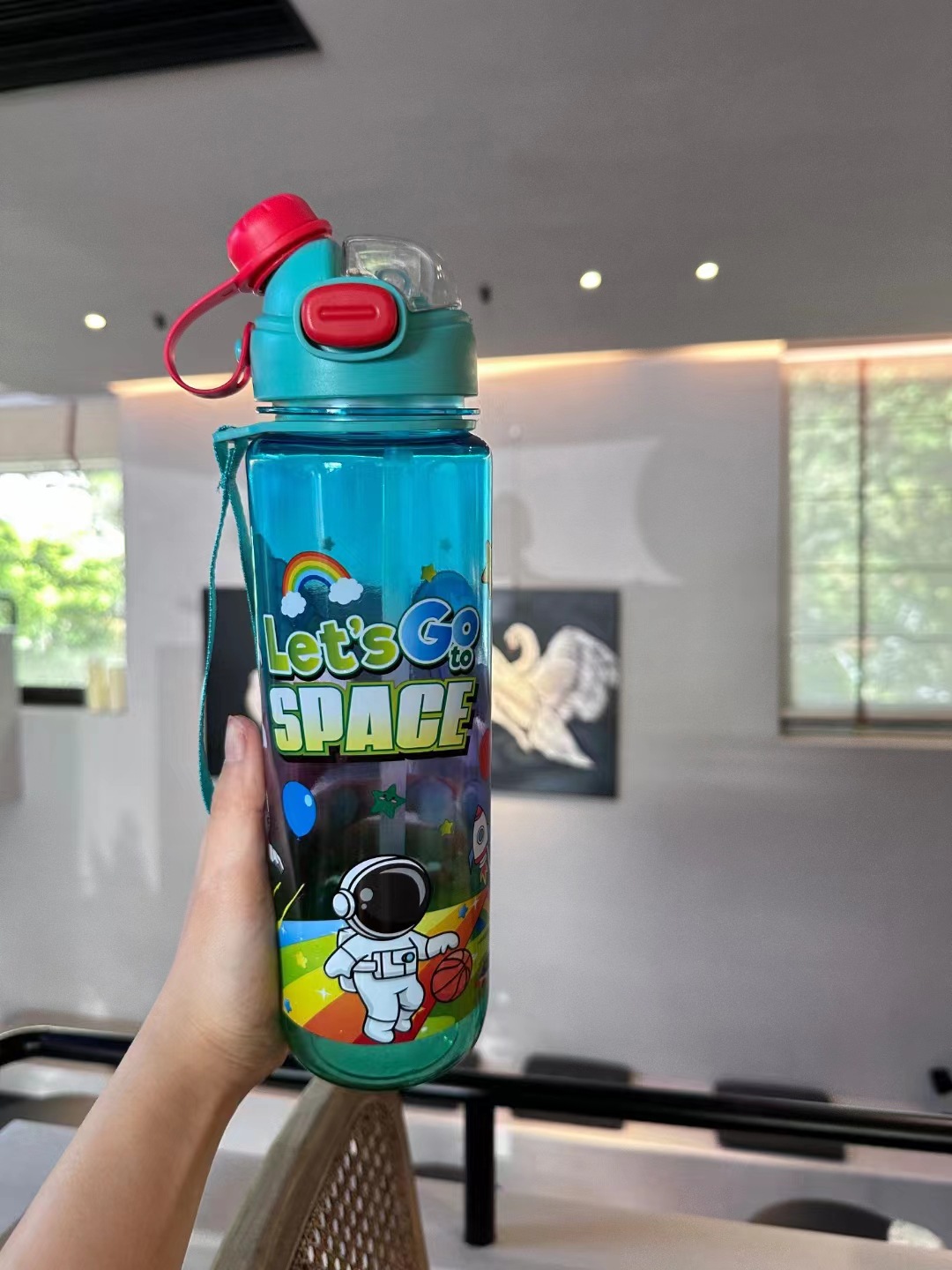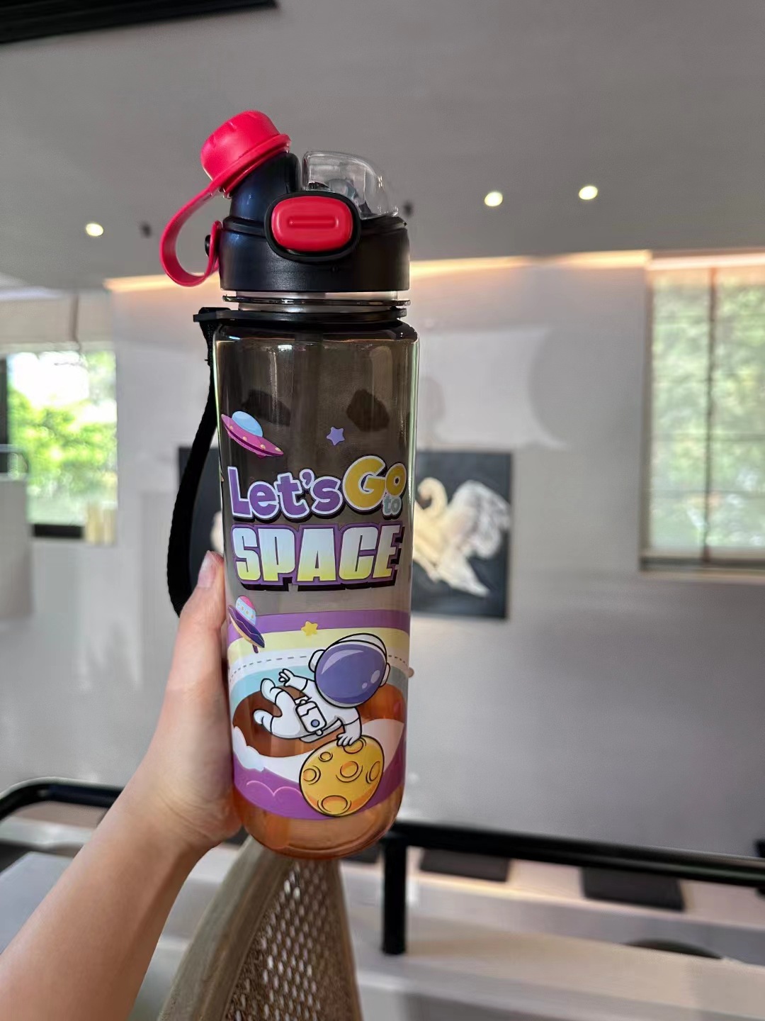简约炫彩旋转盖双饮吸管塑料杯运动健身学生水杯太空杯户外便携