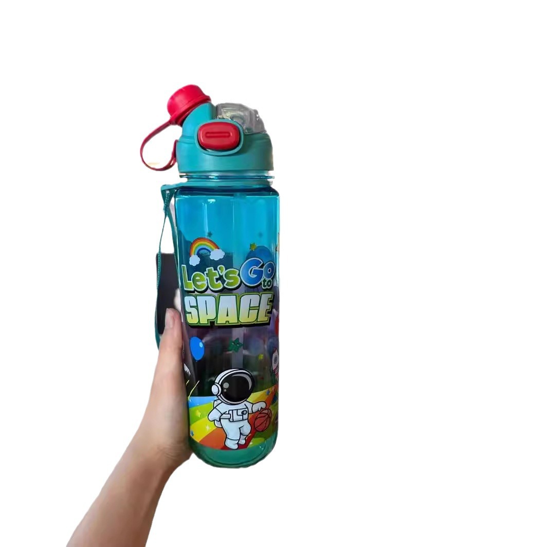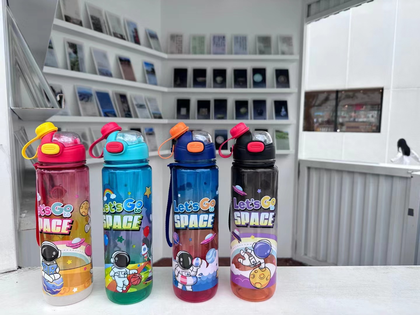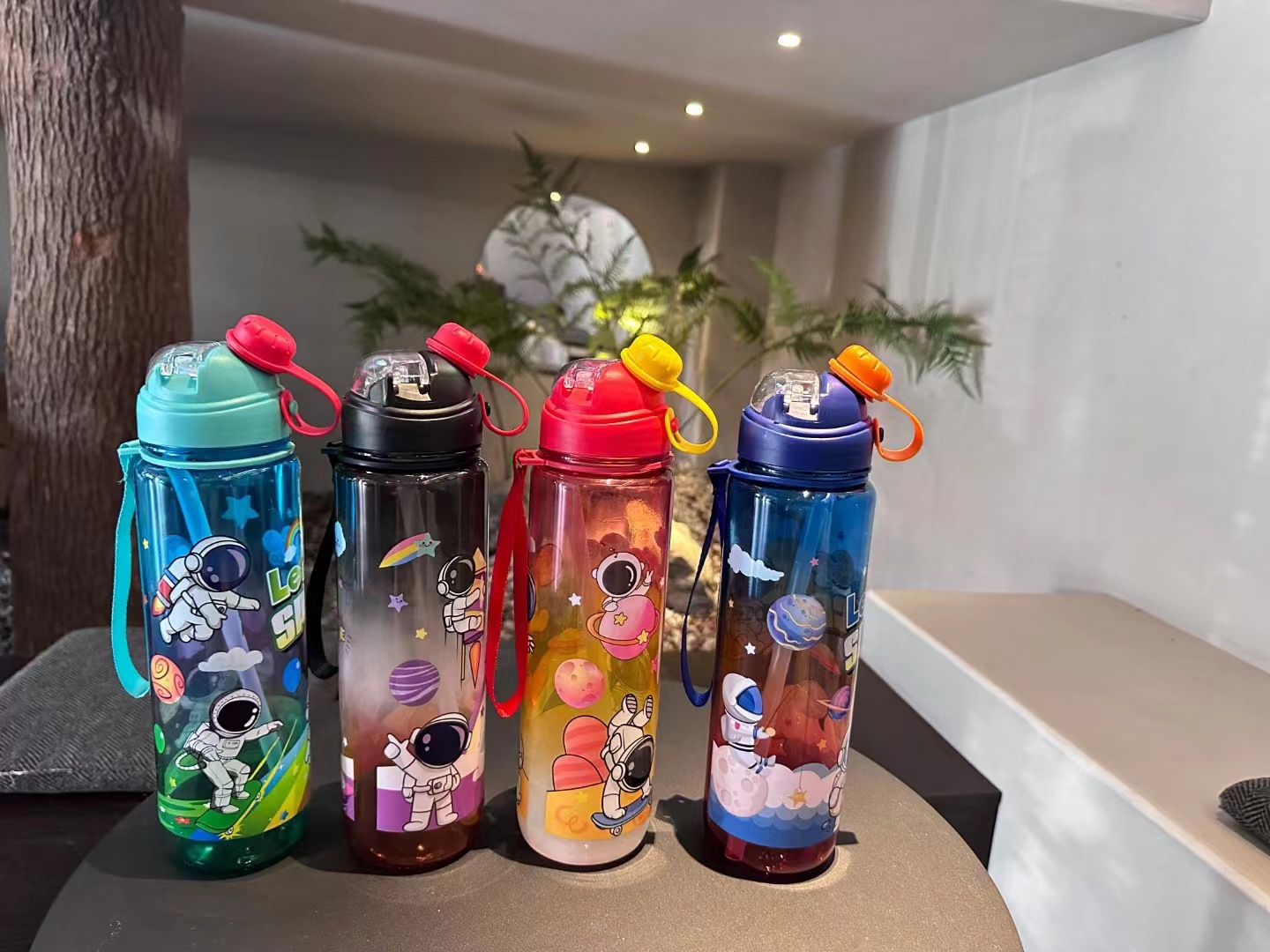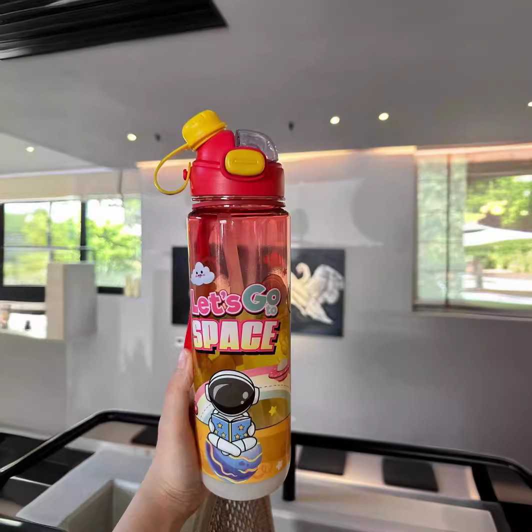 简约炫彩旋转盖双饮吸管塑料杯运动健身学生水杯太空杯户外便携