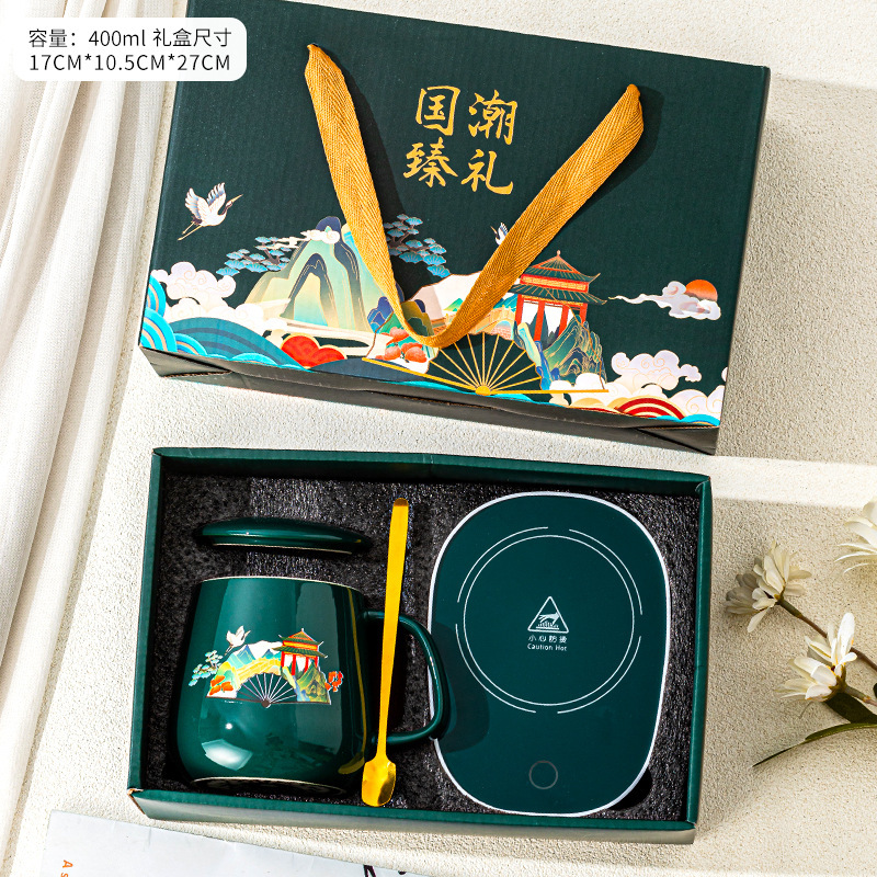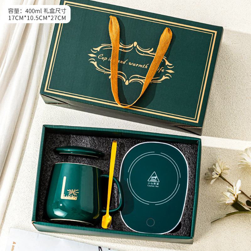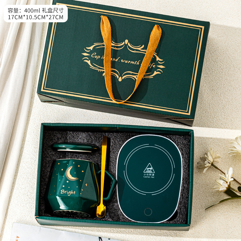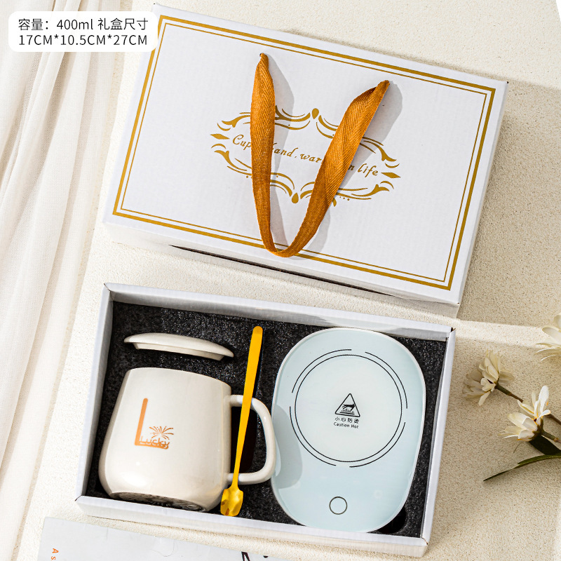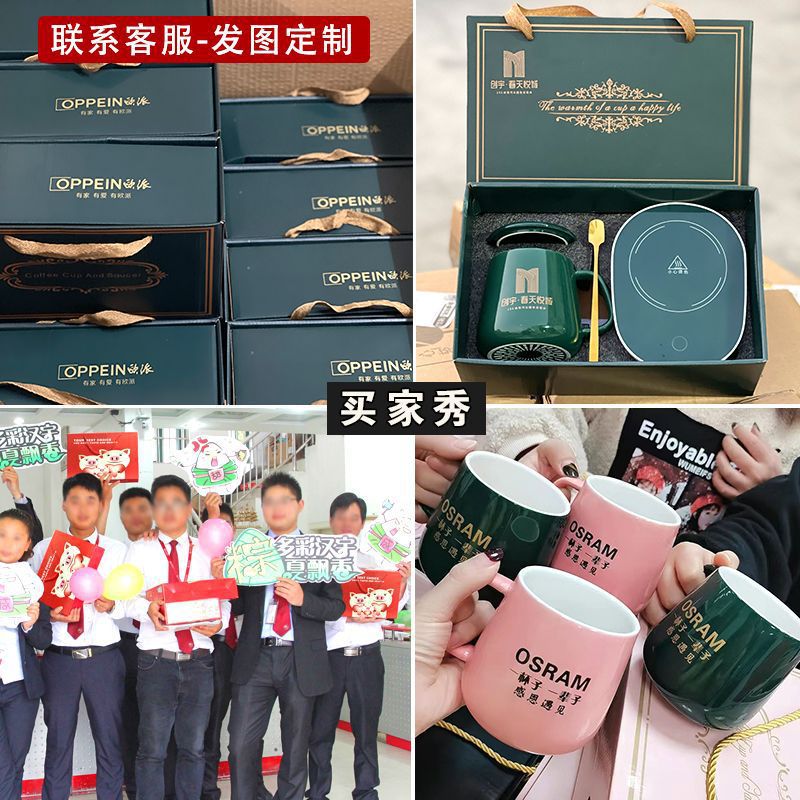 55度恒温杯暖暖杯加热垫钻石陶瓷咖啡马克杯子活动伴手礼品印logo