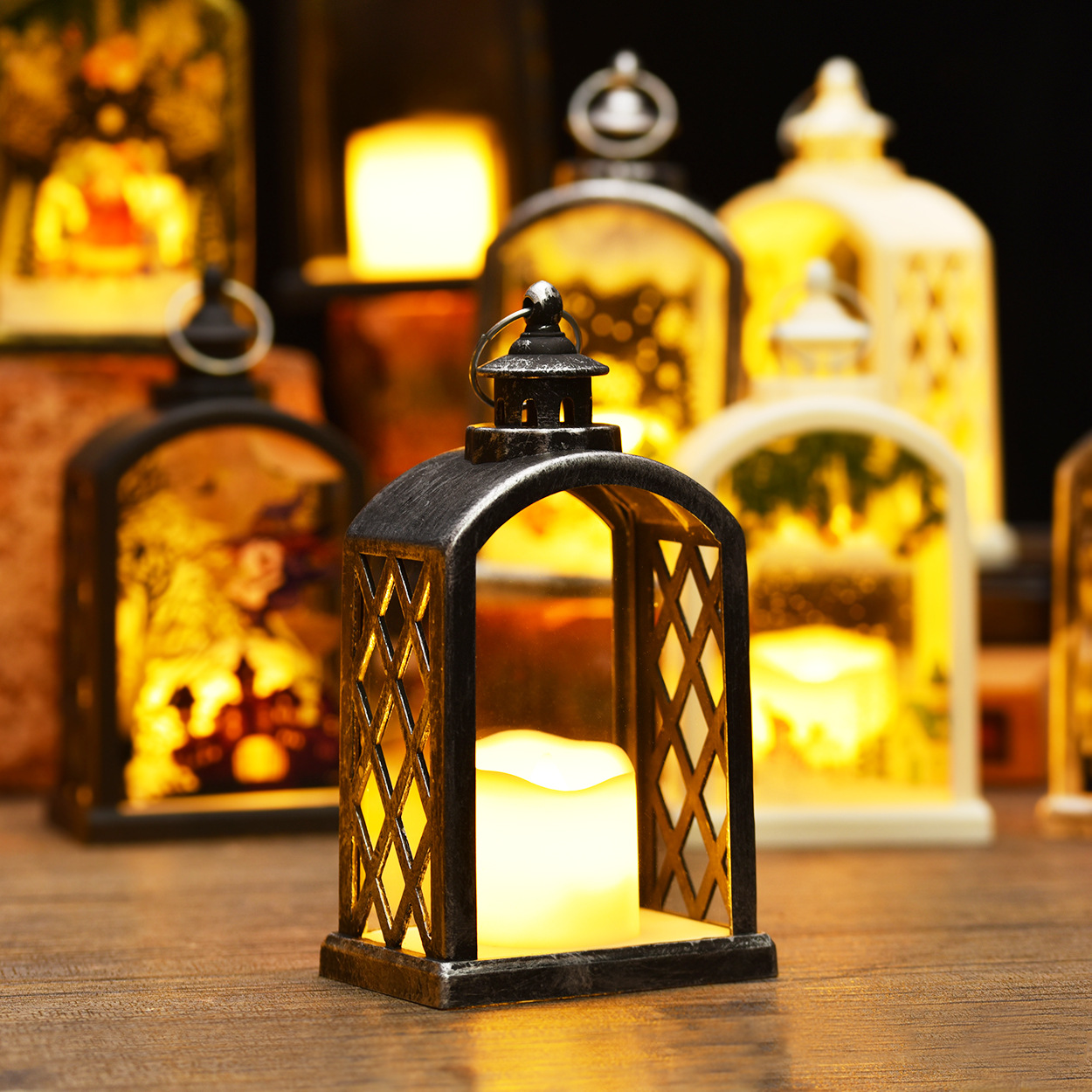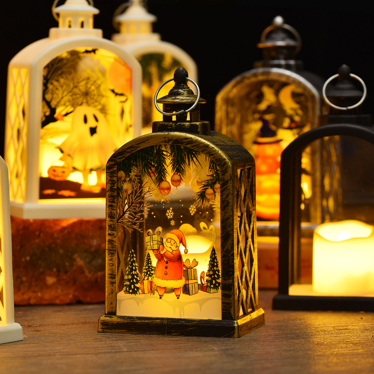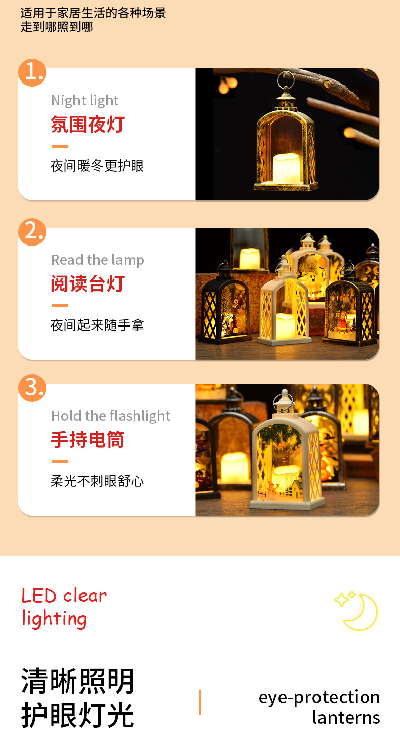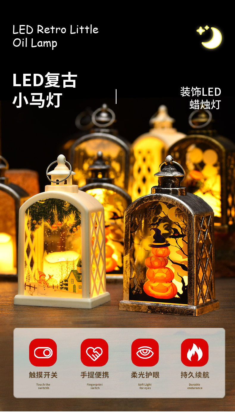 圣诞装饰品风灯跨境小夜灯生日派对小礼物万圣节蜡烛灯创意摆件