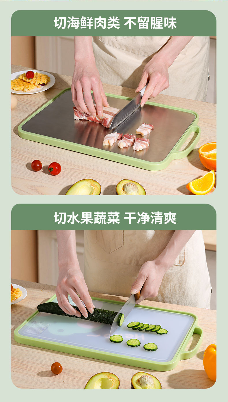 多功能304不锈钢双面菜板厨房案板 家用揉面板防霉塑料防滑水果板