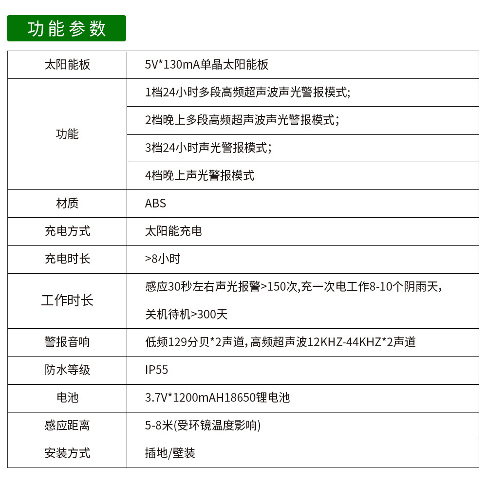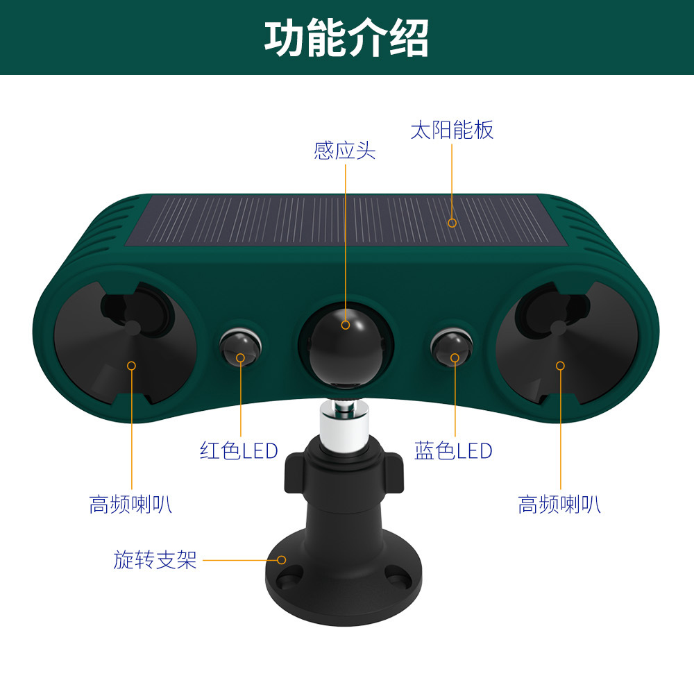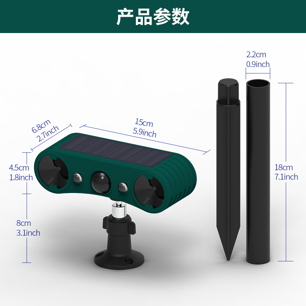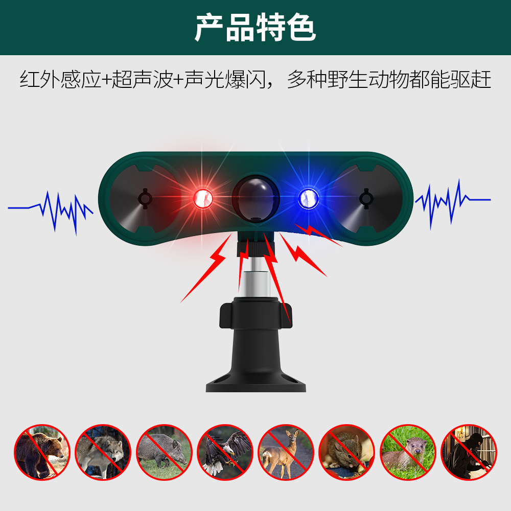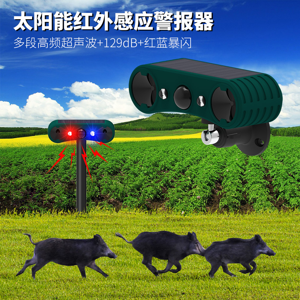 跨境太阳能驱鼠器超声波驱赶器赶野猪安防警报灯农场防小偷神器