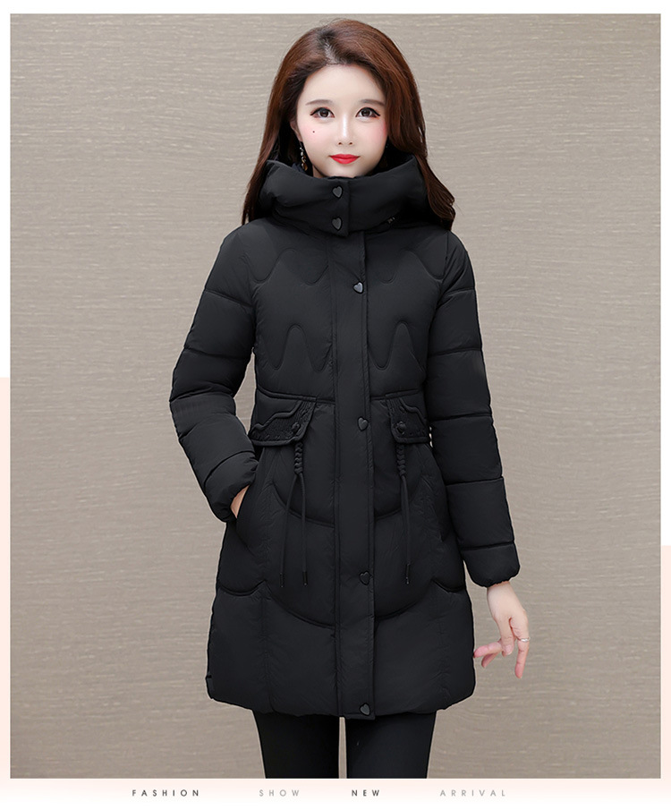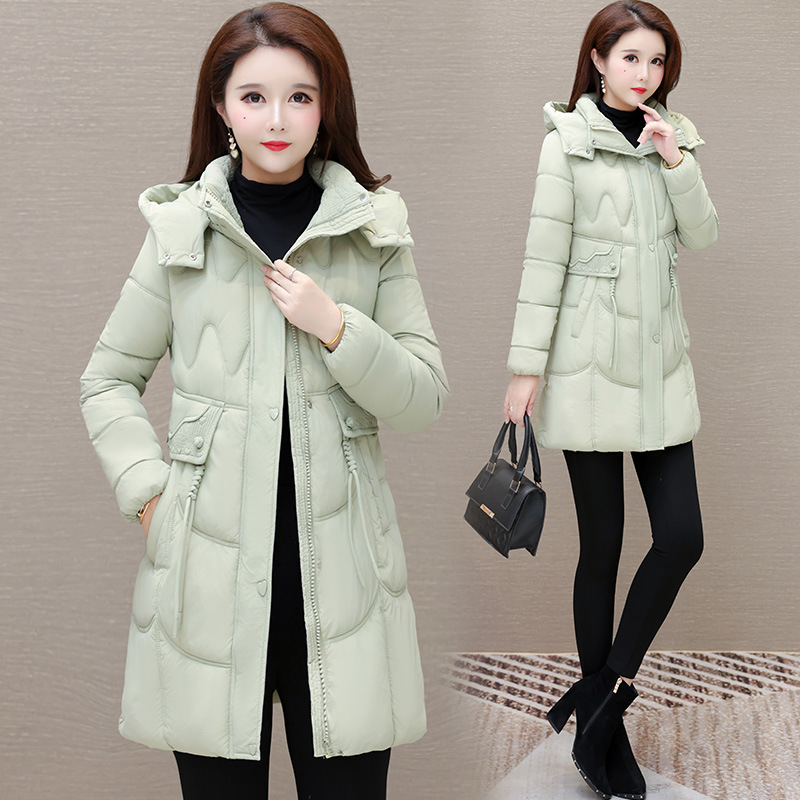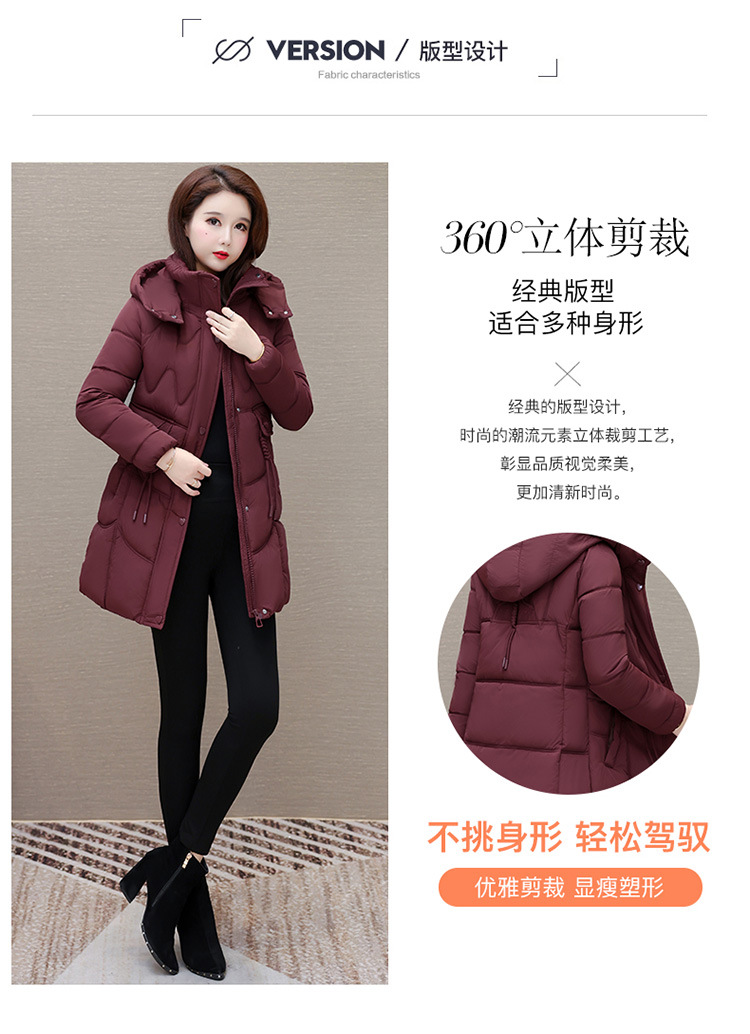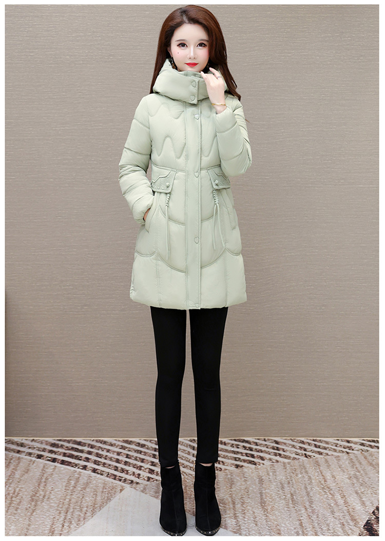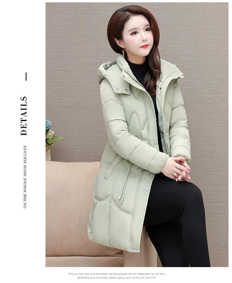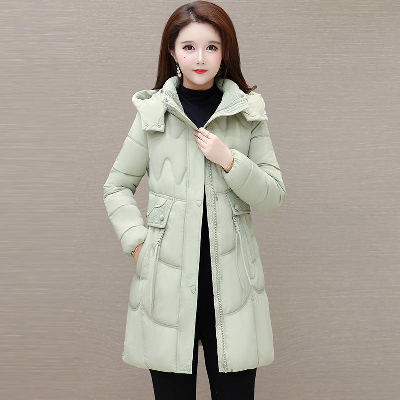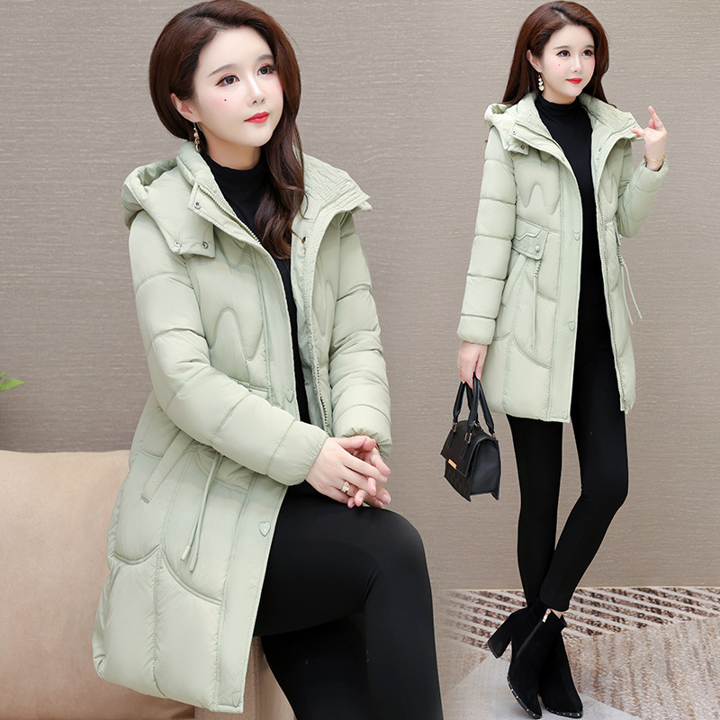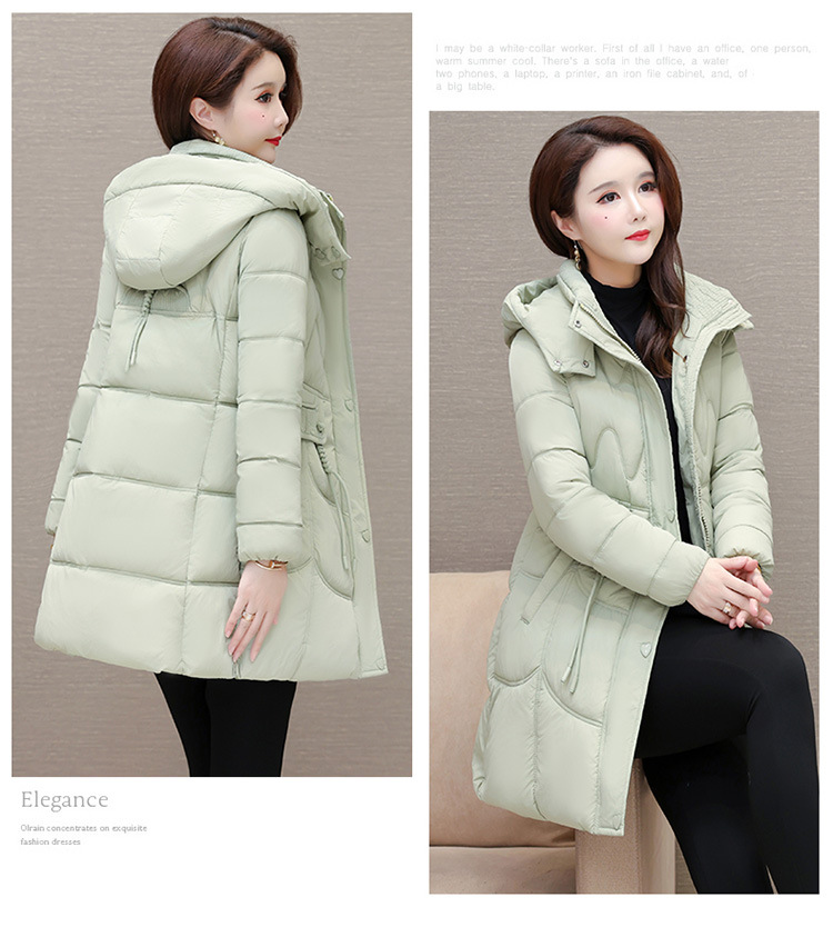 轻薄中长款羽绒棉服女2024秋冬新款洋气时尚连帽修身保暖棉衣外套