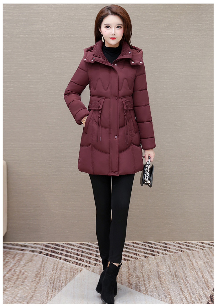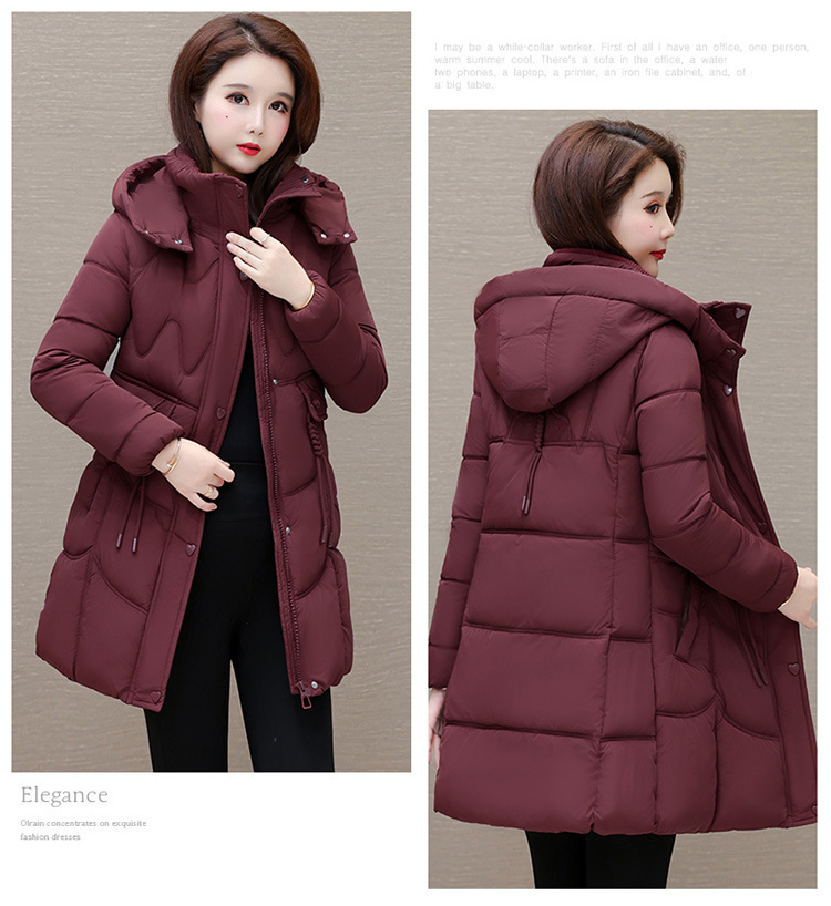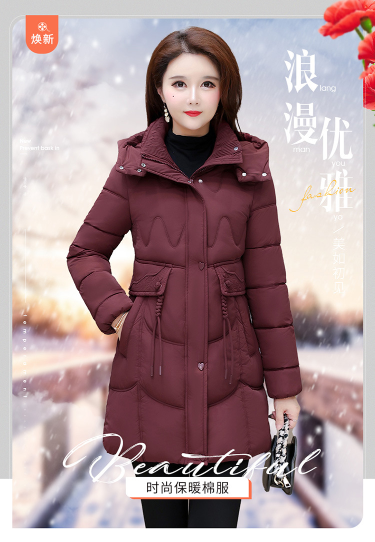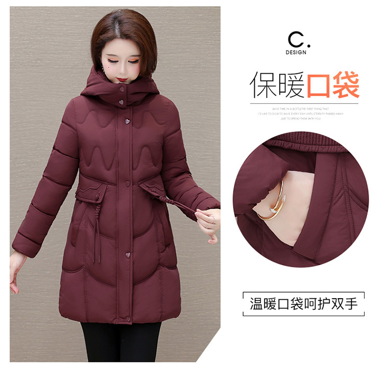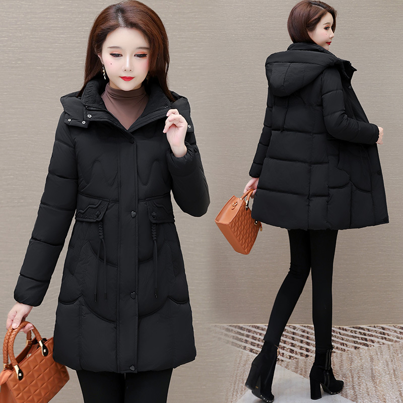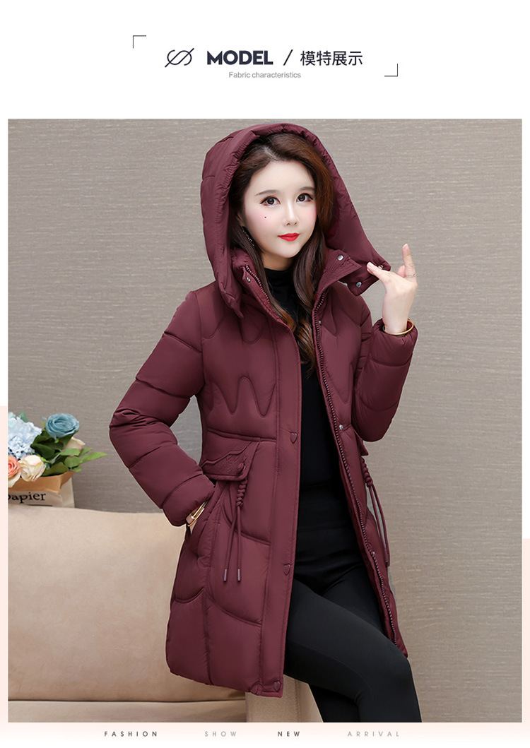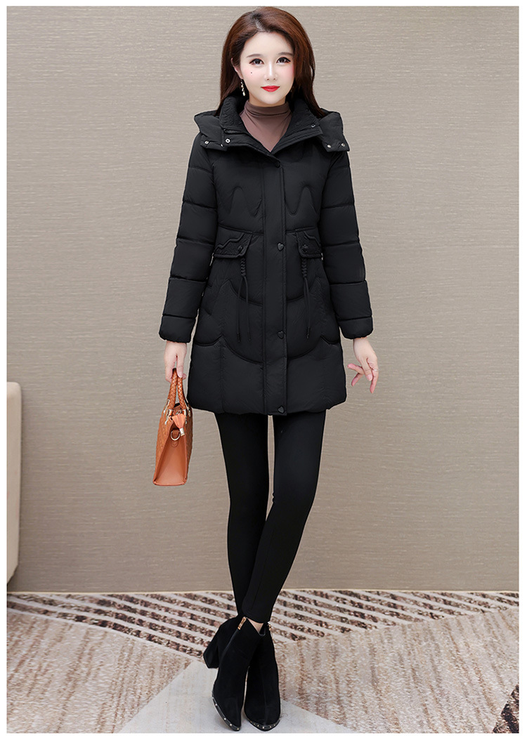 轻薄中长款羽绒棉服女2024秋冬新款洋气时尚连帽修身保暖棉衣外套