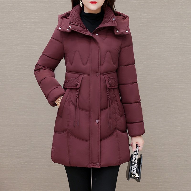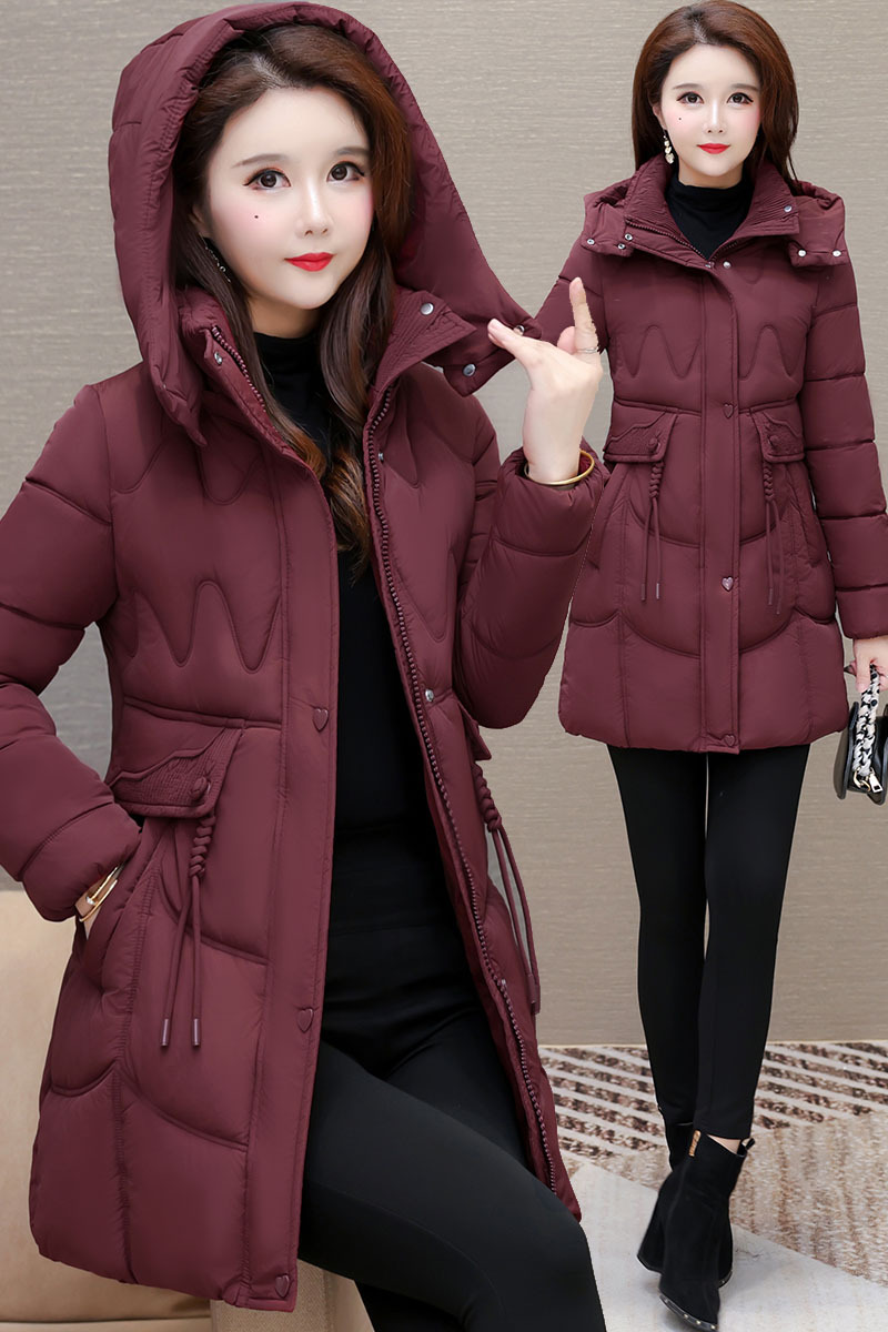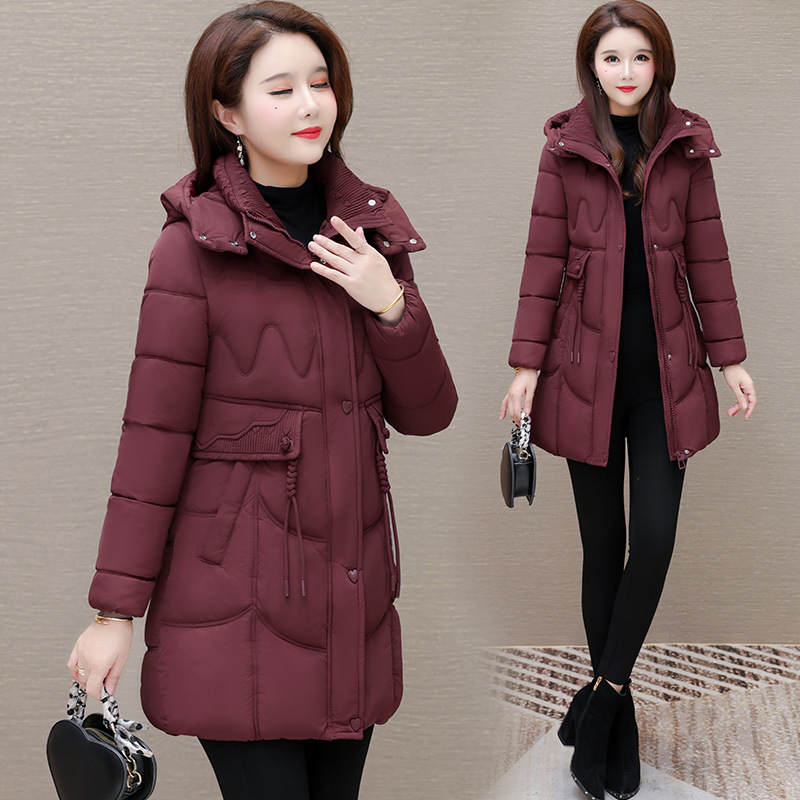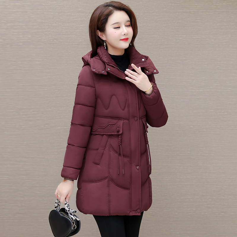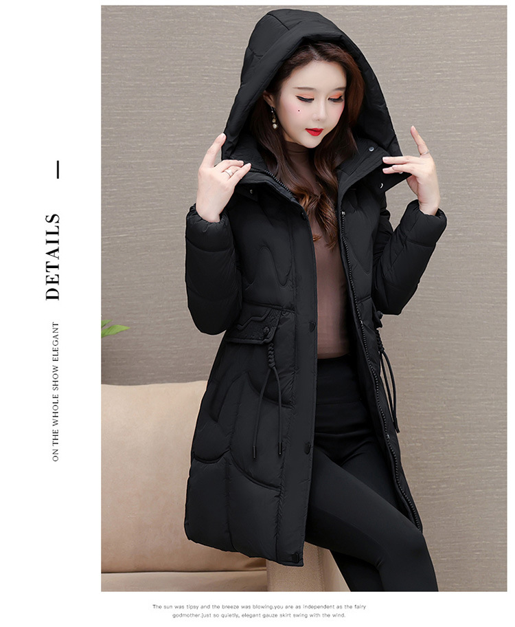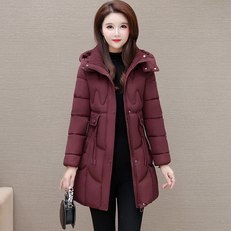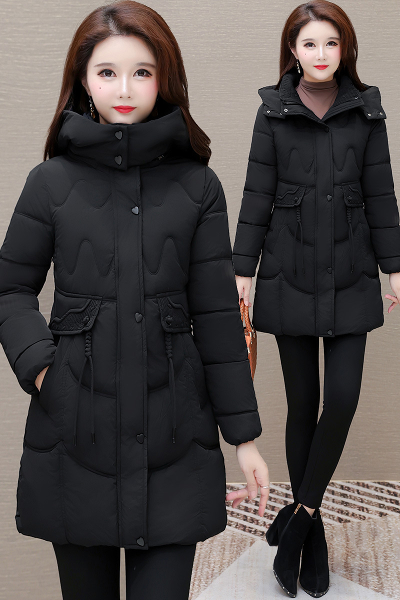 轻薄中长款羽绒棉服女2024秋冬新款洋气时尚连帽修身保暖棉衣外套