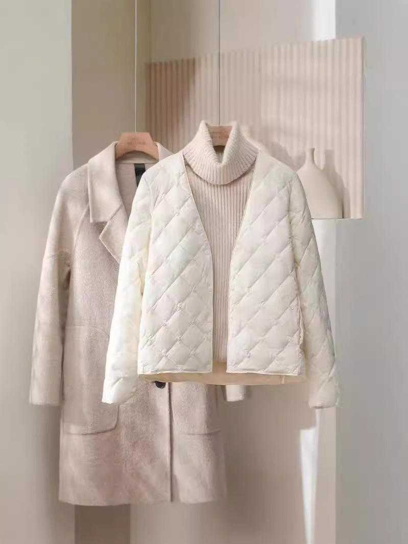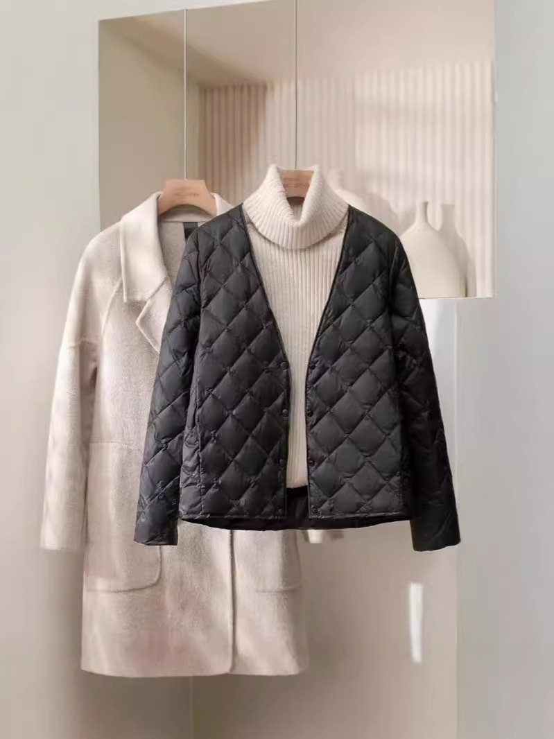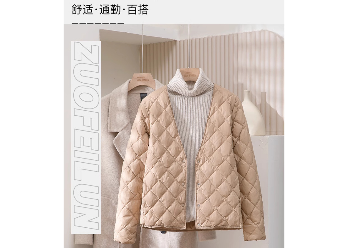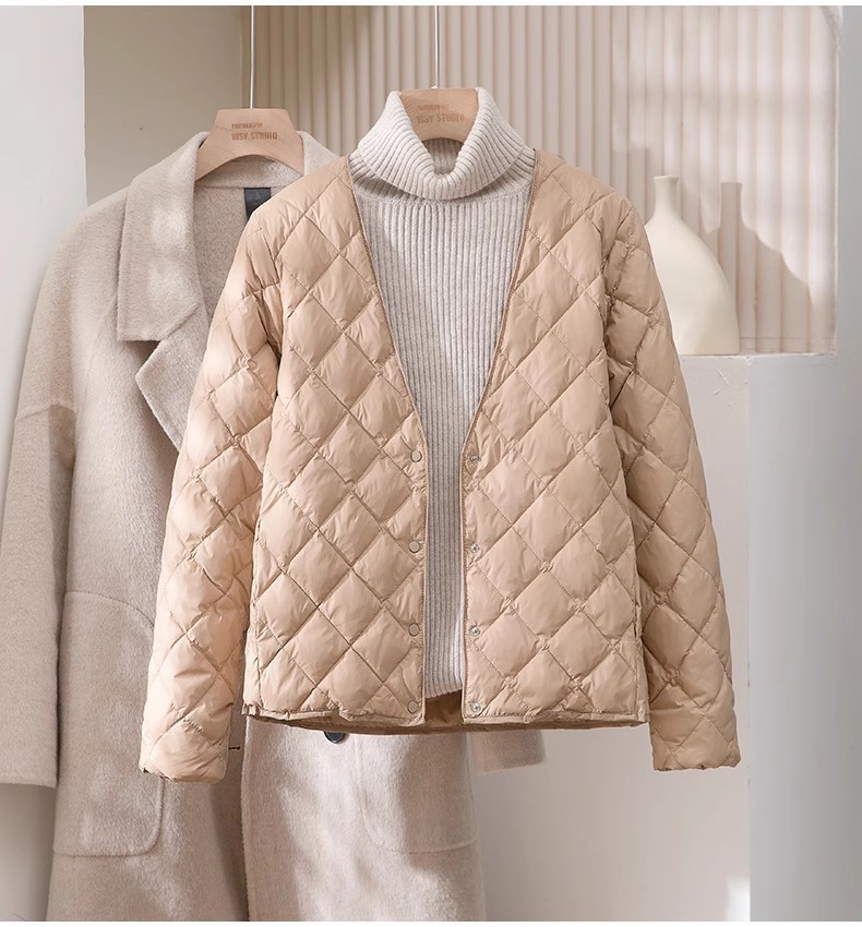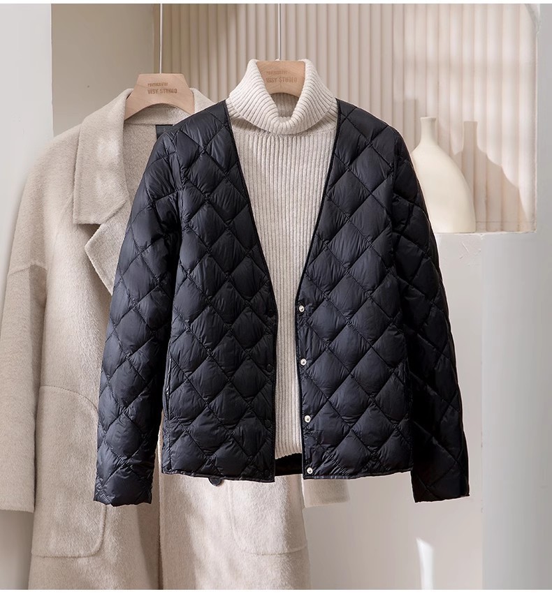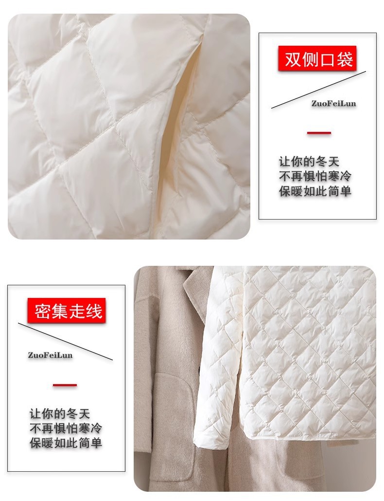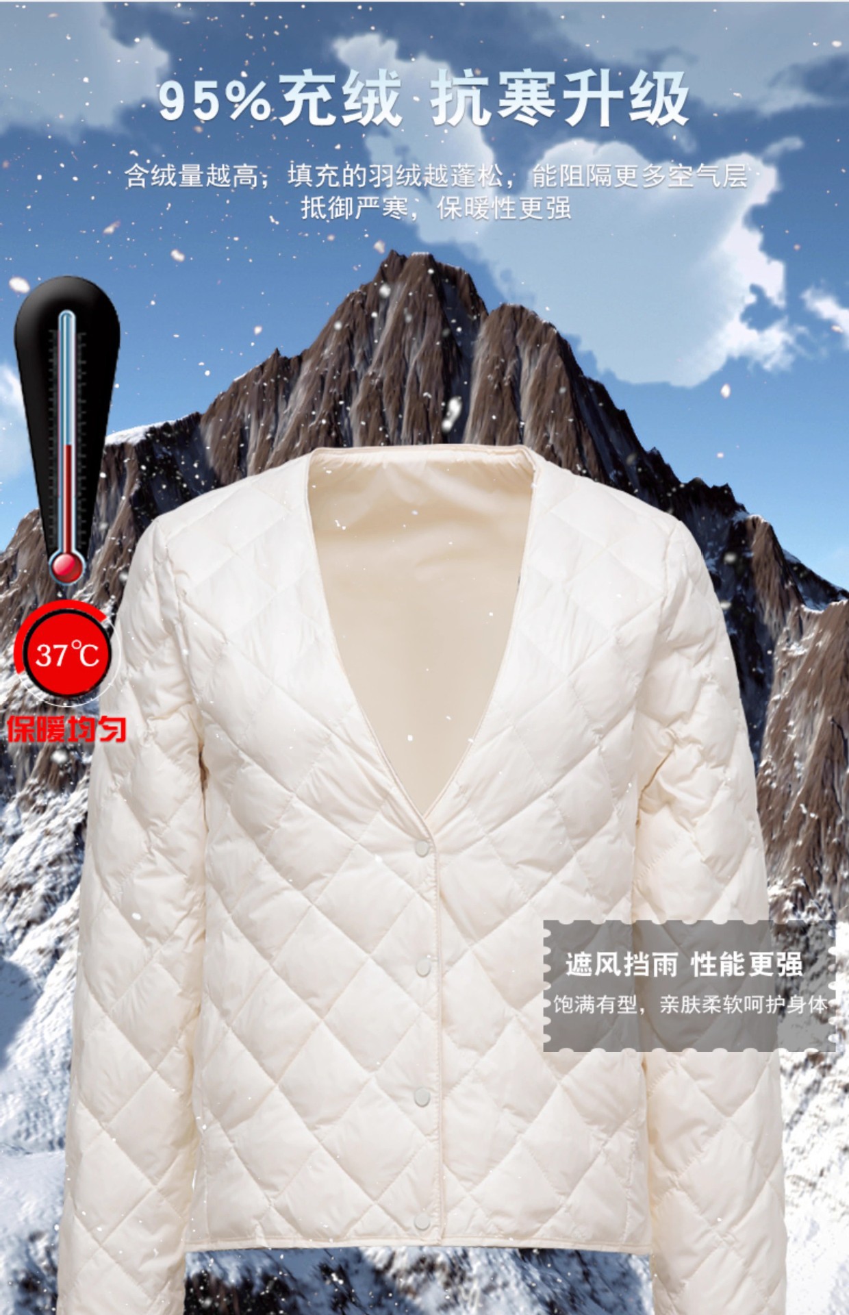 跨境羽绒服女短款V领秋冬新款大衣内搭轻薄内胆修身保暖打底外套