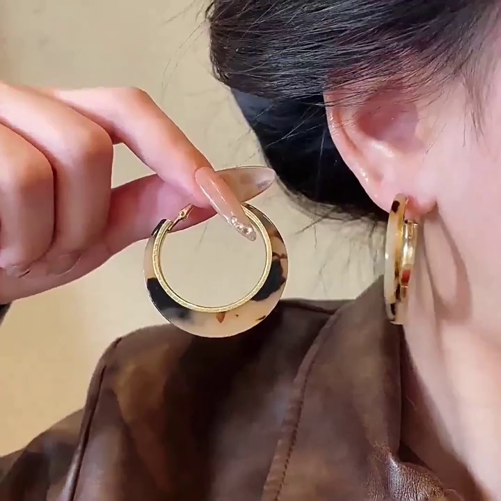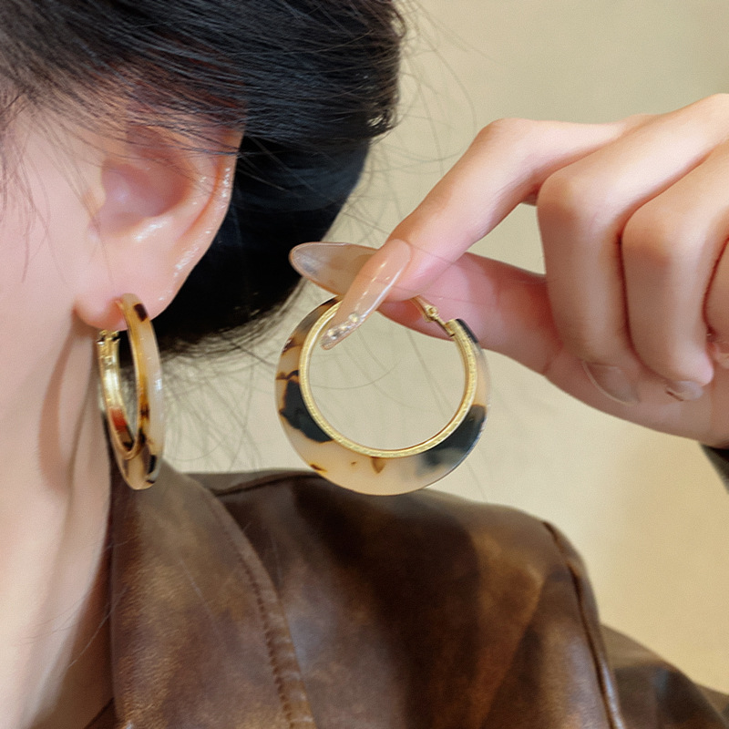 耳环个性夸张大圆圈耳钉网红同款耳饰品时尚高级感豹纹耳圈耳环女