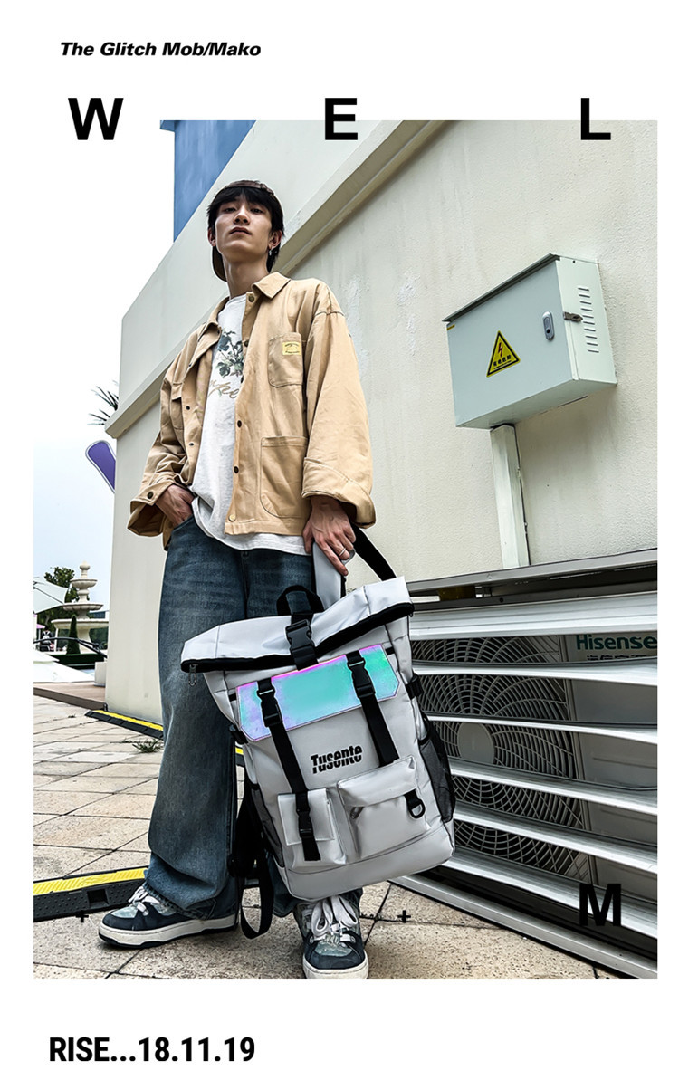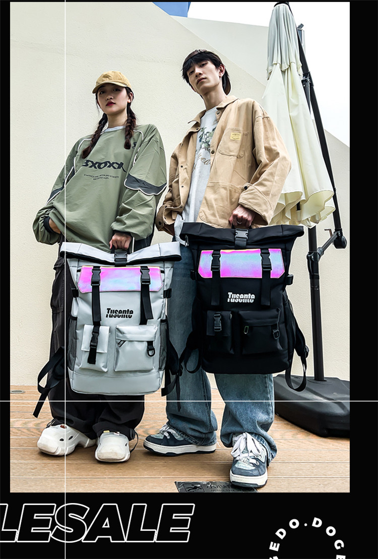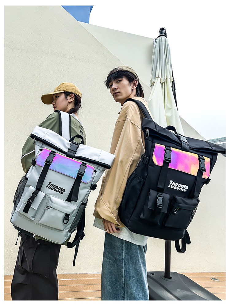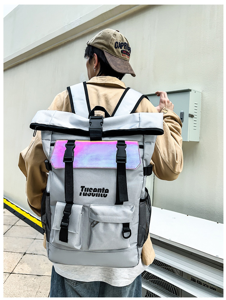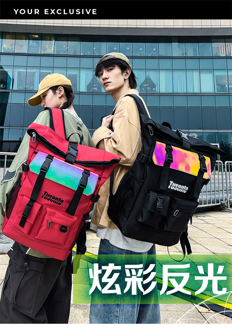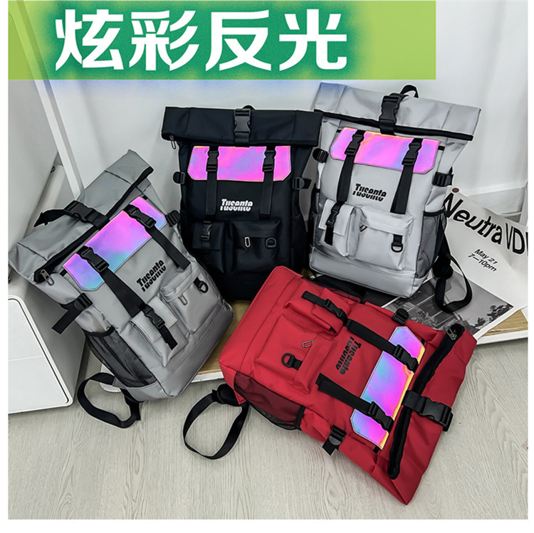 牛津布双肩包时尚反光户外背包学生书包旅行包行李包
