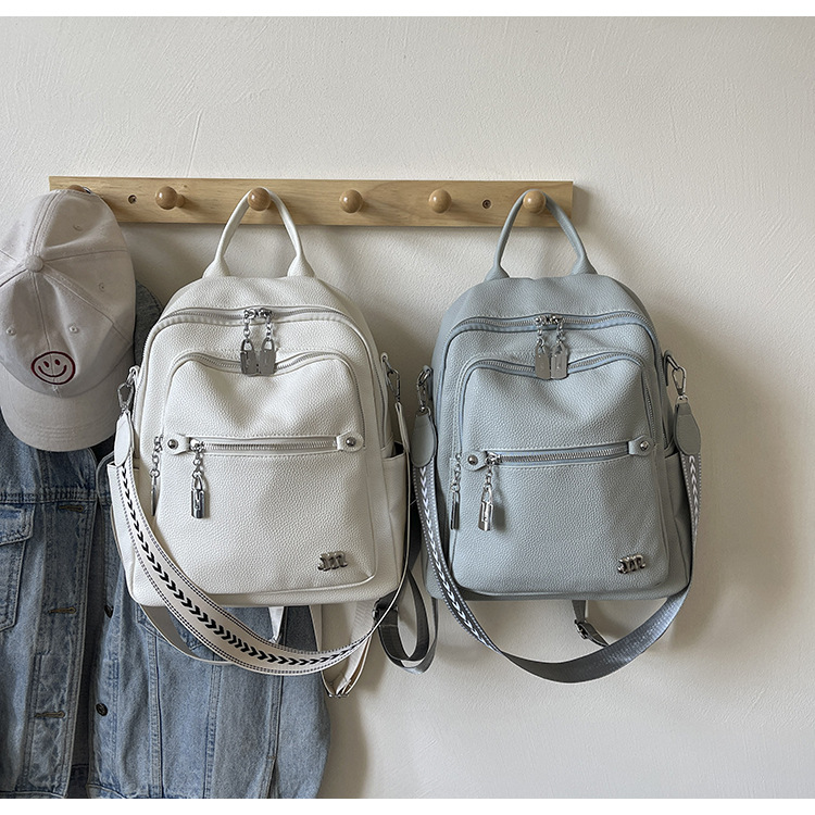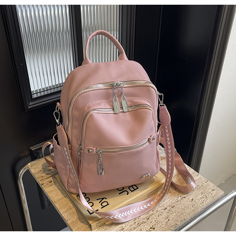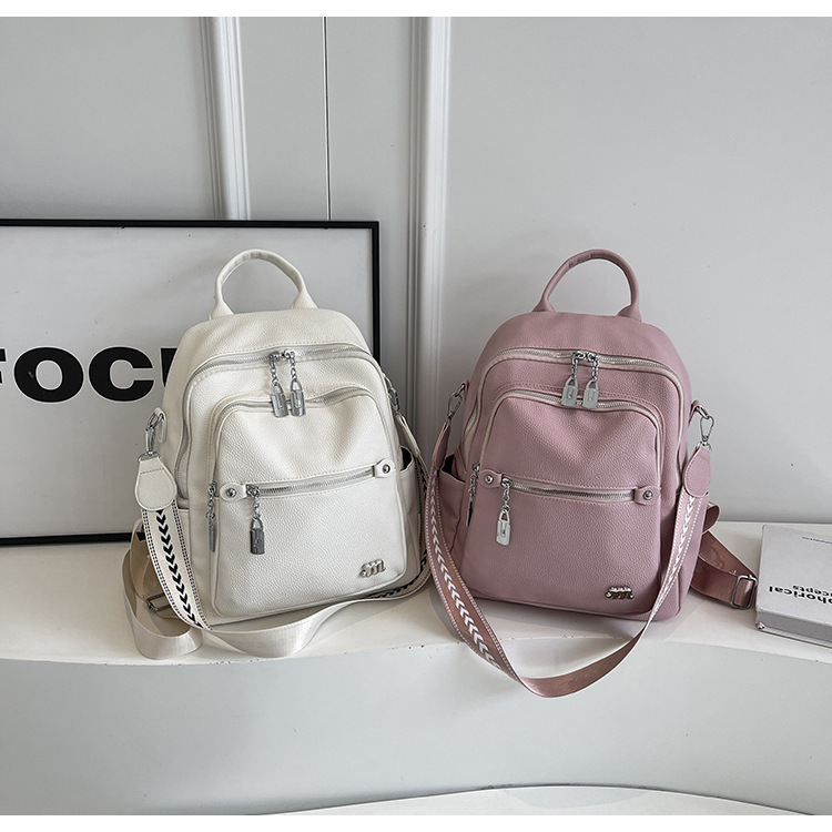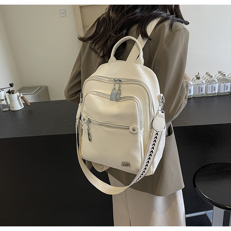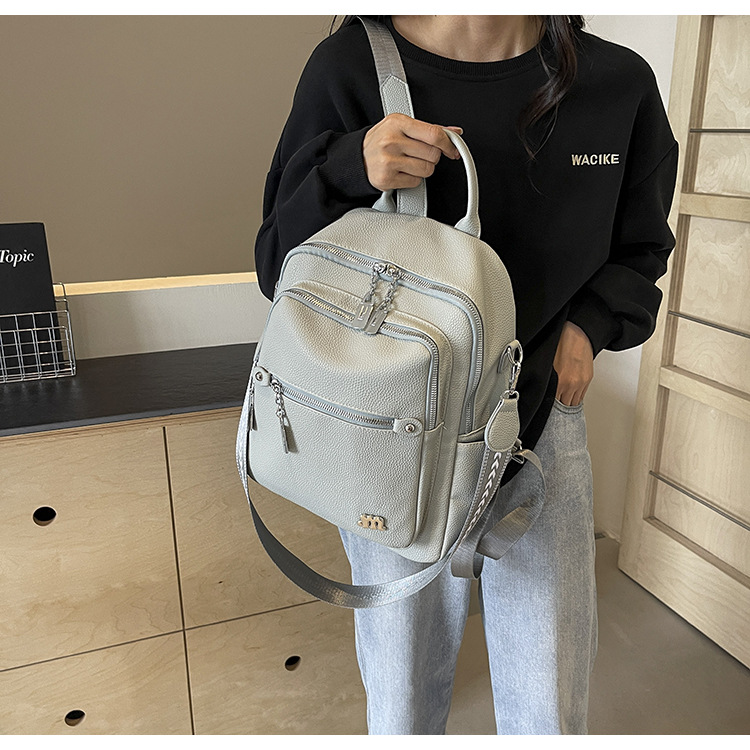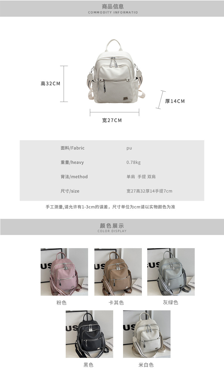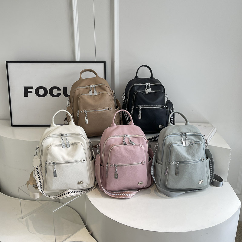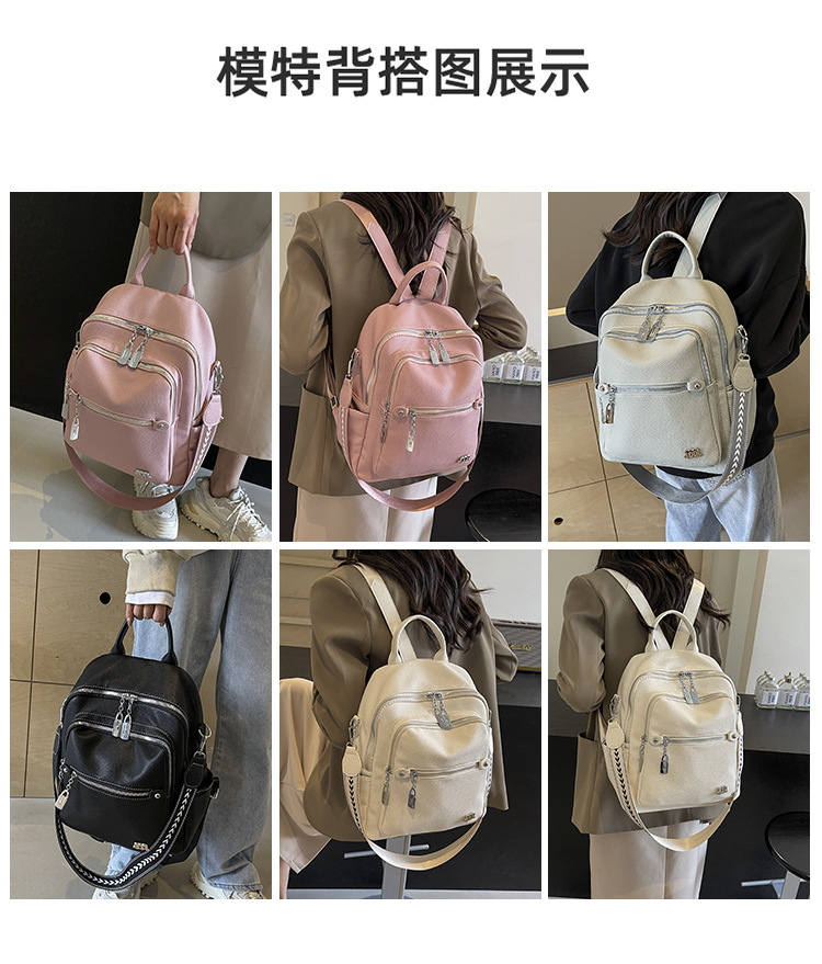 女士新款软皮纯色PU背包高颜值出游通勤双肩包书包批发