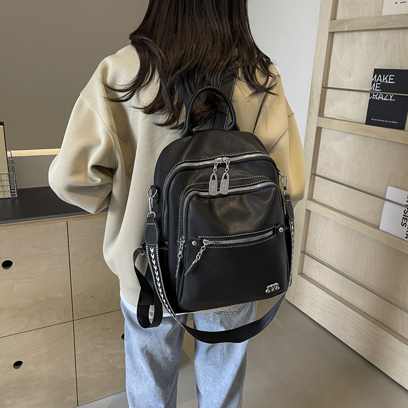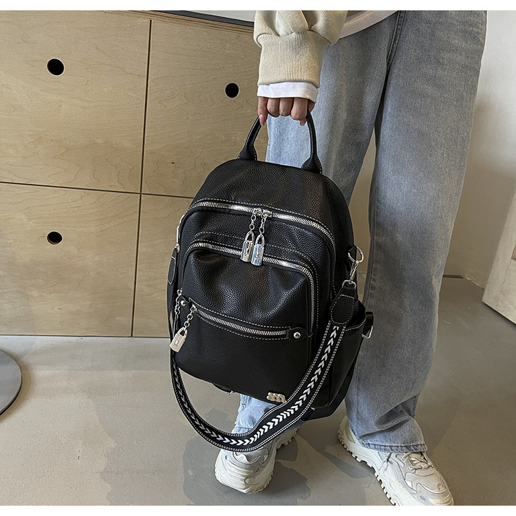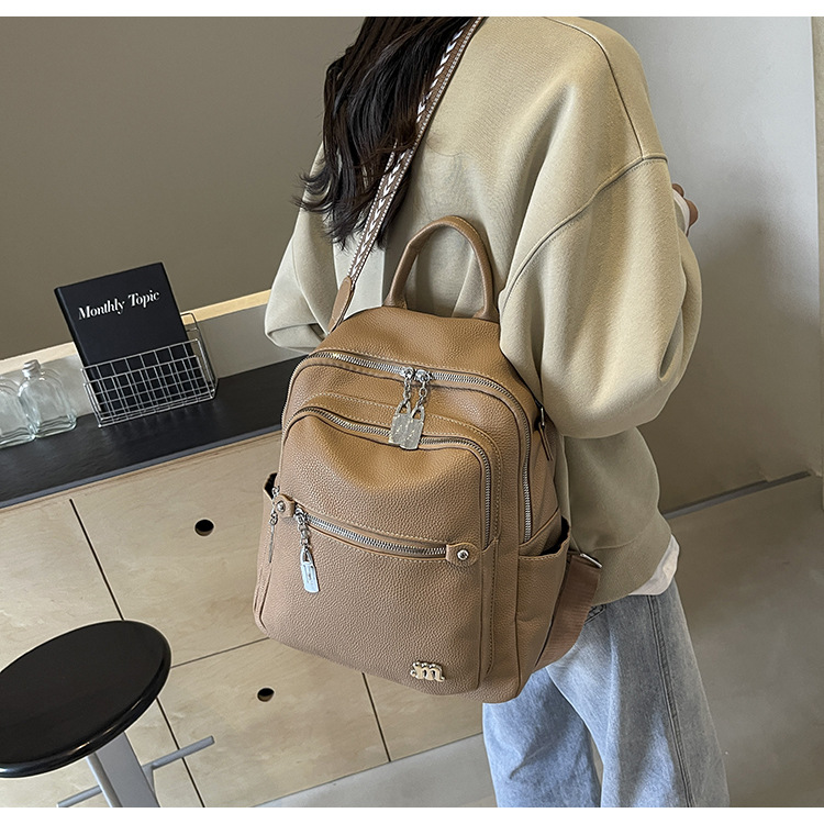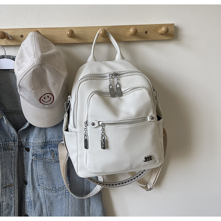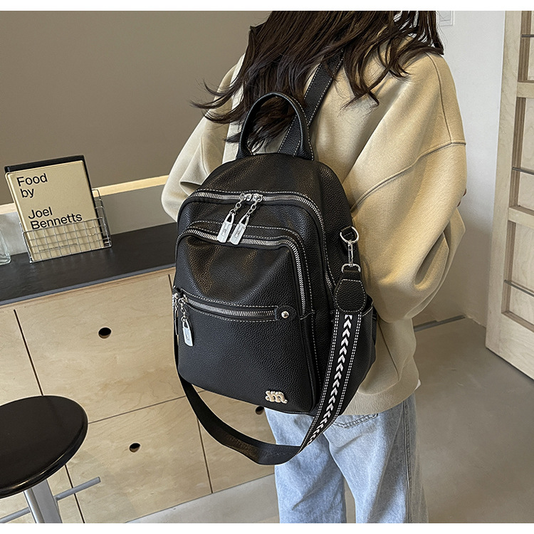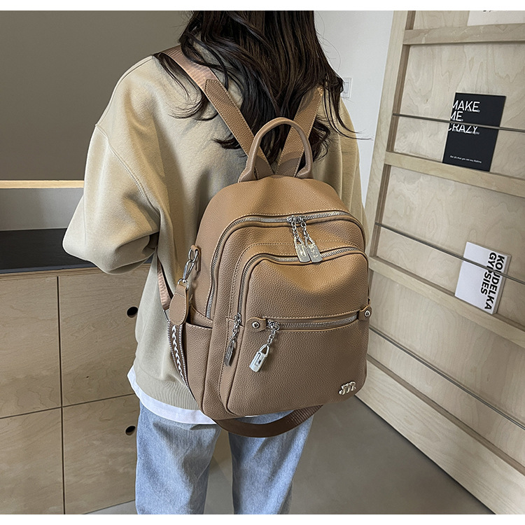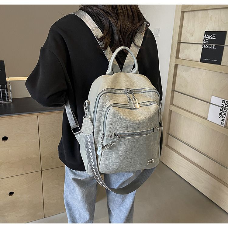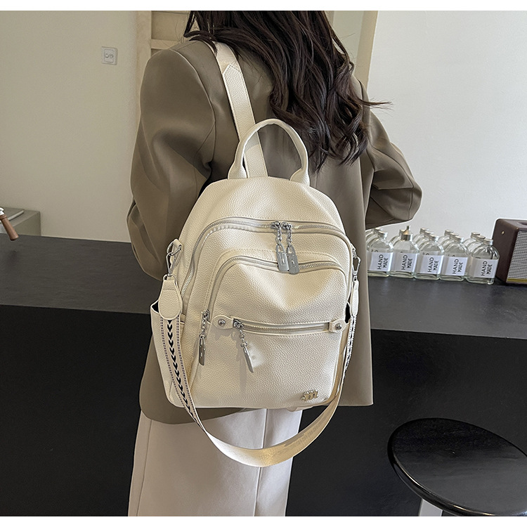 女士新款软皮纯色PU背包高颜值出游通勤双肩包书包批发