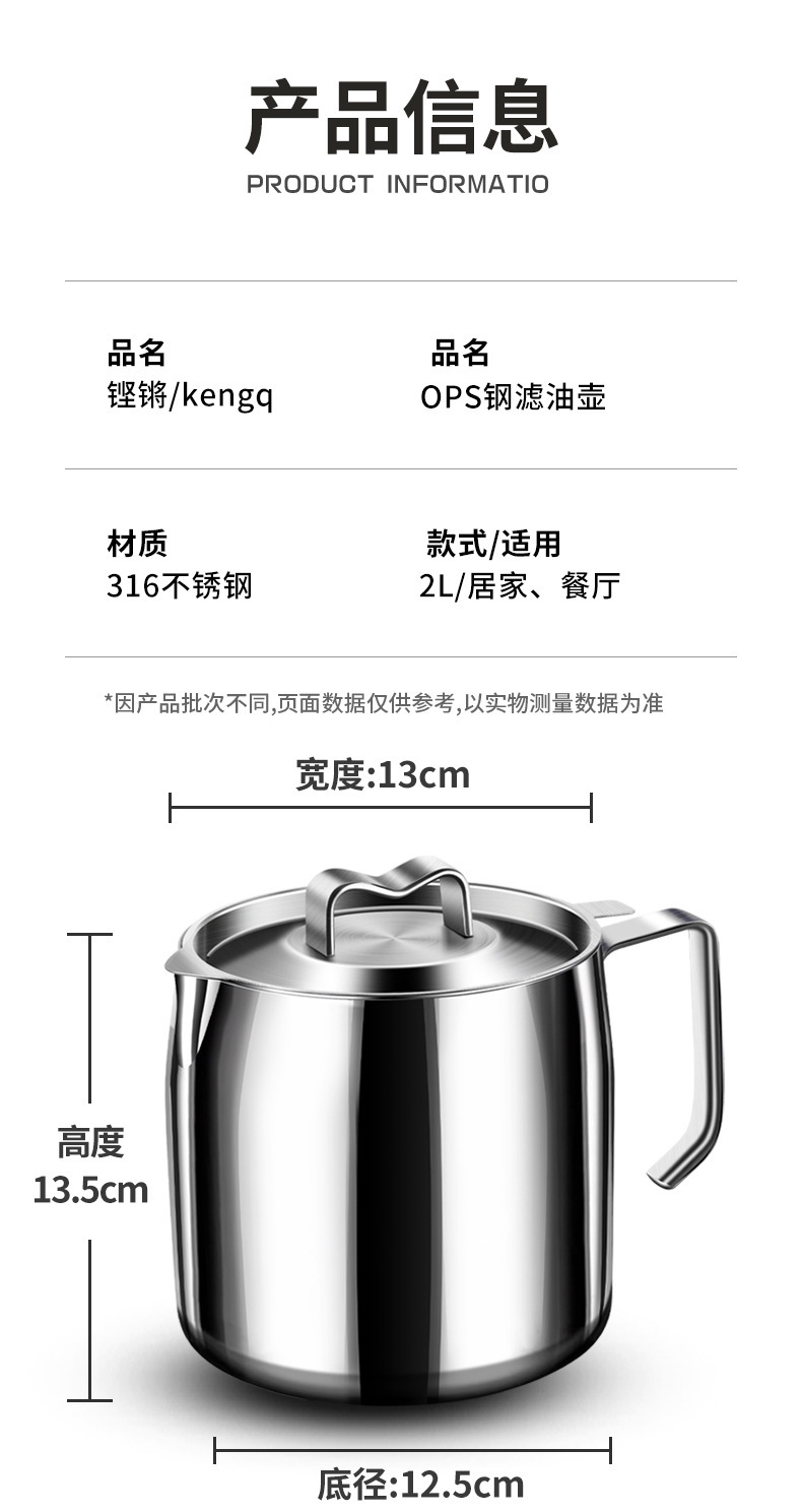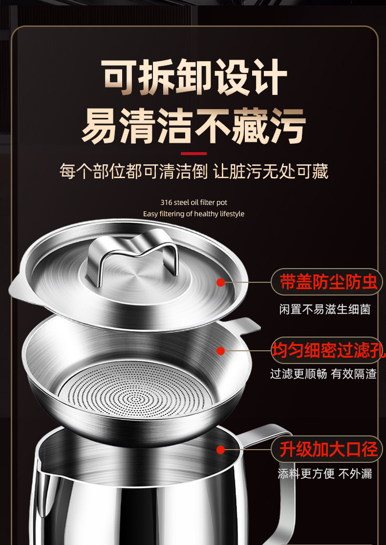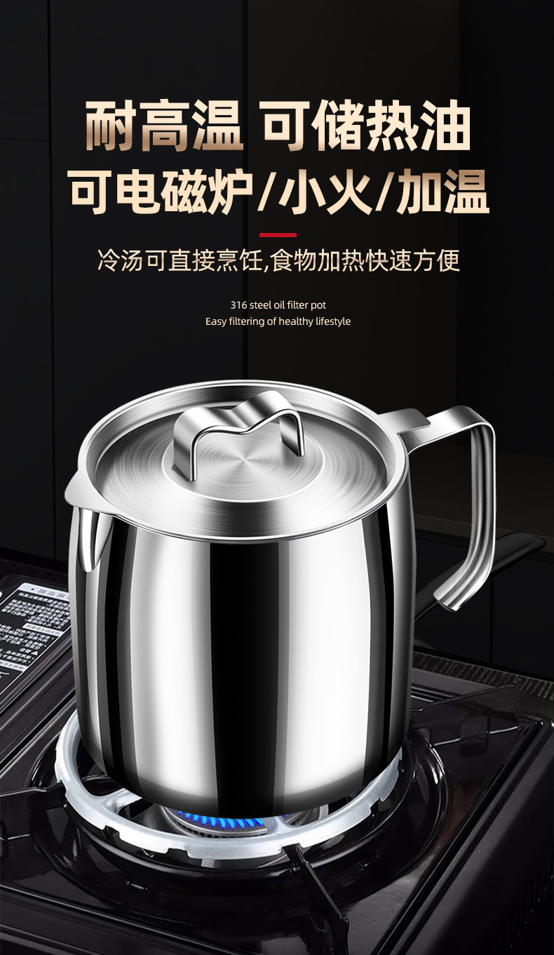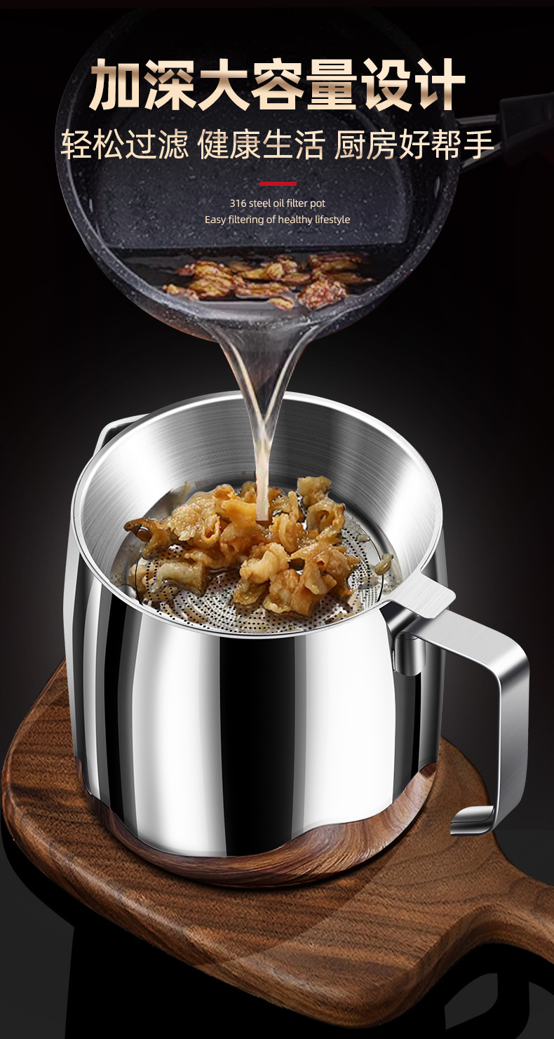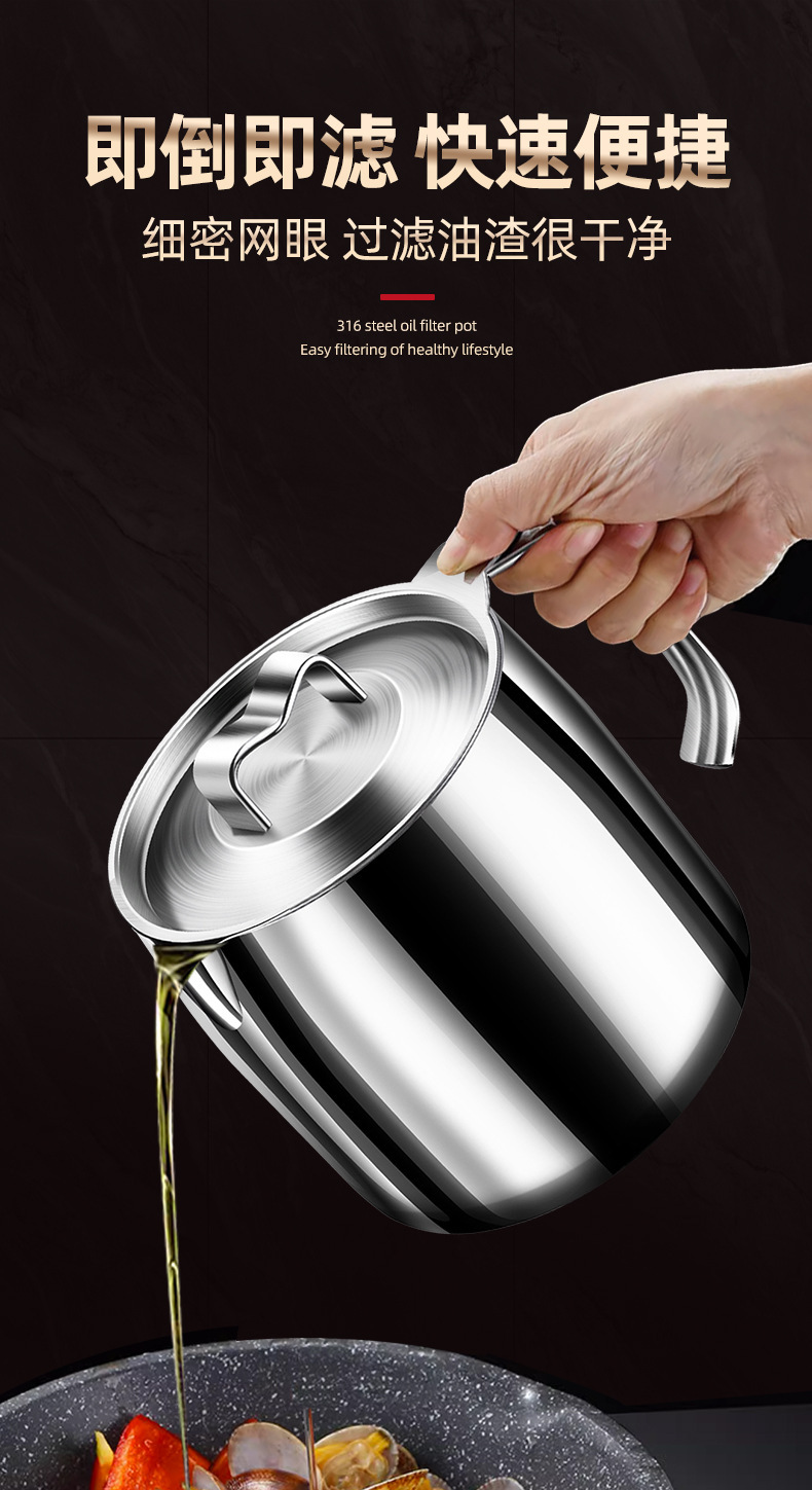 【贵族体验】316不锈钢油壶猪油罐滤油壶带盖网厨房过滤油渣神器