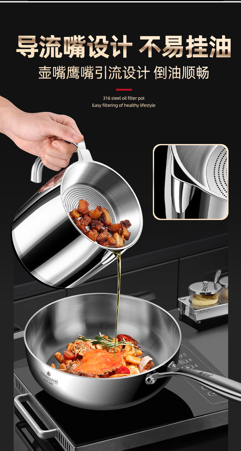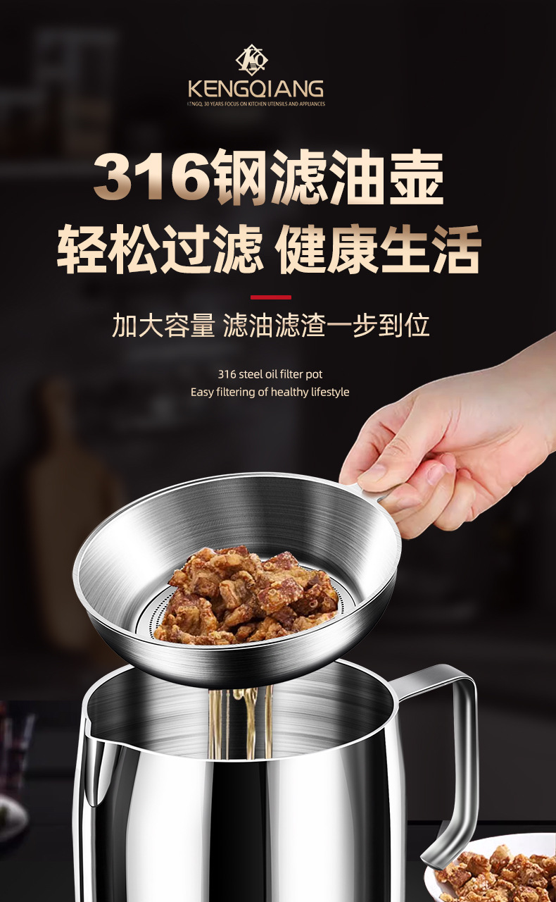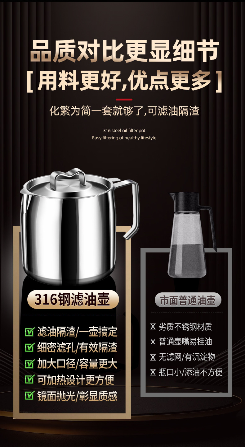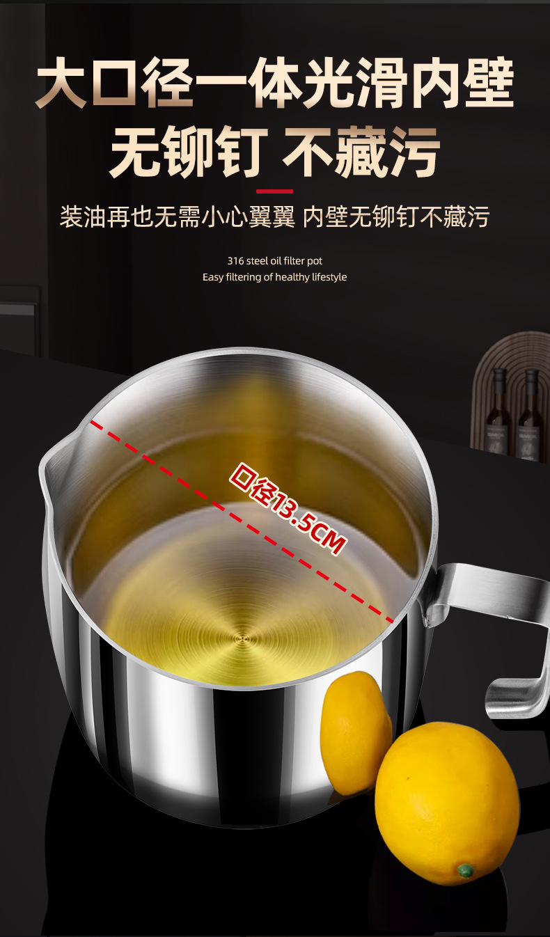 【贵族体验】316不锈钢油壶猪油罐滤油壶带盖网厨房过滤油渣神器