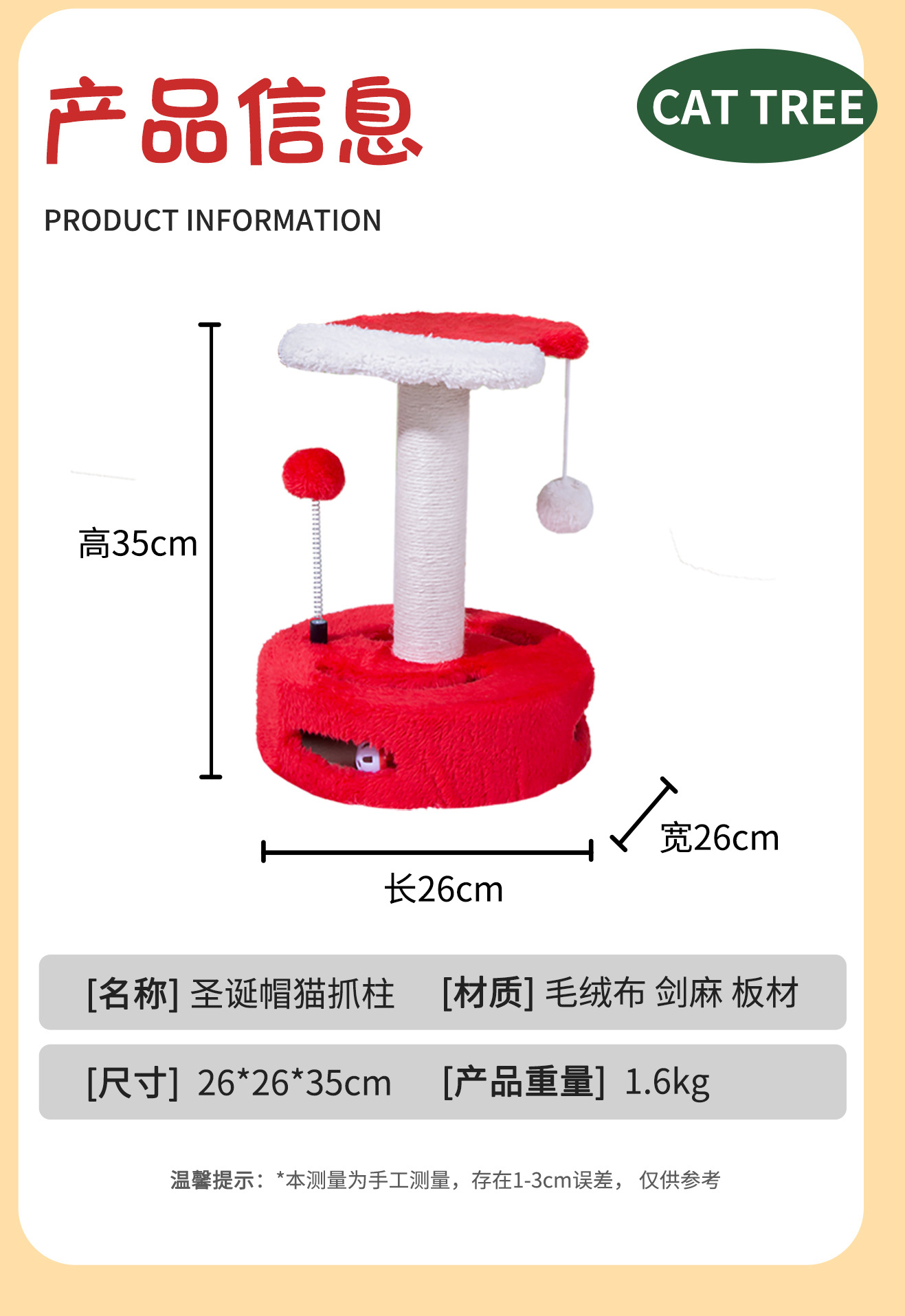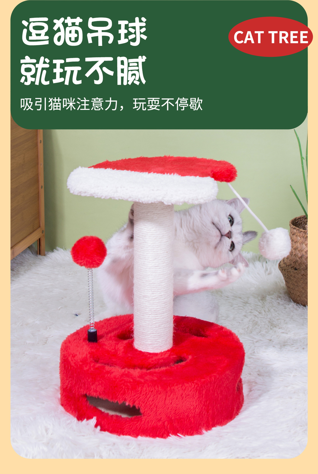 新品圣诞逗猫猫爬架冬季加绒小型不占地剑麻耐磨猫抓柱猫咪玩具