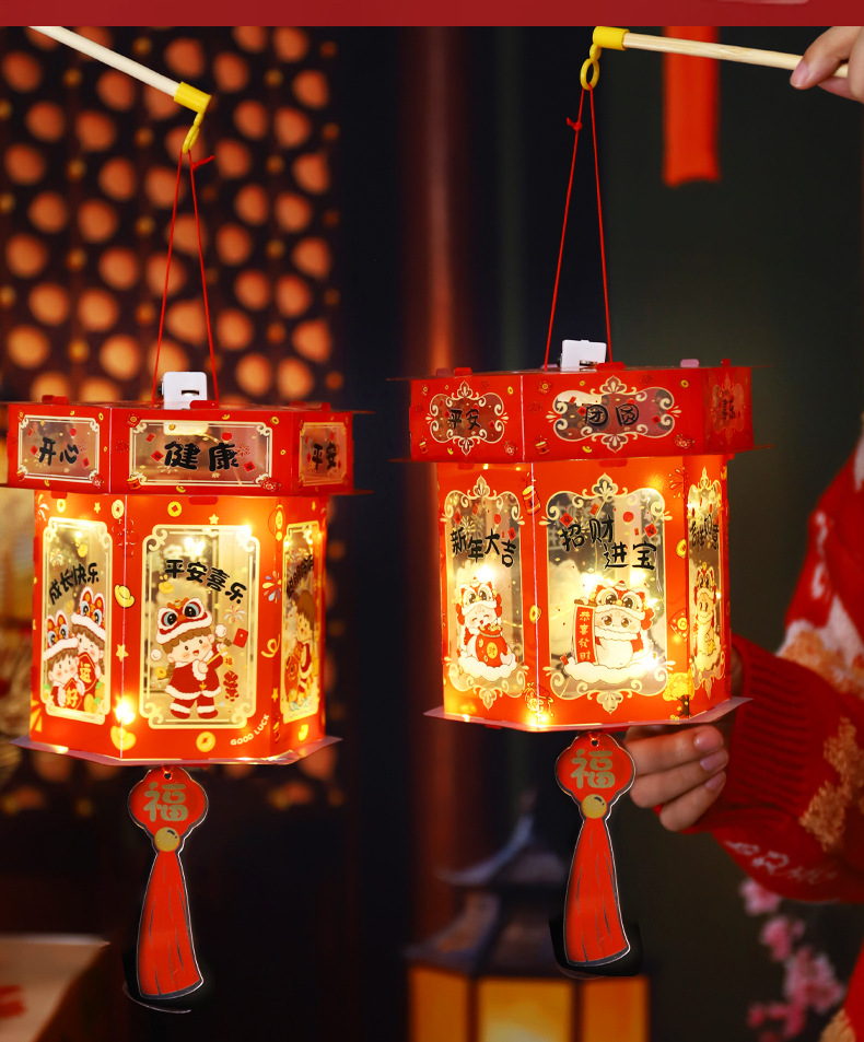 2025蛇年新年灯笼PVC六面宫灯手提发光灯笼DIY材料包手工制作花灯