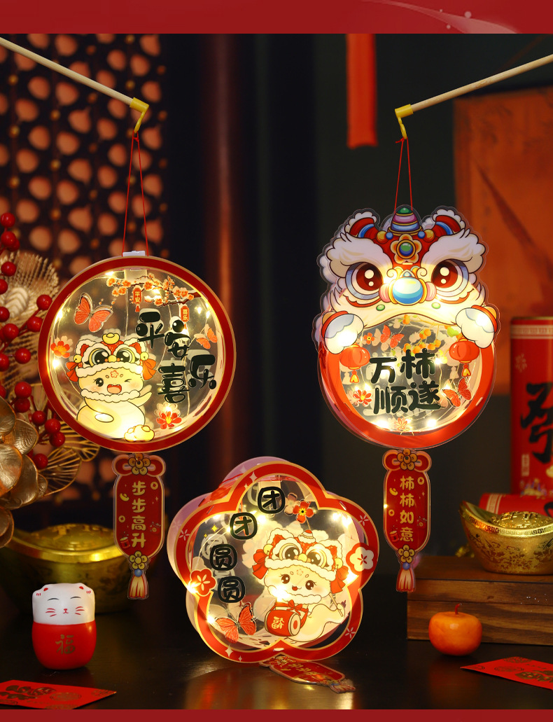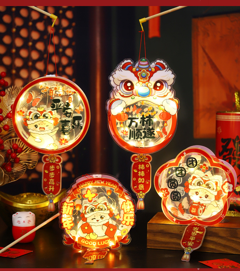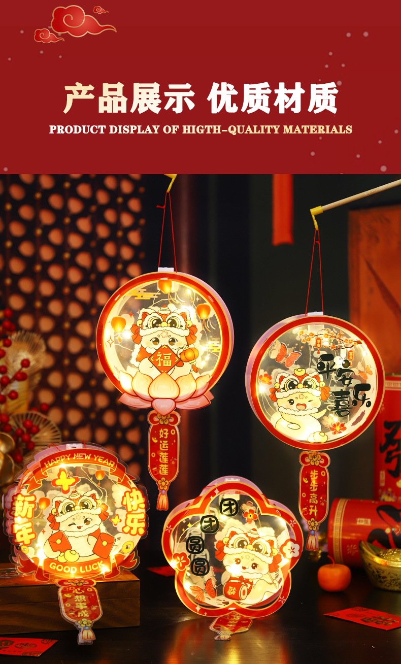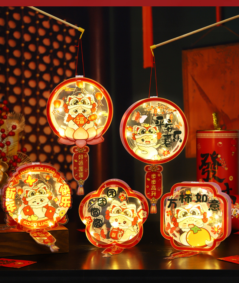 2025蛇年新年灯笼元宵节手提花灯走马灯笼diy材料包发光宫灯地摊