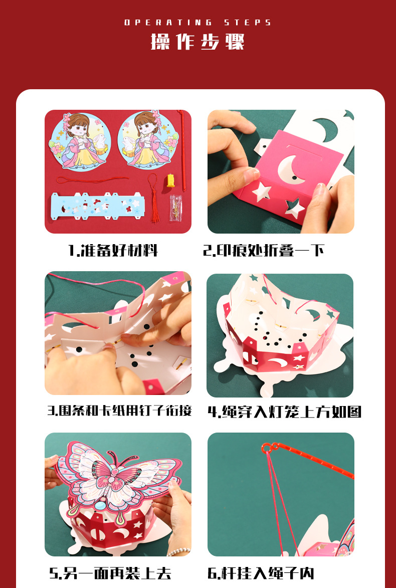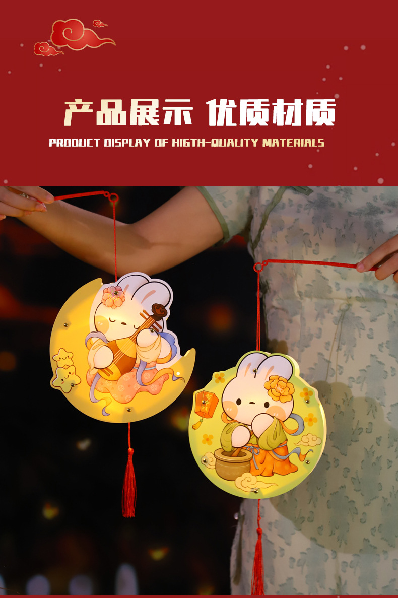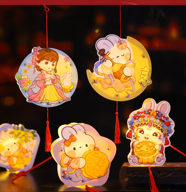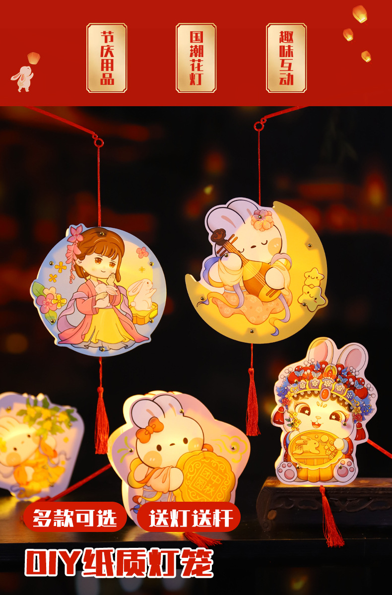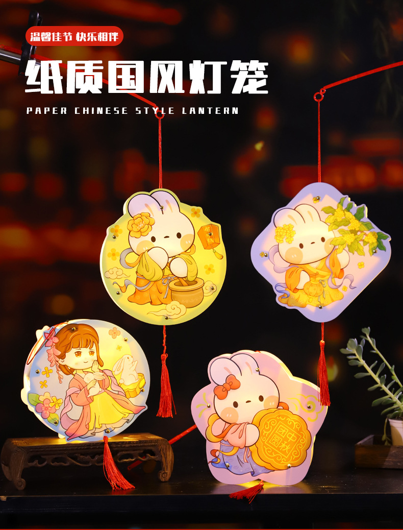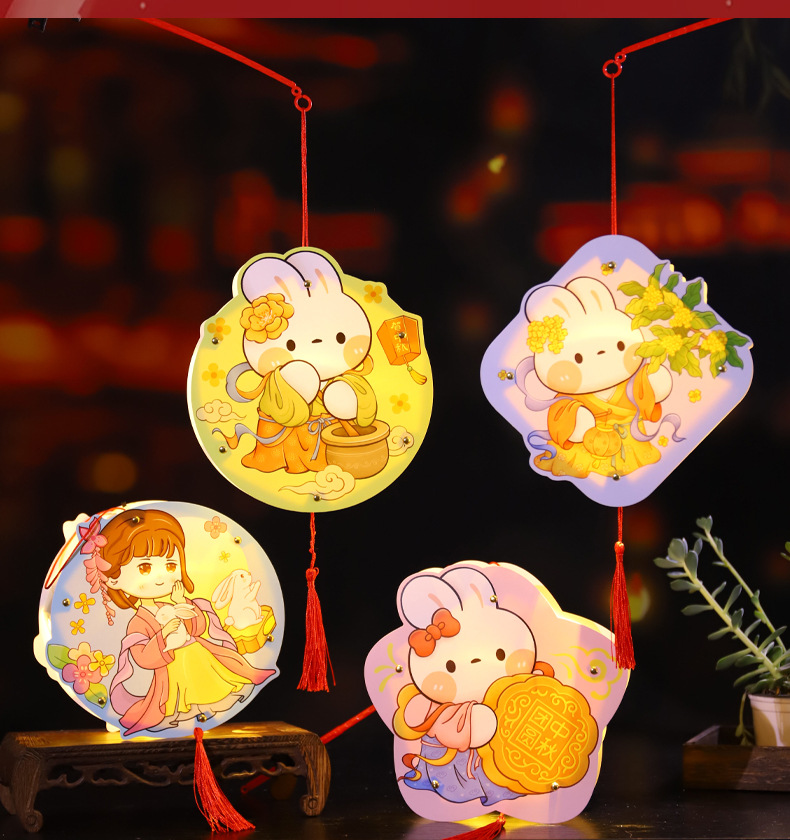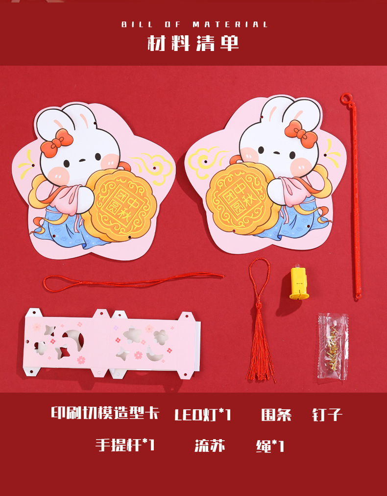 中秋节灯笼儿童发光手提灯笼手工制作diy材料包兔子灯笼花灯宫灯